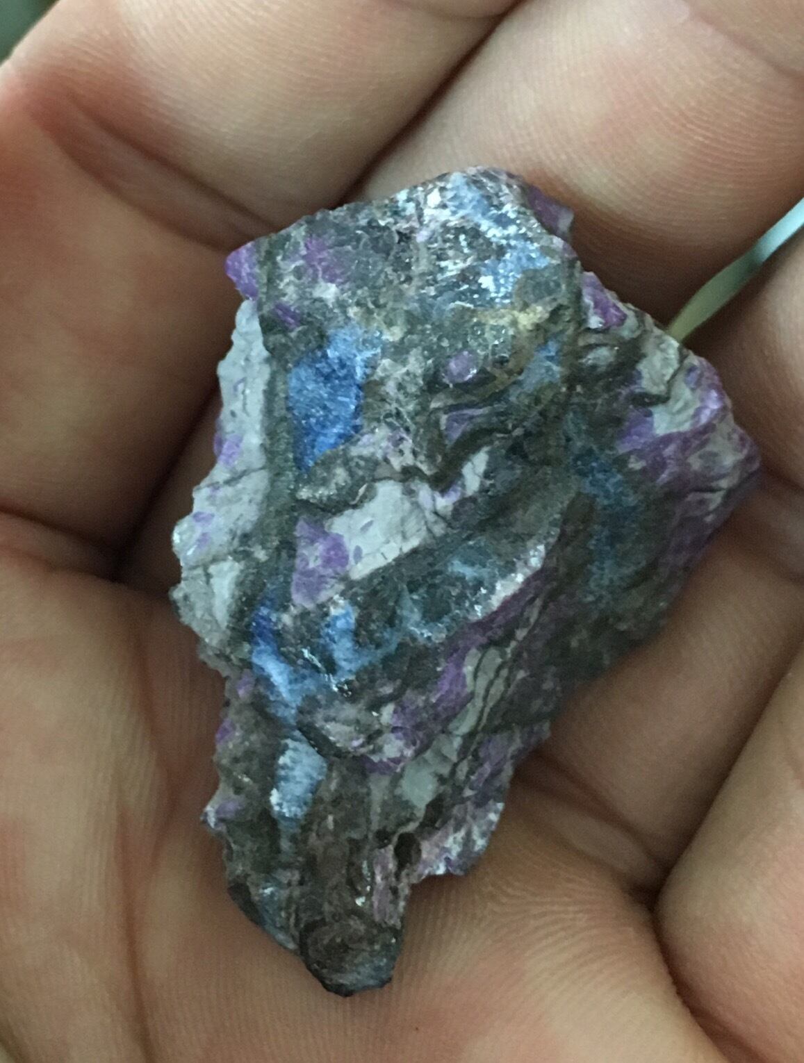 ブルー、紫色が散見されるスギライトの原石です。ファセットを施して、エッジを柔らかく仕上げてみます。