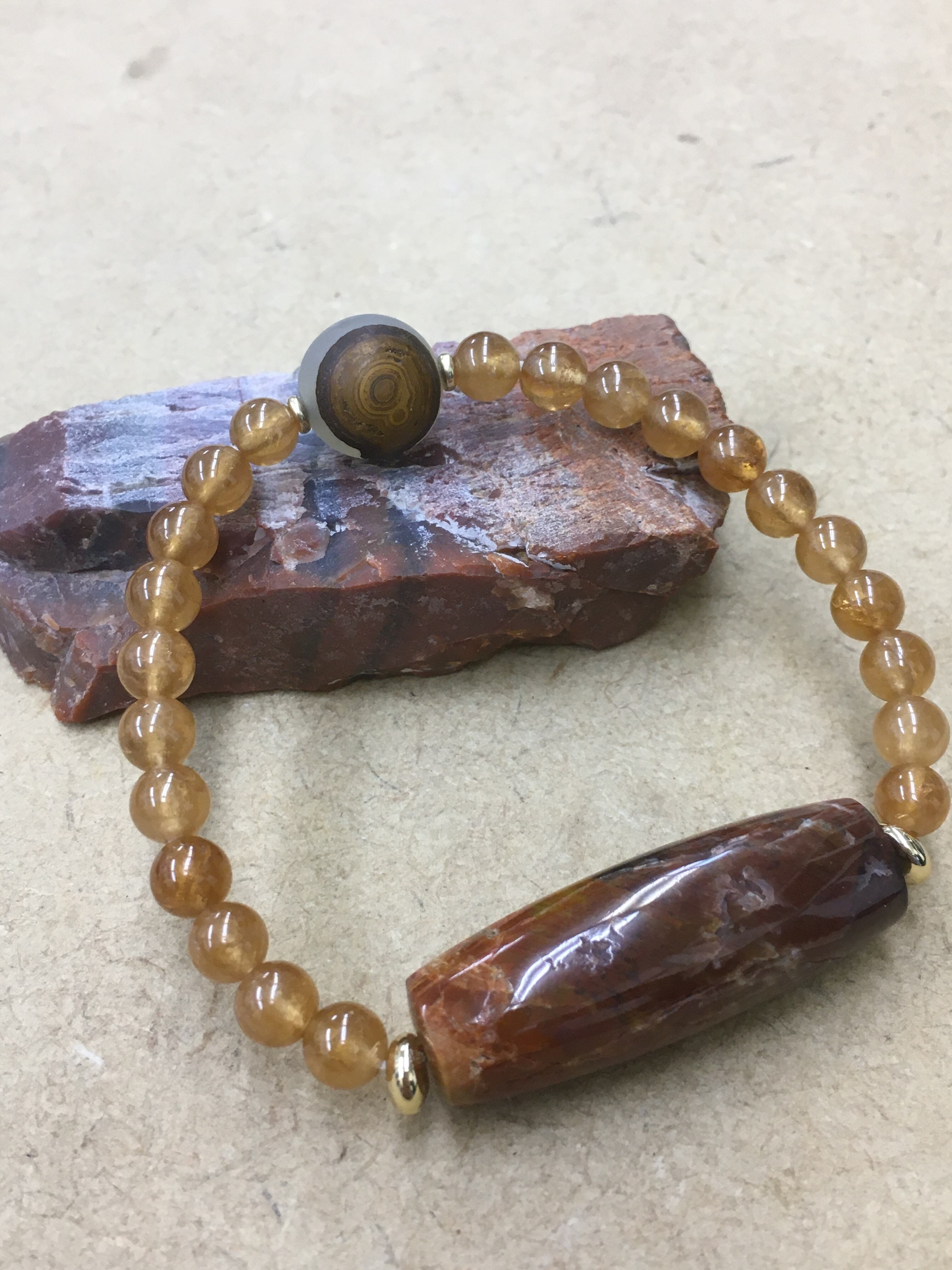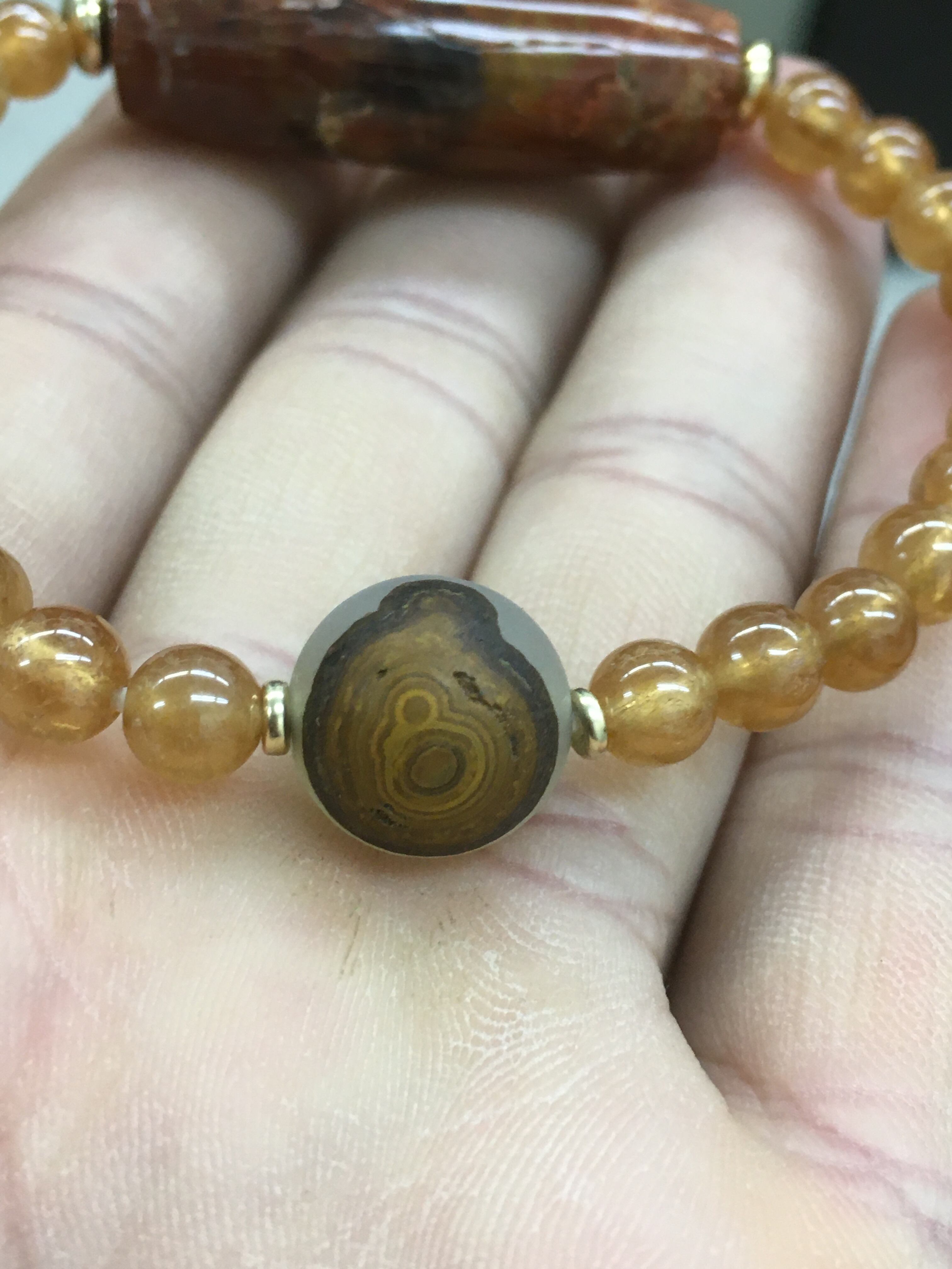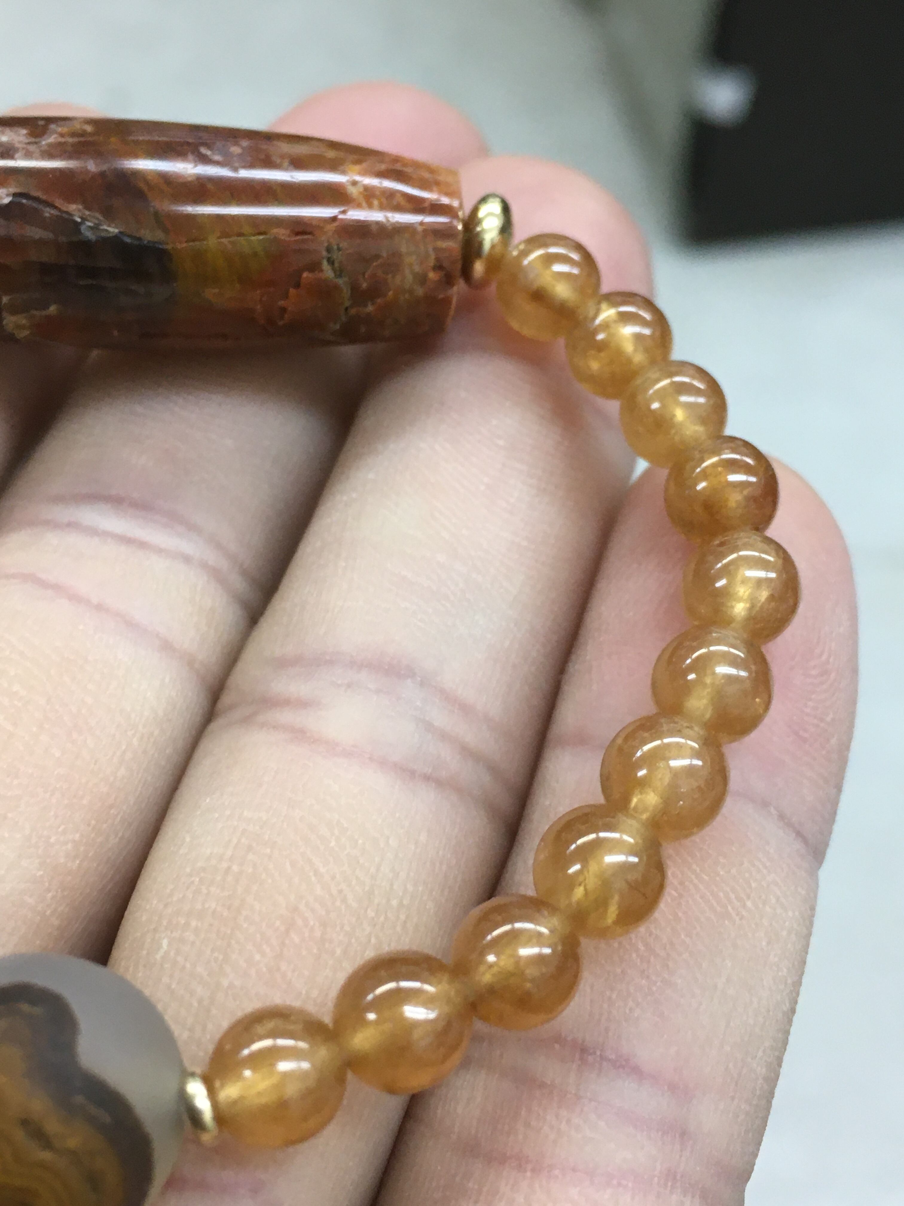 ブレスレット部分は、ヘソナイト(オレンジガーネット)です。内周約15センチ(調整可能)で