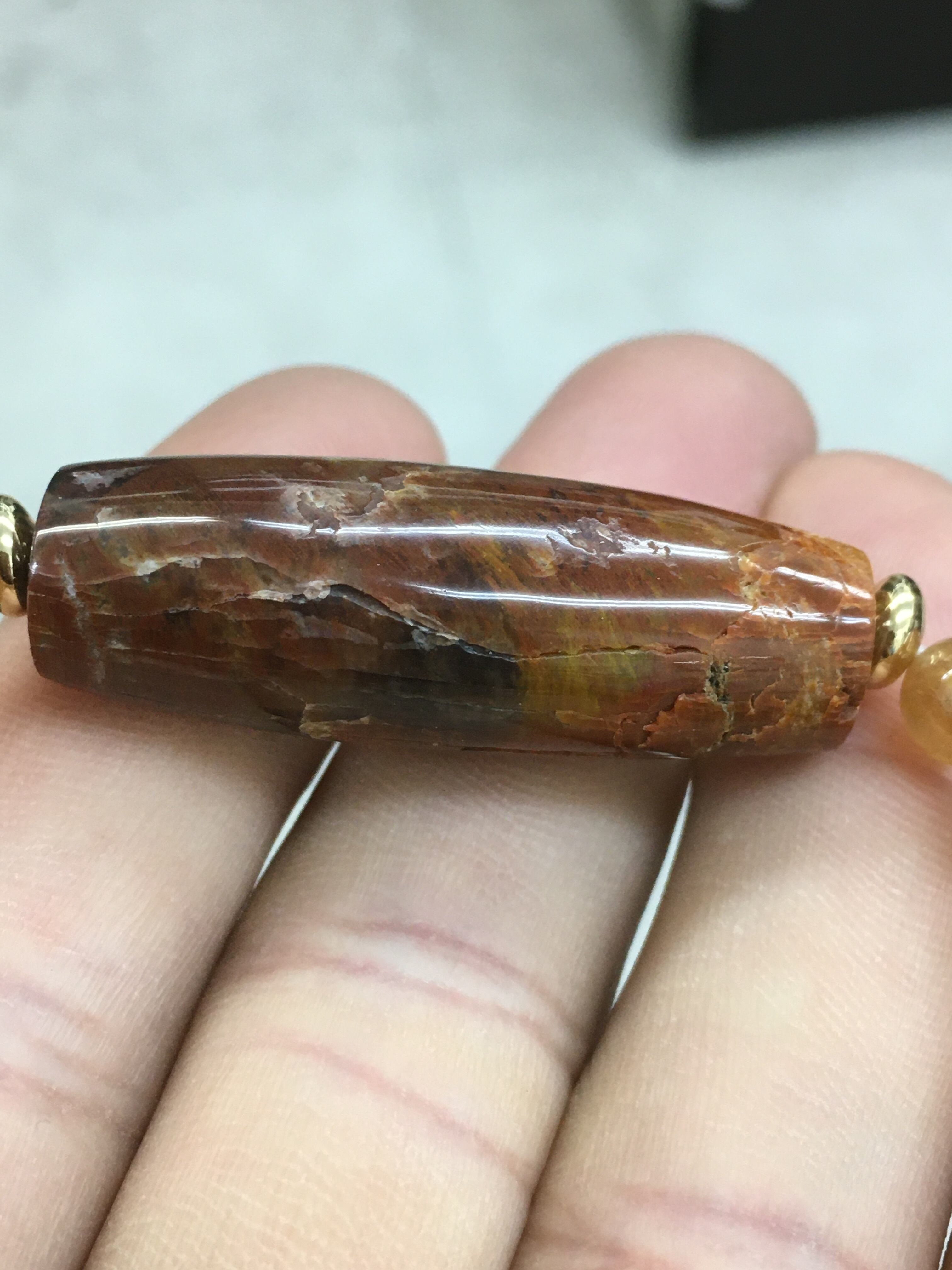 アリゾナ州珪化木の天珠形と蒙天珠ビーズ