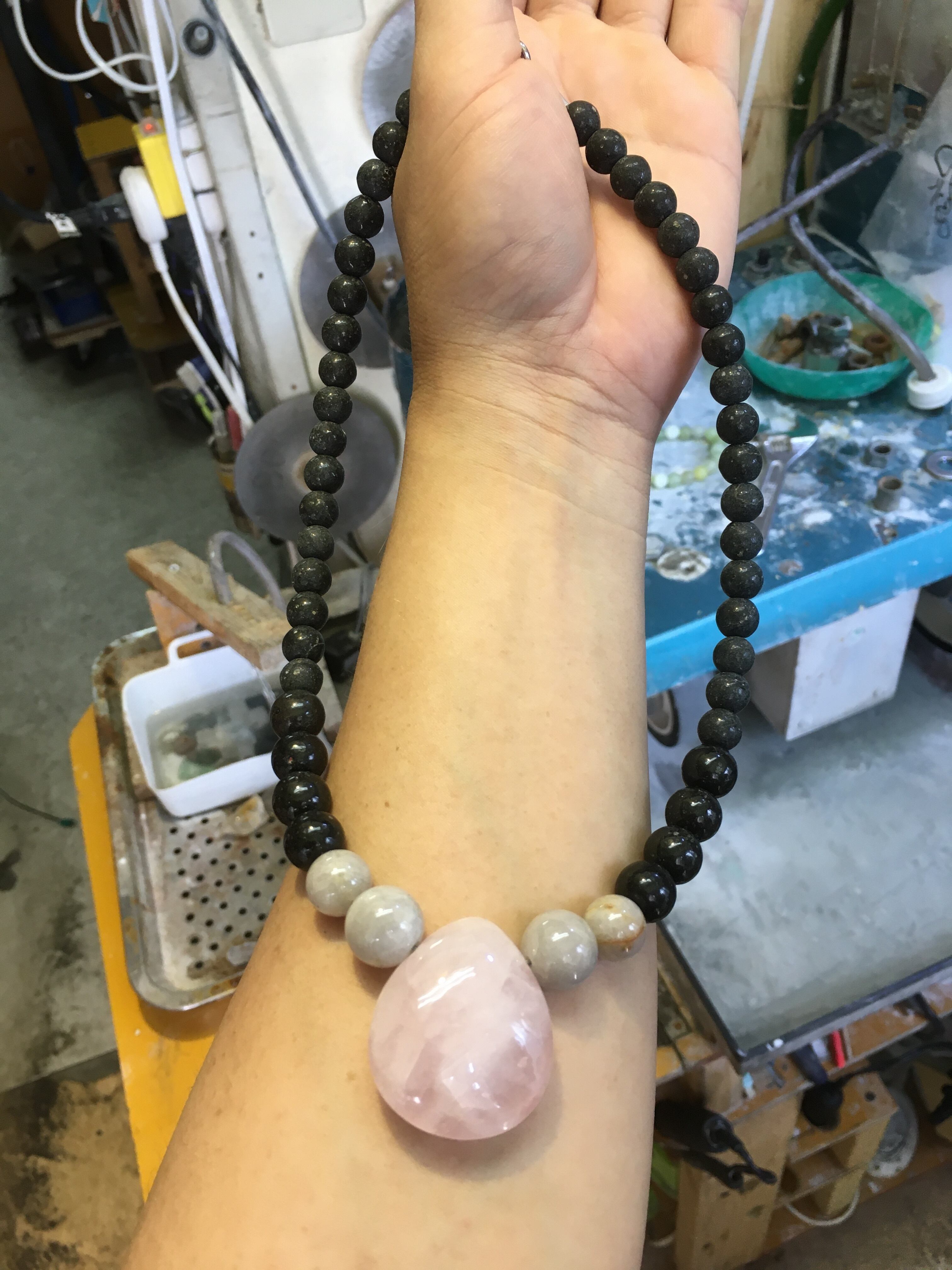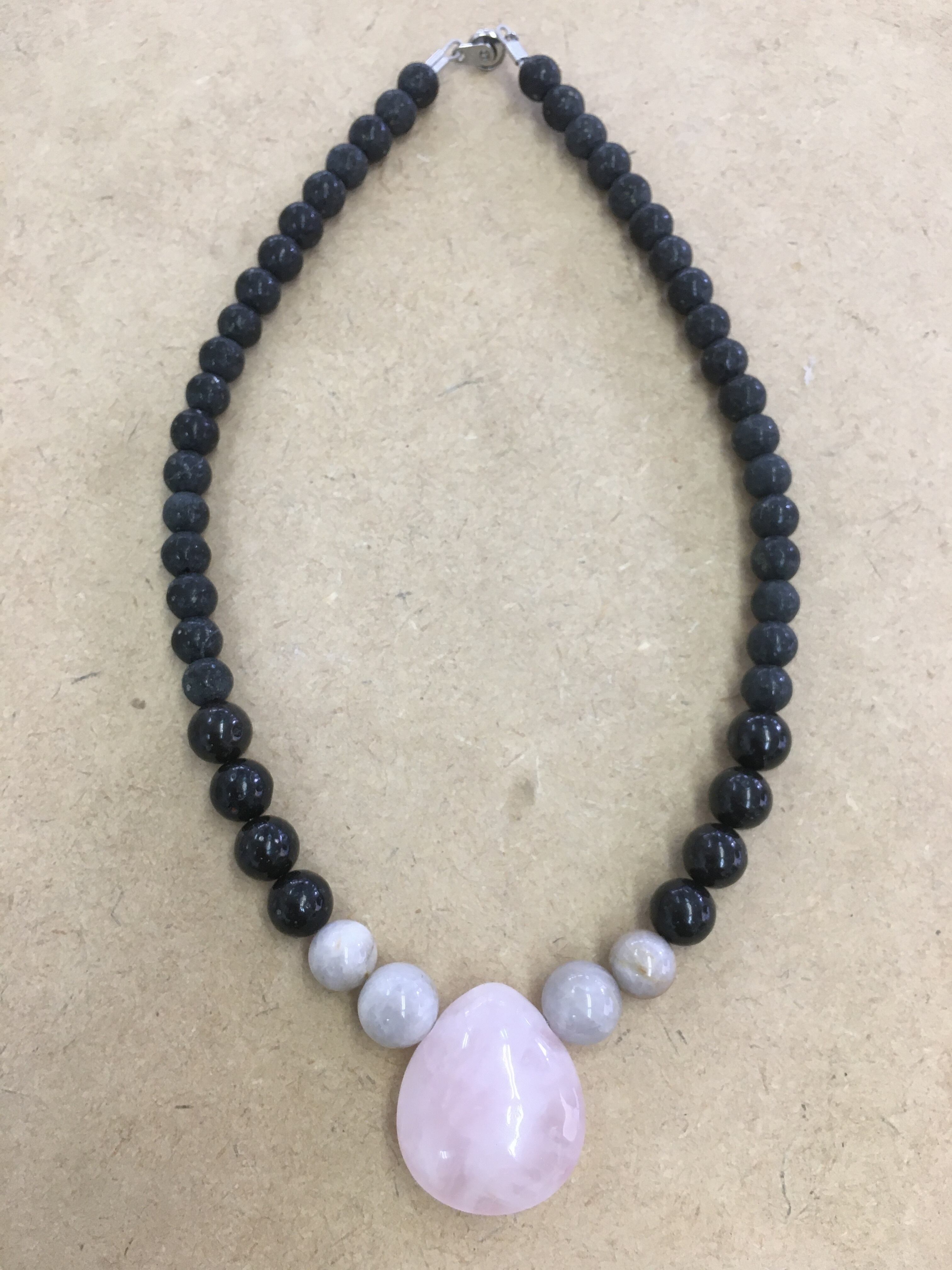 ネックレス部分:雷山塊状石英、芥屋の大門玄武岩