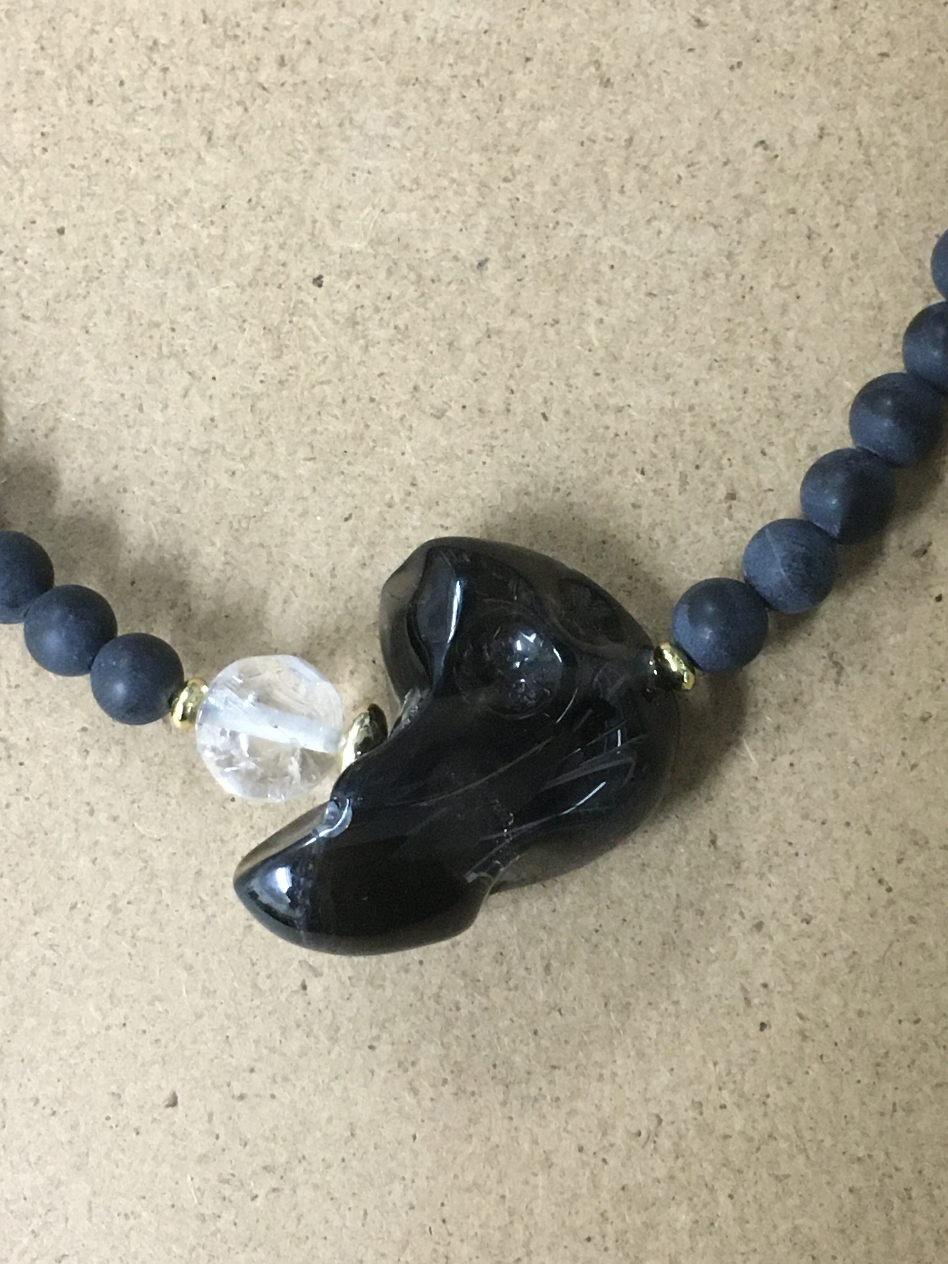 和田峠クリストバライト入り黒曜石の陰陽ネックレス(乙女水晶)