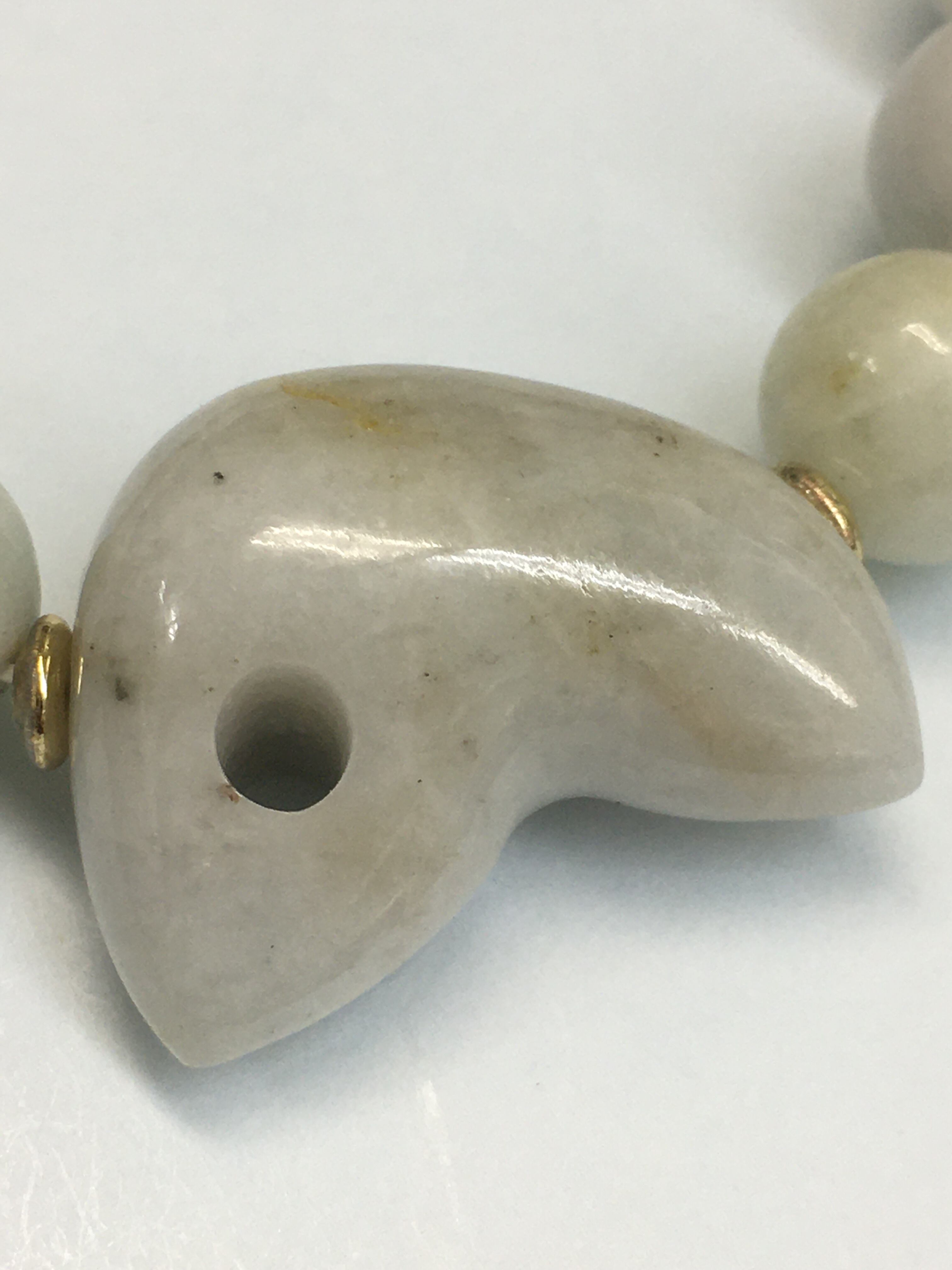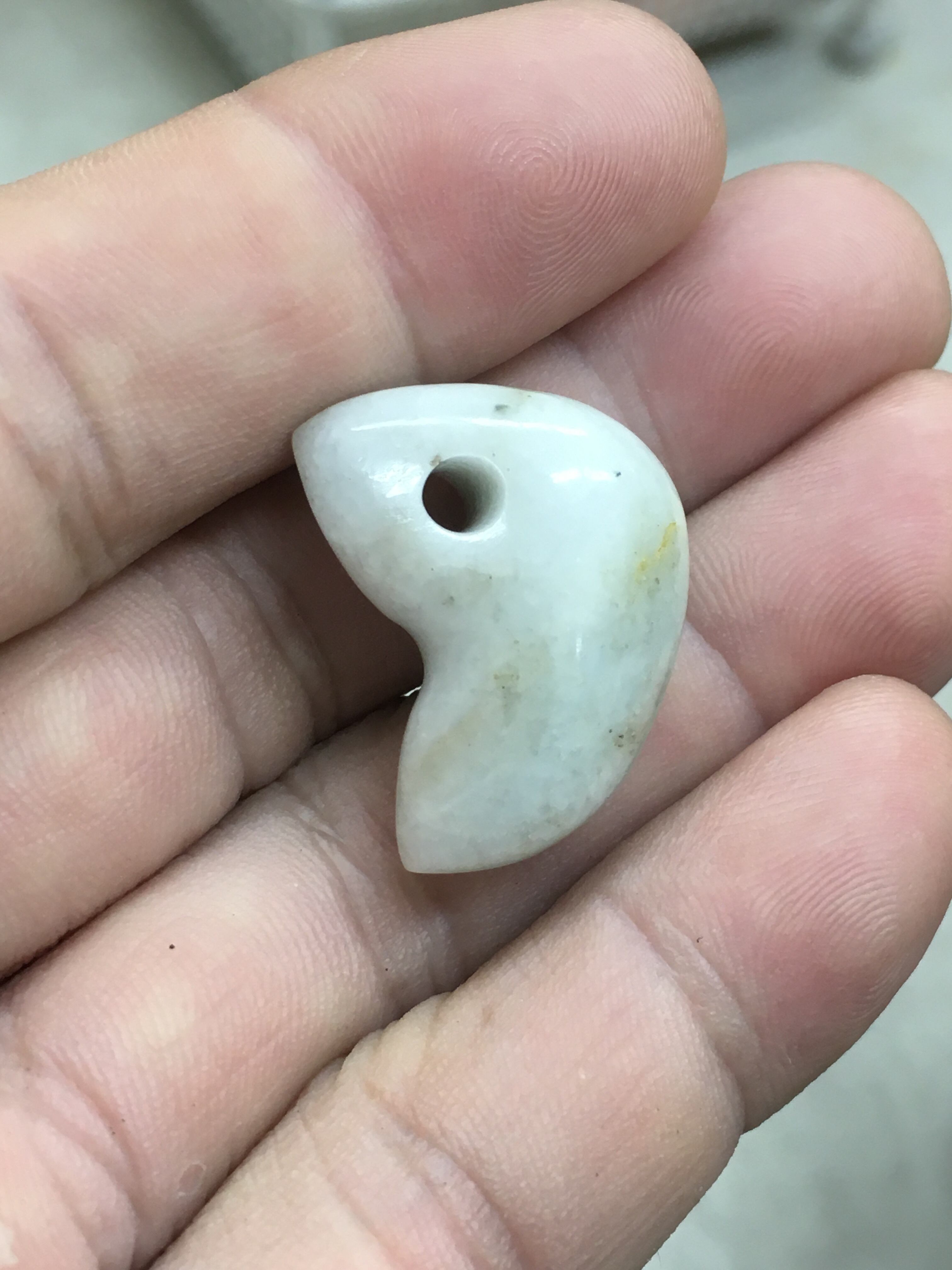 今回の勾玉は、入コン沢の翡翠の青い色が無い白い翡翠を使用しました。
