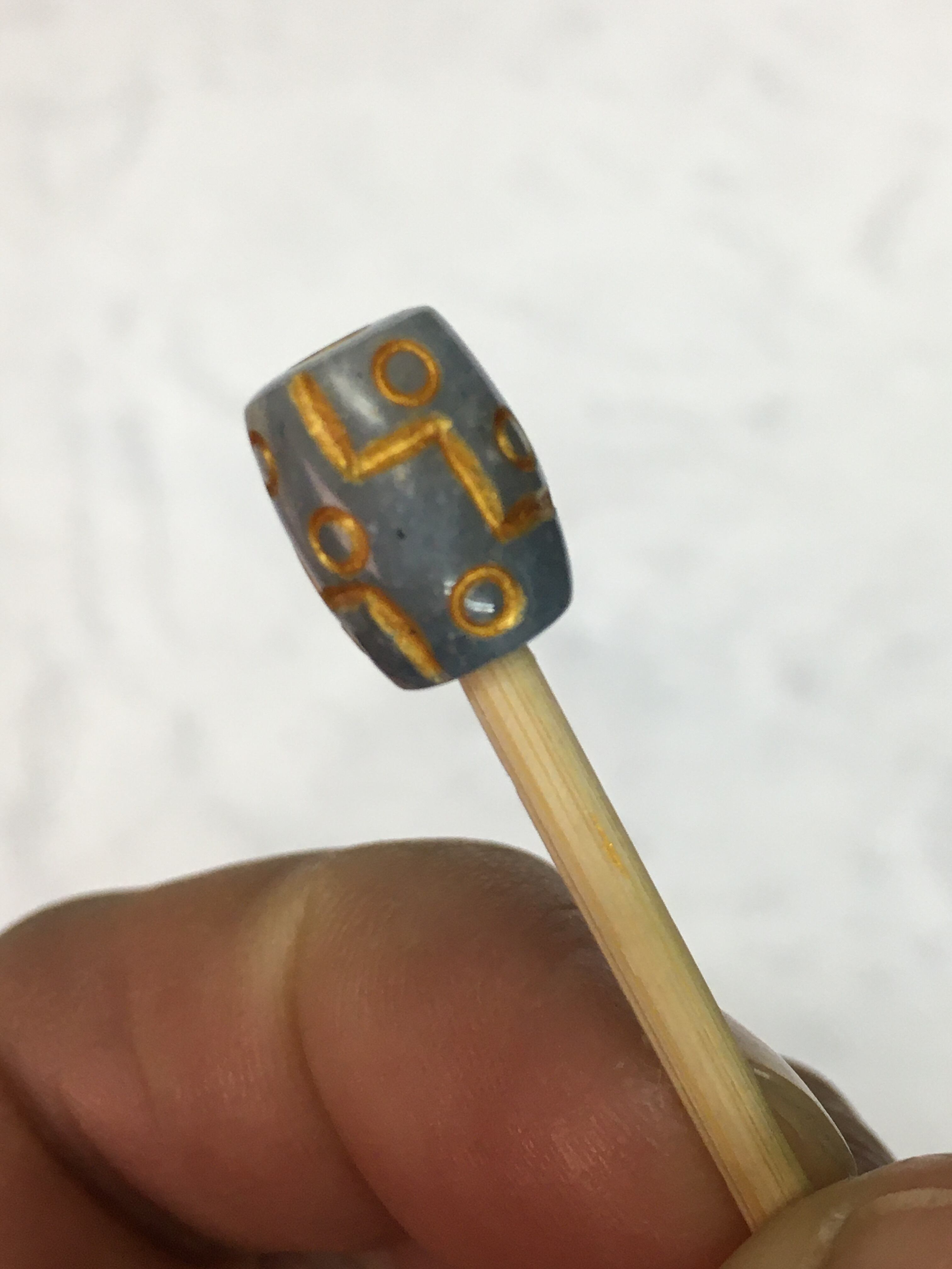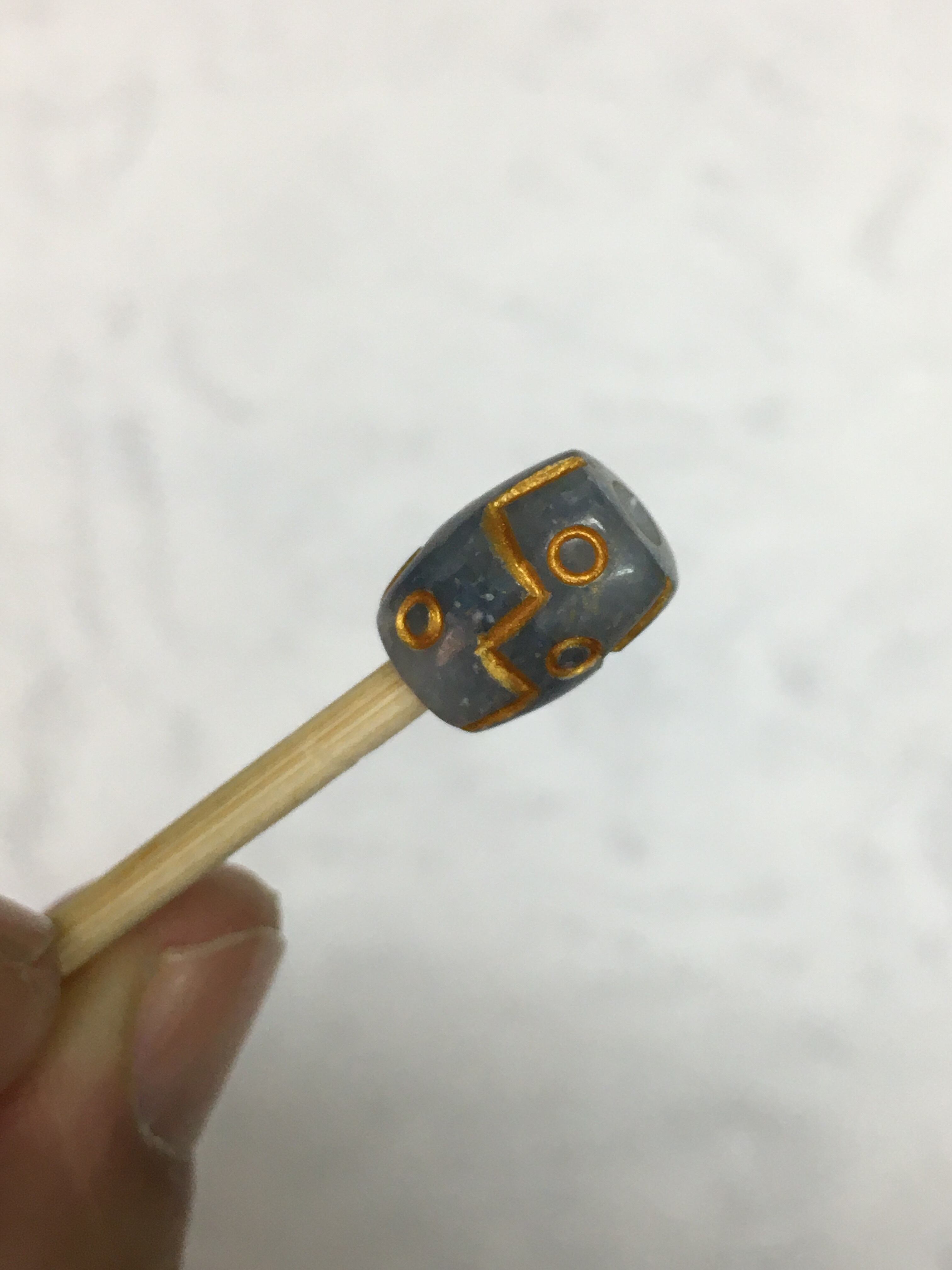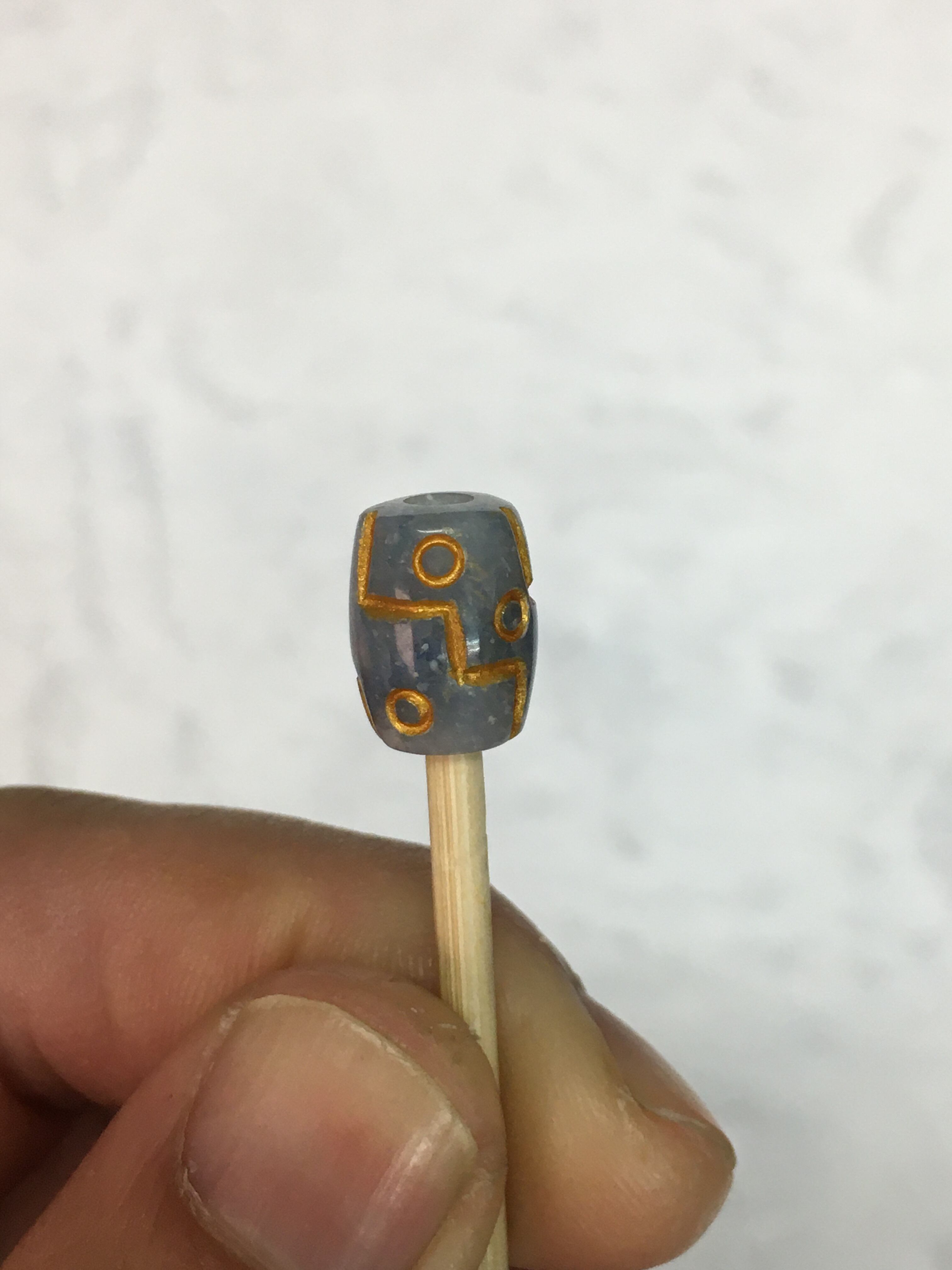 その為、水に濡れても模様の金色は落ちないです。但し、物理的な擦れには影響を受けますので、時間とともに金色も薄れていくと思います。その点を楽しめる方にはオススメの天珠となっております。