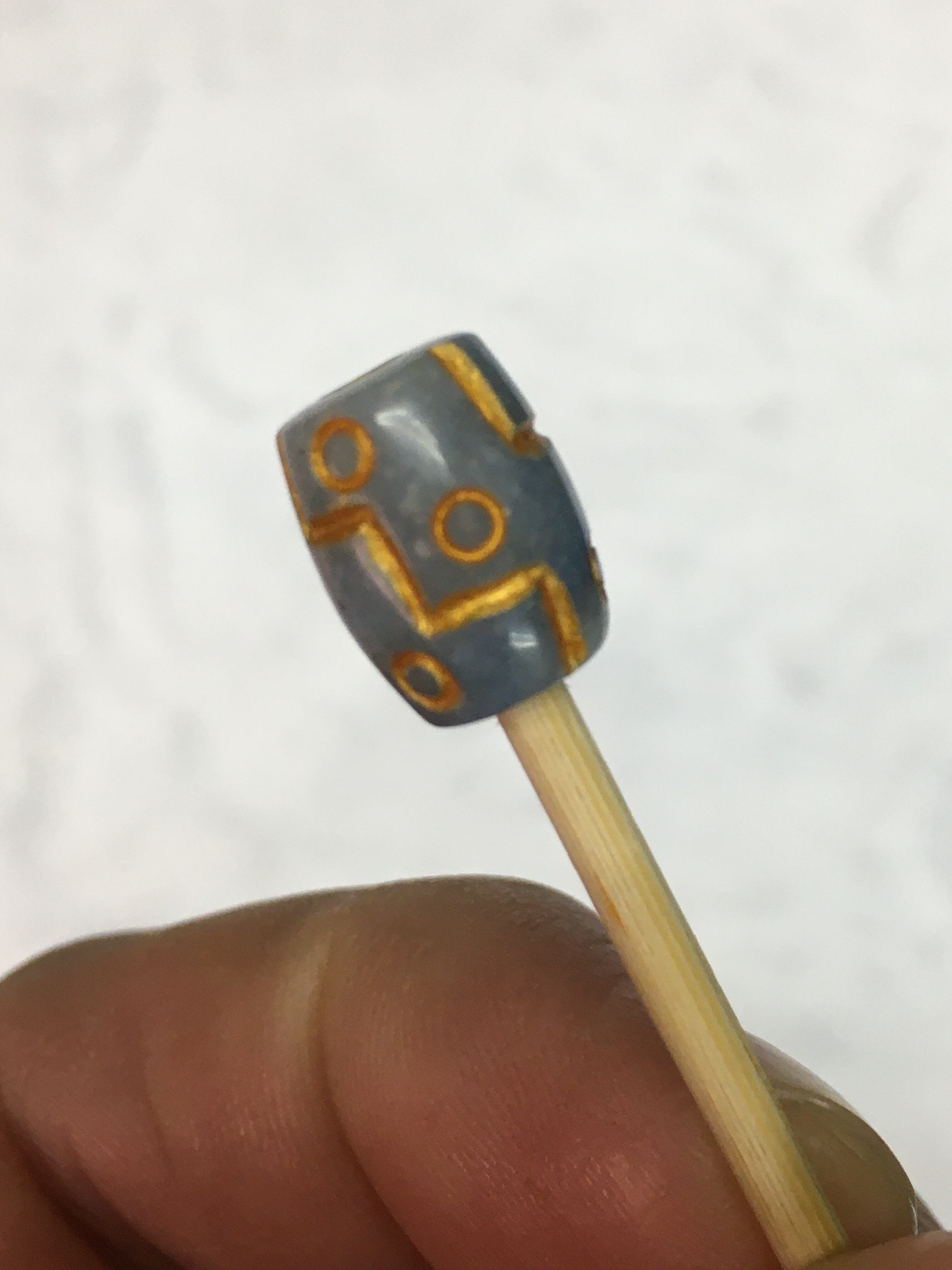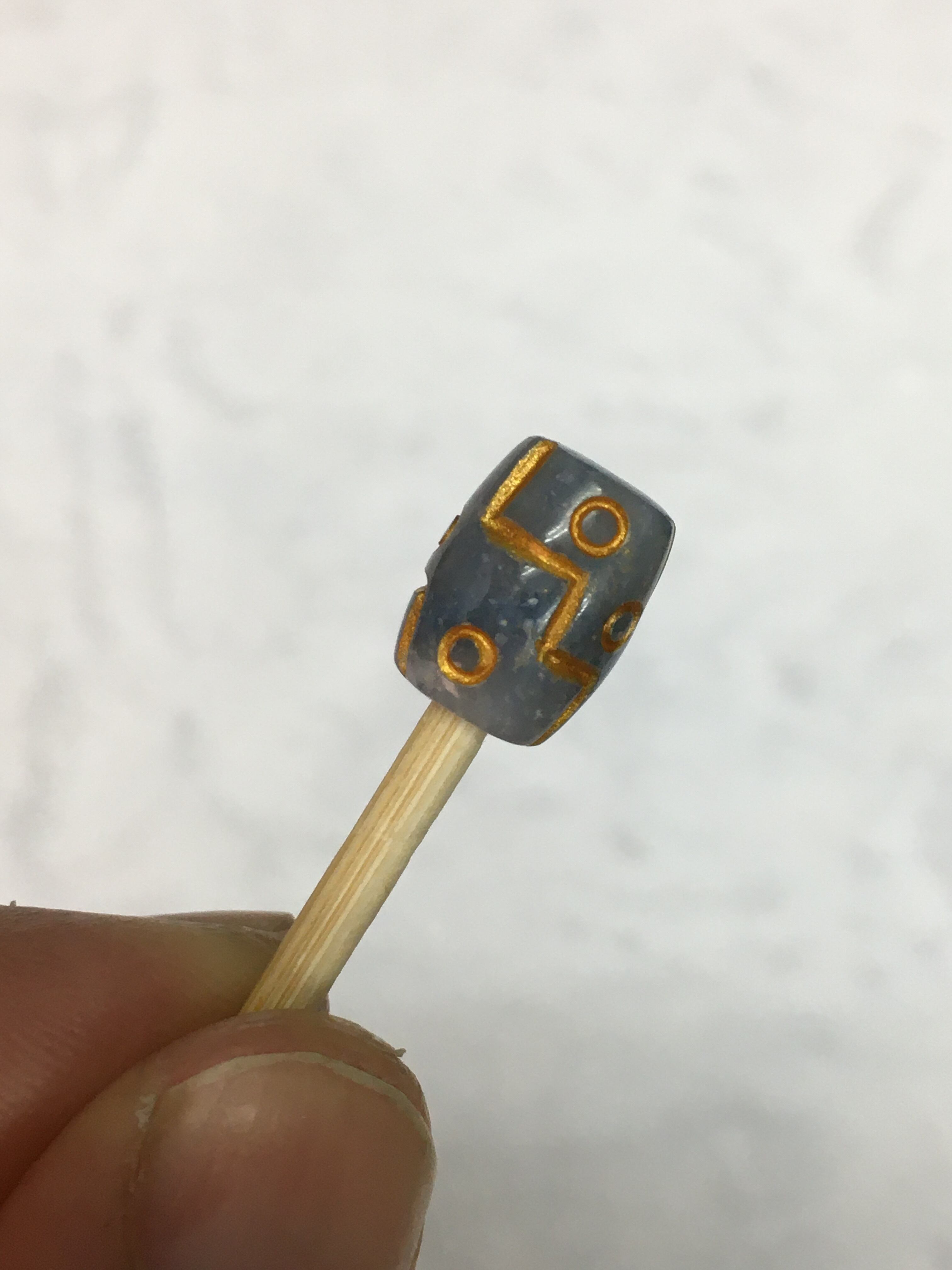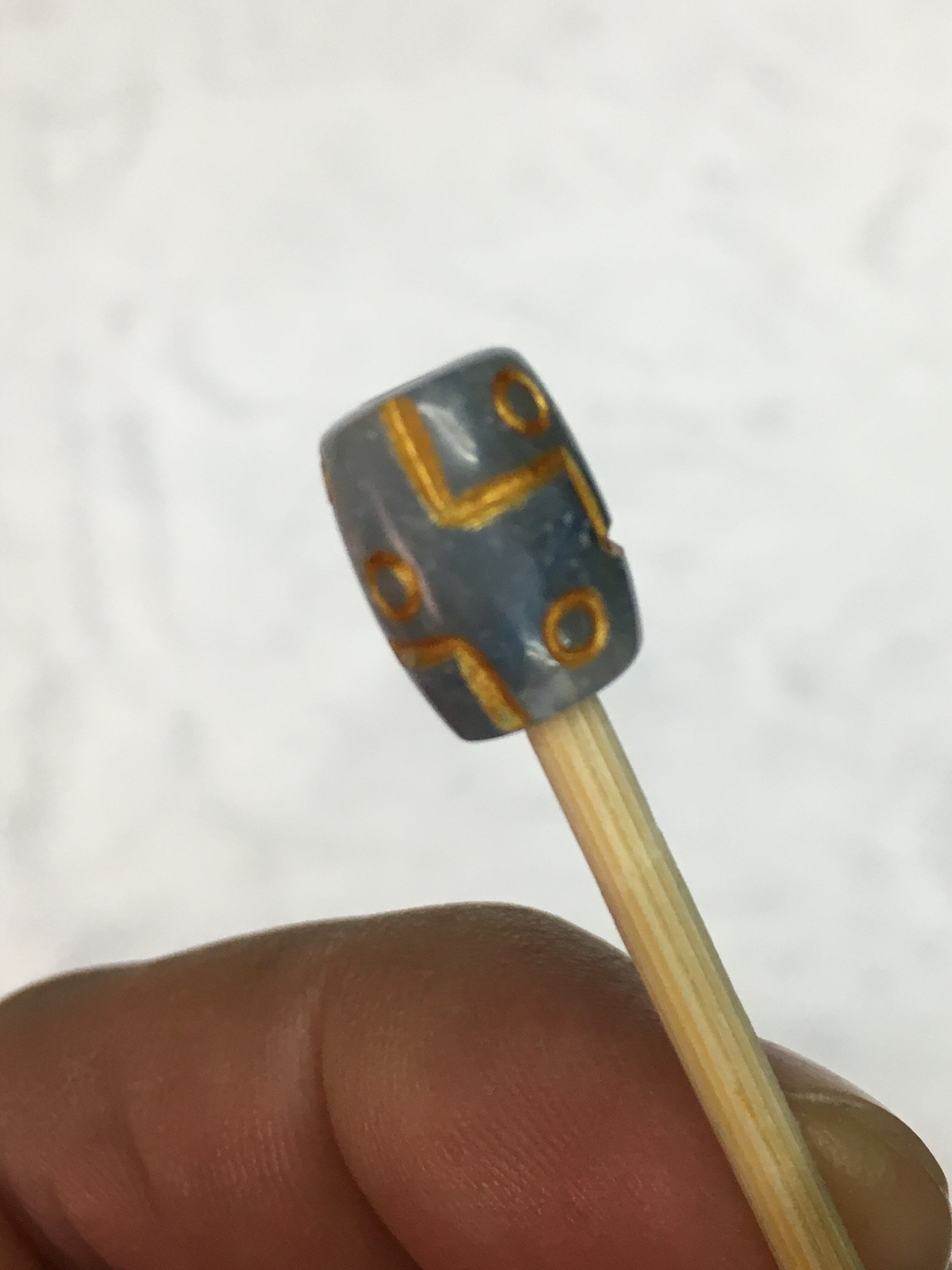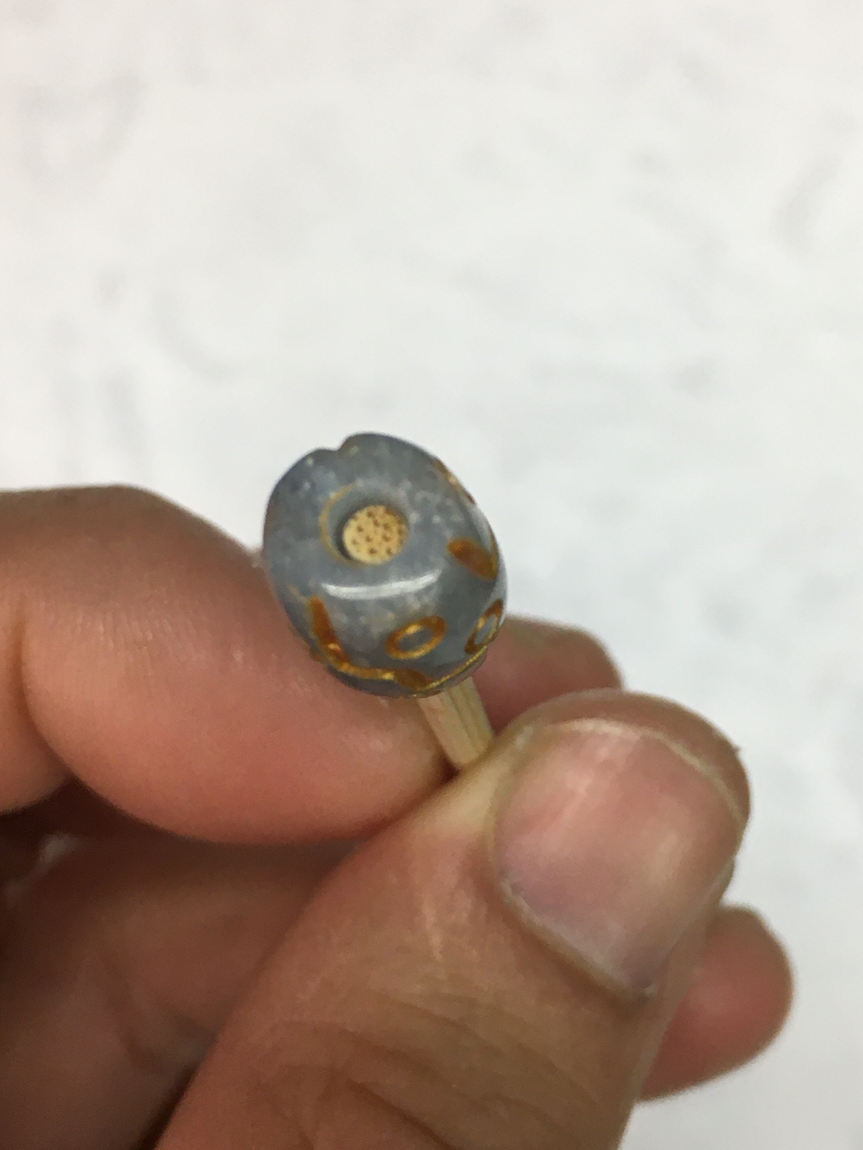 その為、水に濡れても模様の金色は落ちないです。但し、物理的な擦れには影響を受けますので、時間とともに金色も薄れていくと思います。その点を楽しめる方にはオススメの天珠となっております。