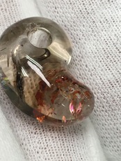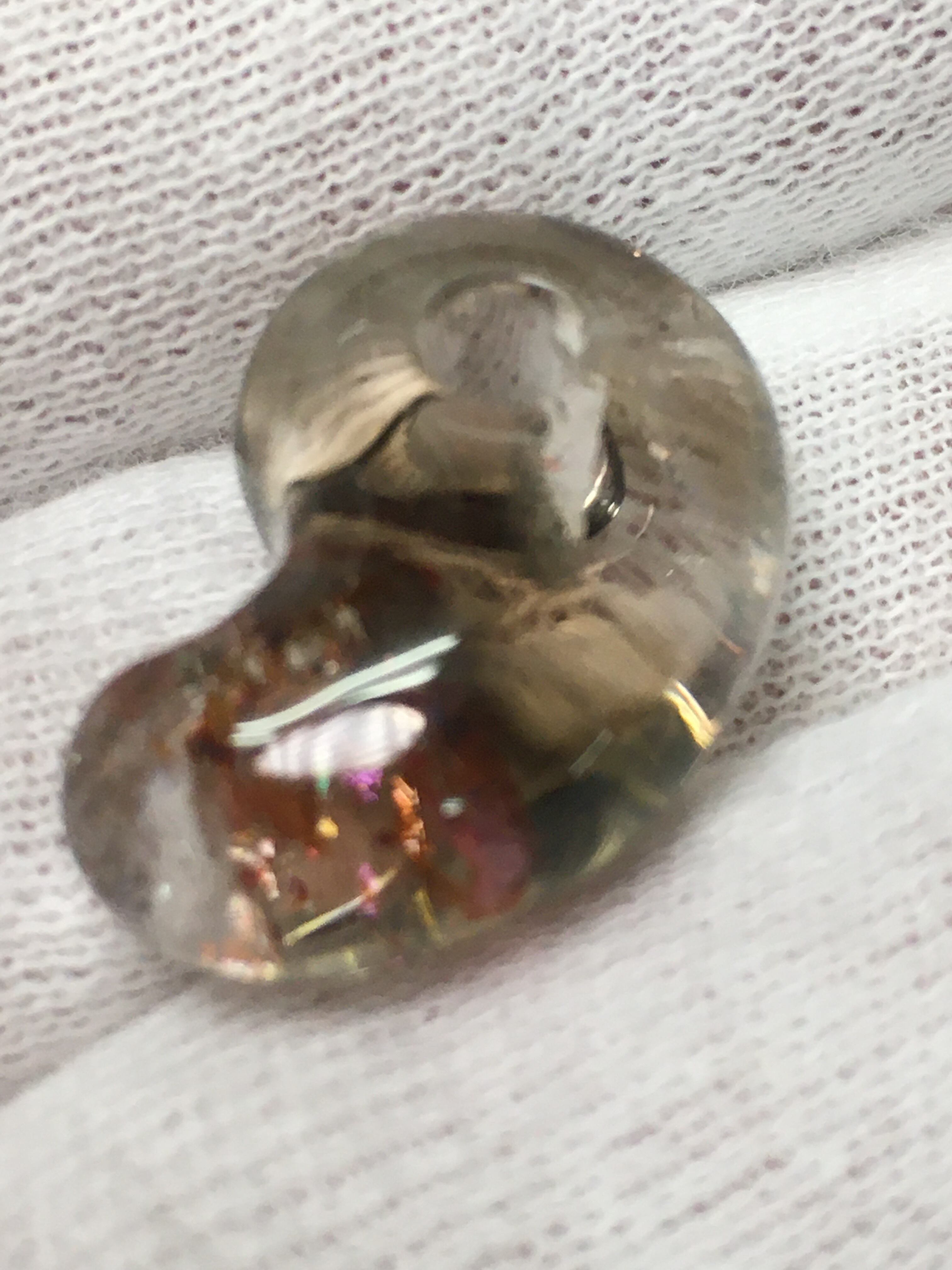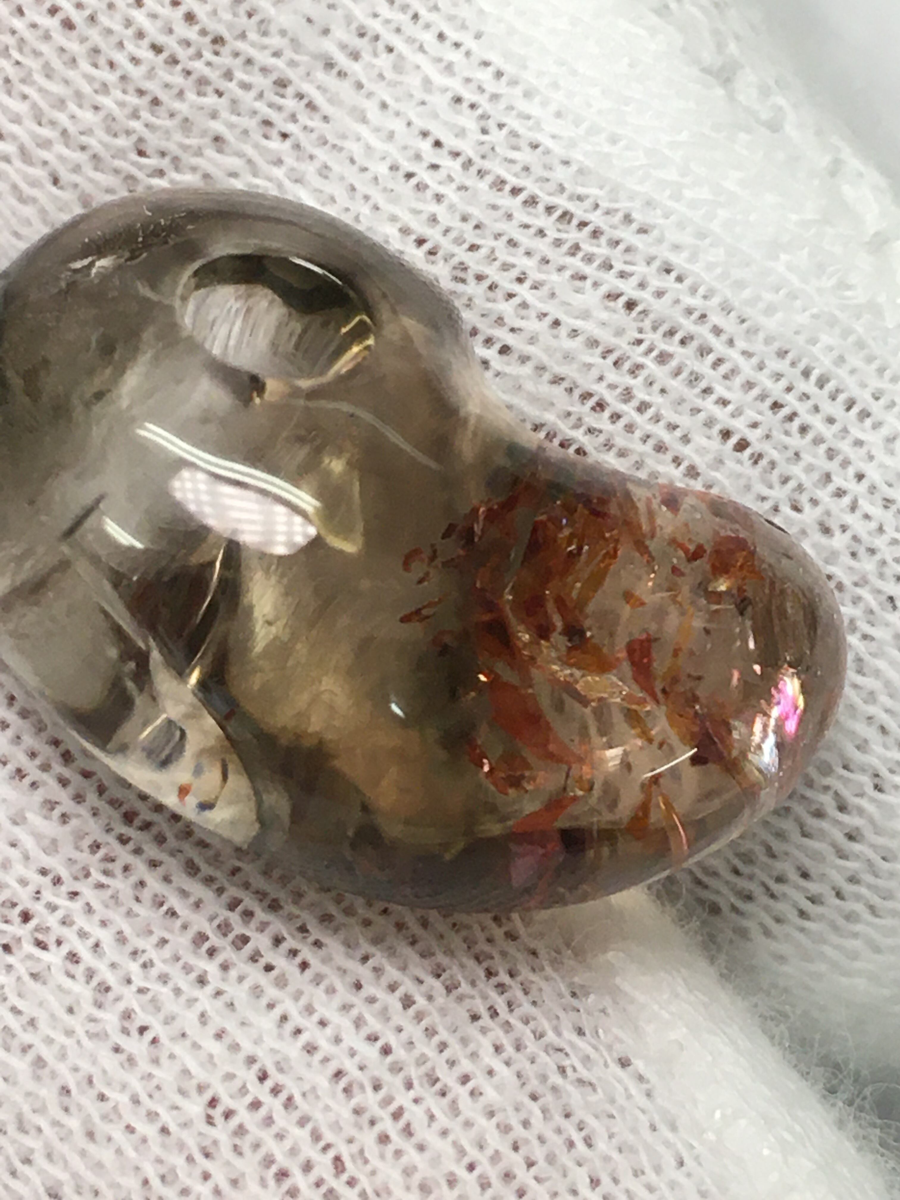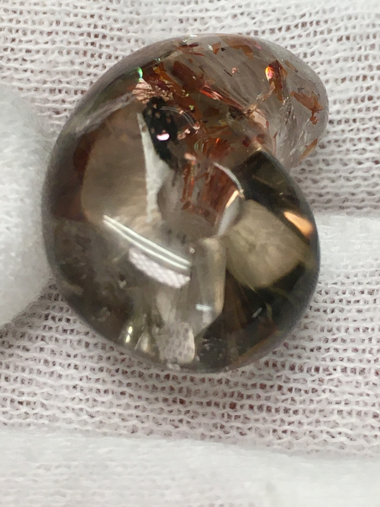 スモーキークォーツと、レピドクロサイト入水晶のファントムの所を勾玉にしました。