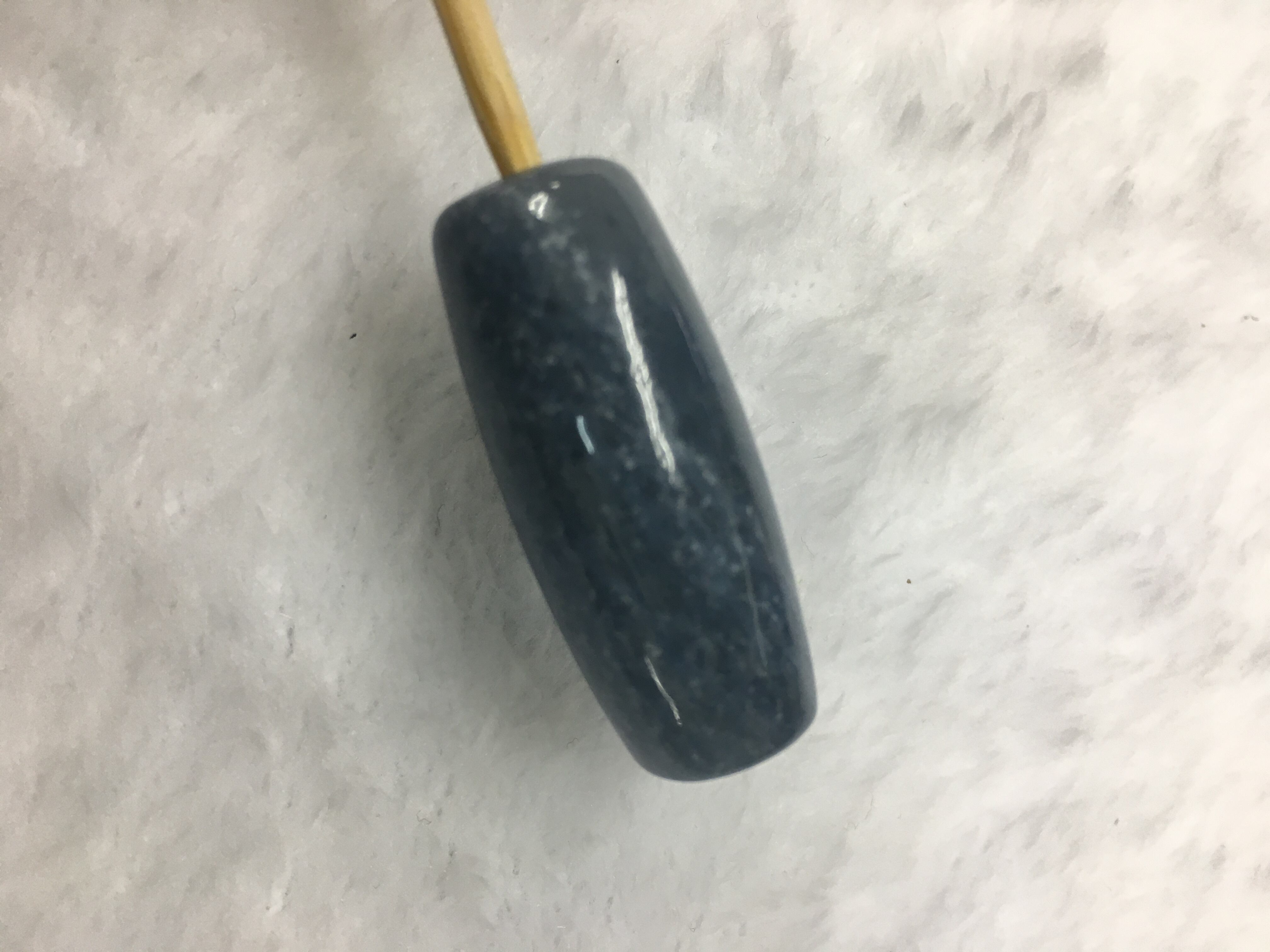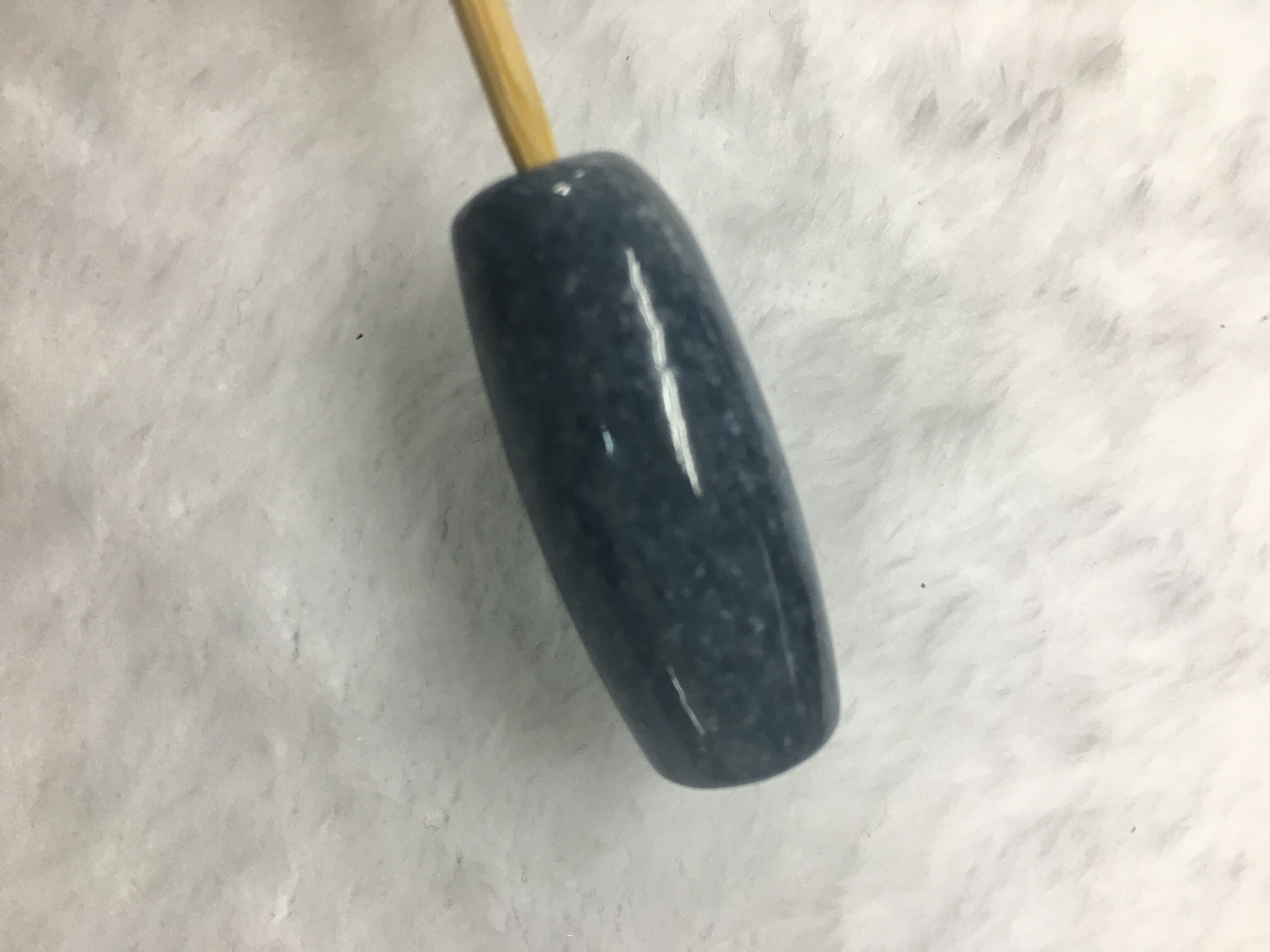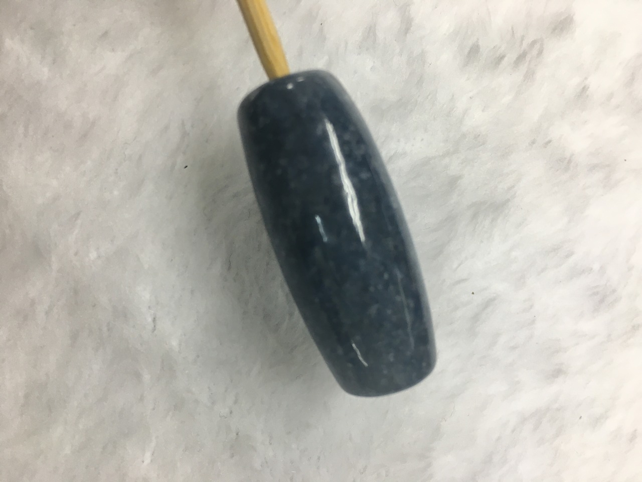 こちらの天珠形をよく見ると、少し白っぽい部分と青い部分が斜めに別れております。天珠的には2極性を表し、「陰陽合一」と考えられると思います。