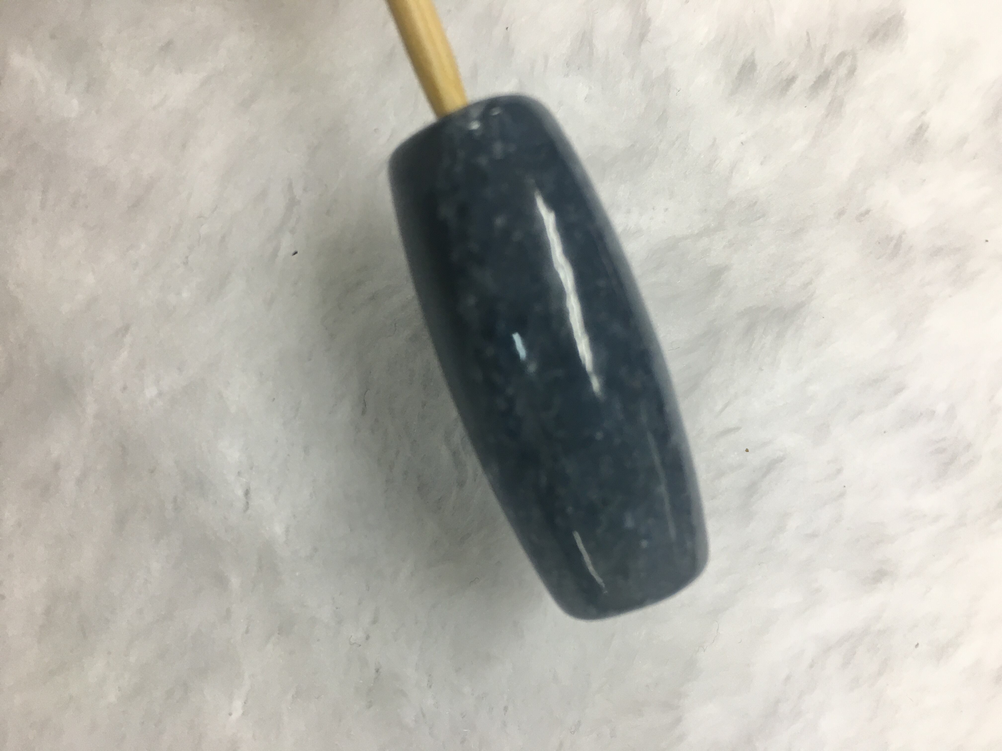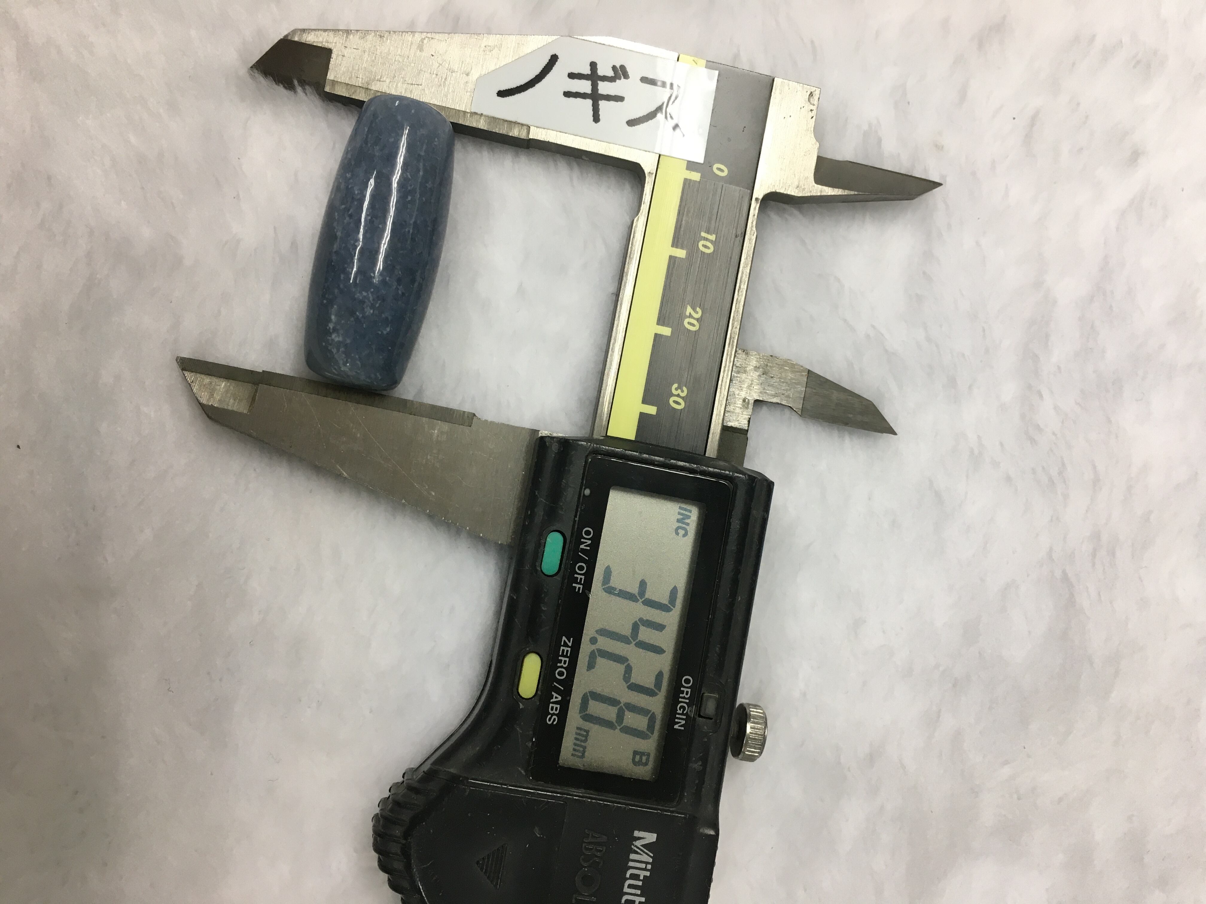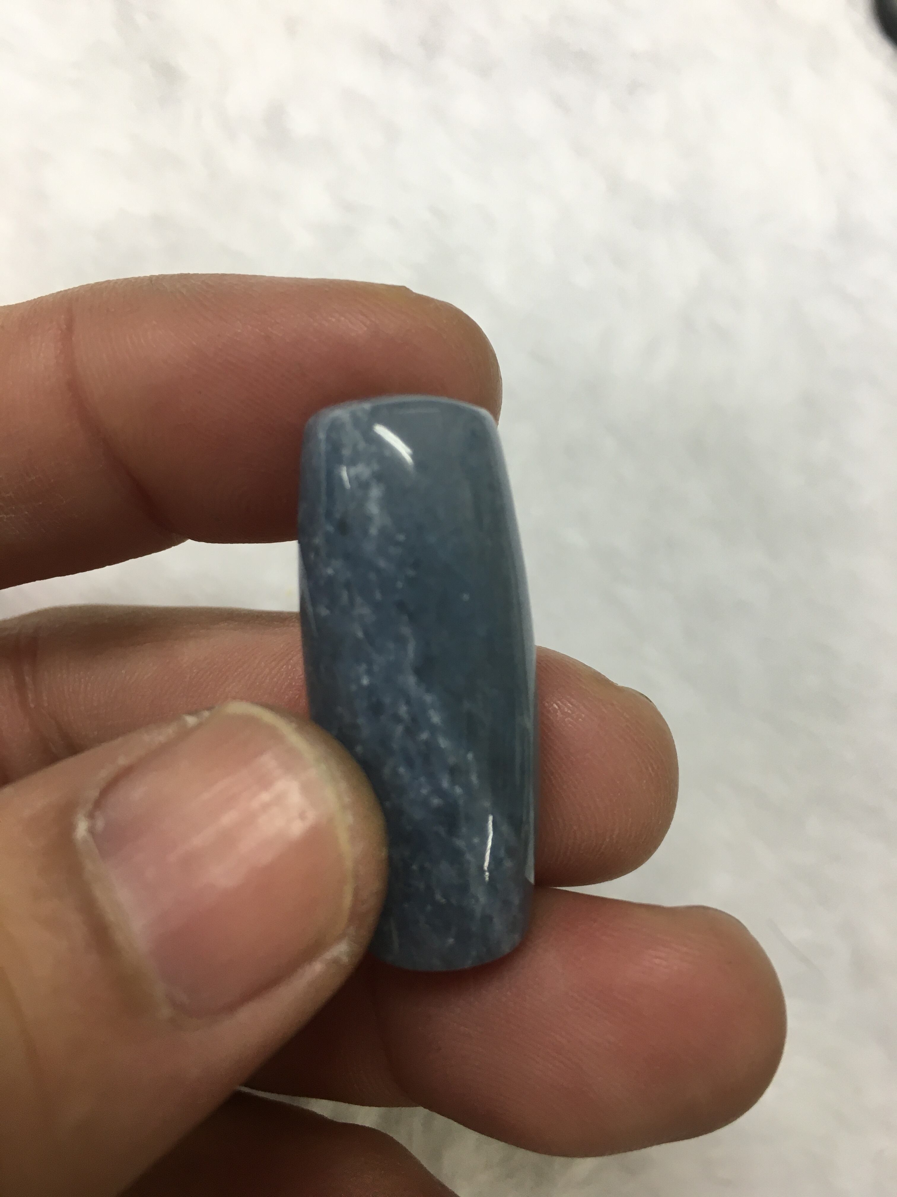 こちらの天珠形をよく見ると、少し白っぽい部分と青い部分が斜めに別れております。天珠的には2極性を表し、「陰陽合一」と考えられると思います。