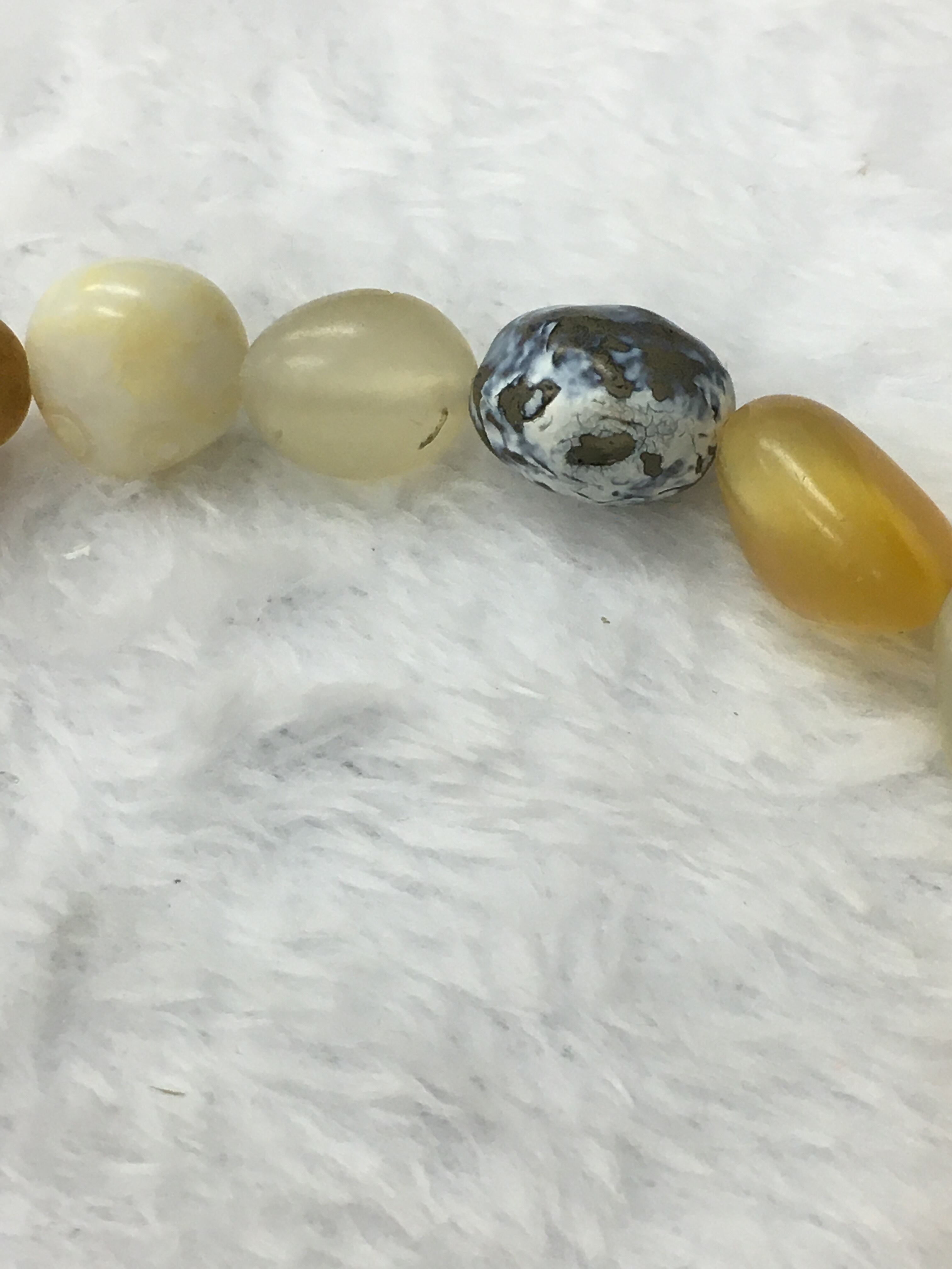 今回のブレスレットには、自然天珠と呼べる瑪瑙が1つ入っています。大きさは縦横1センチ程のものですが、美しい天眼が確認できます。