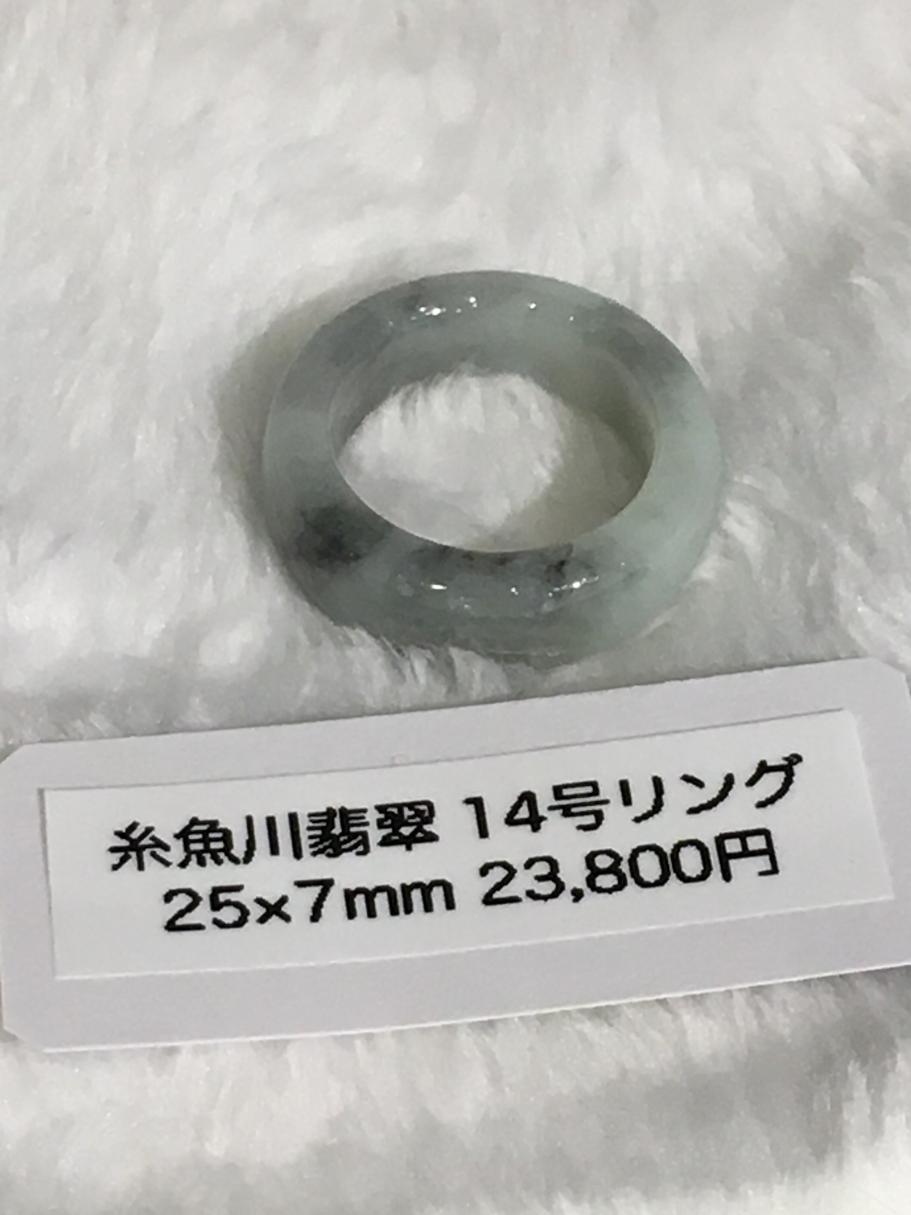 糸魚川翡翠で、くり抜きリング14号甲丸