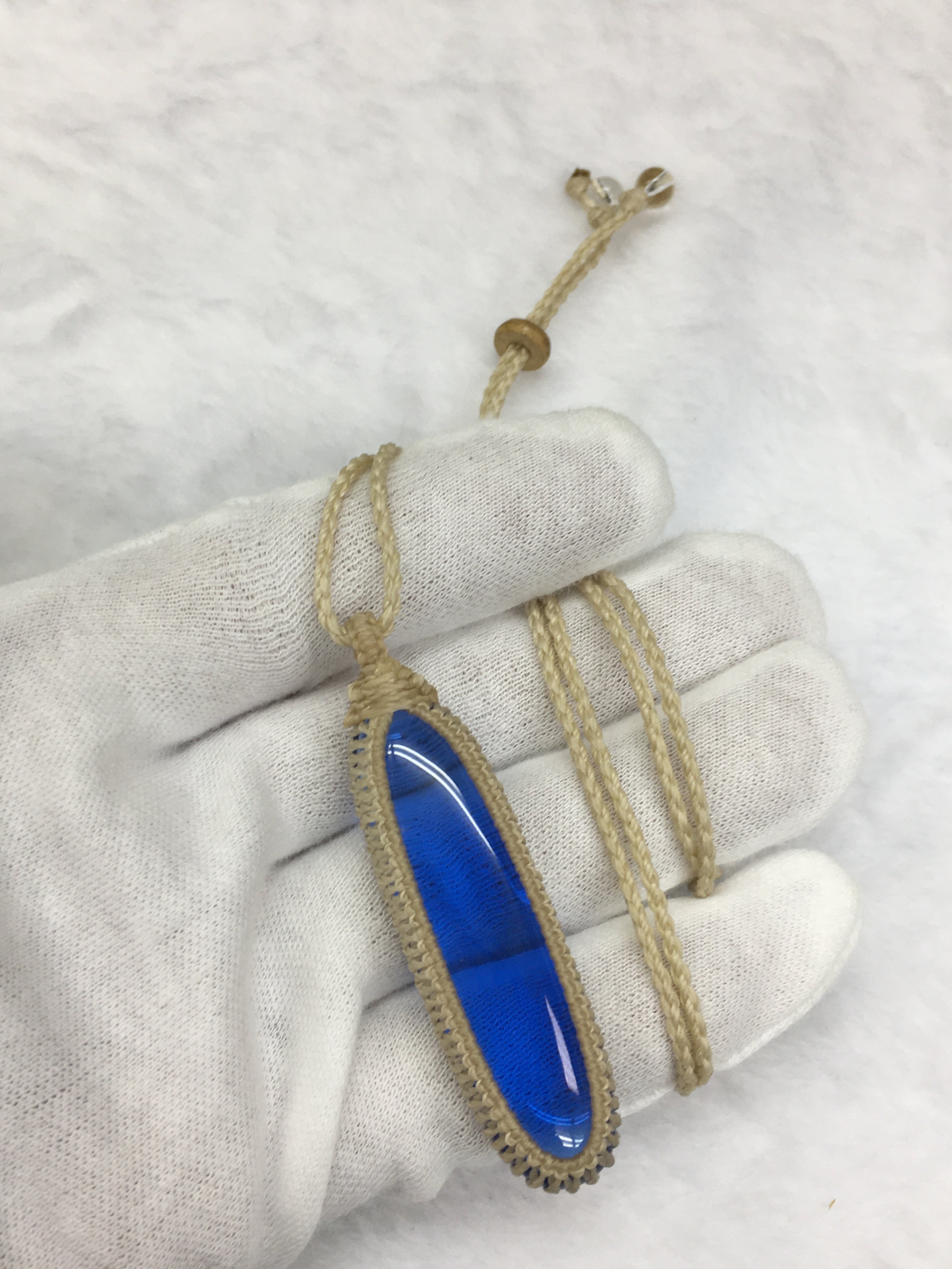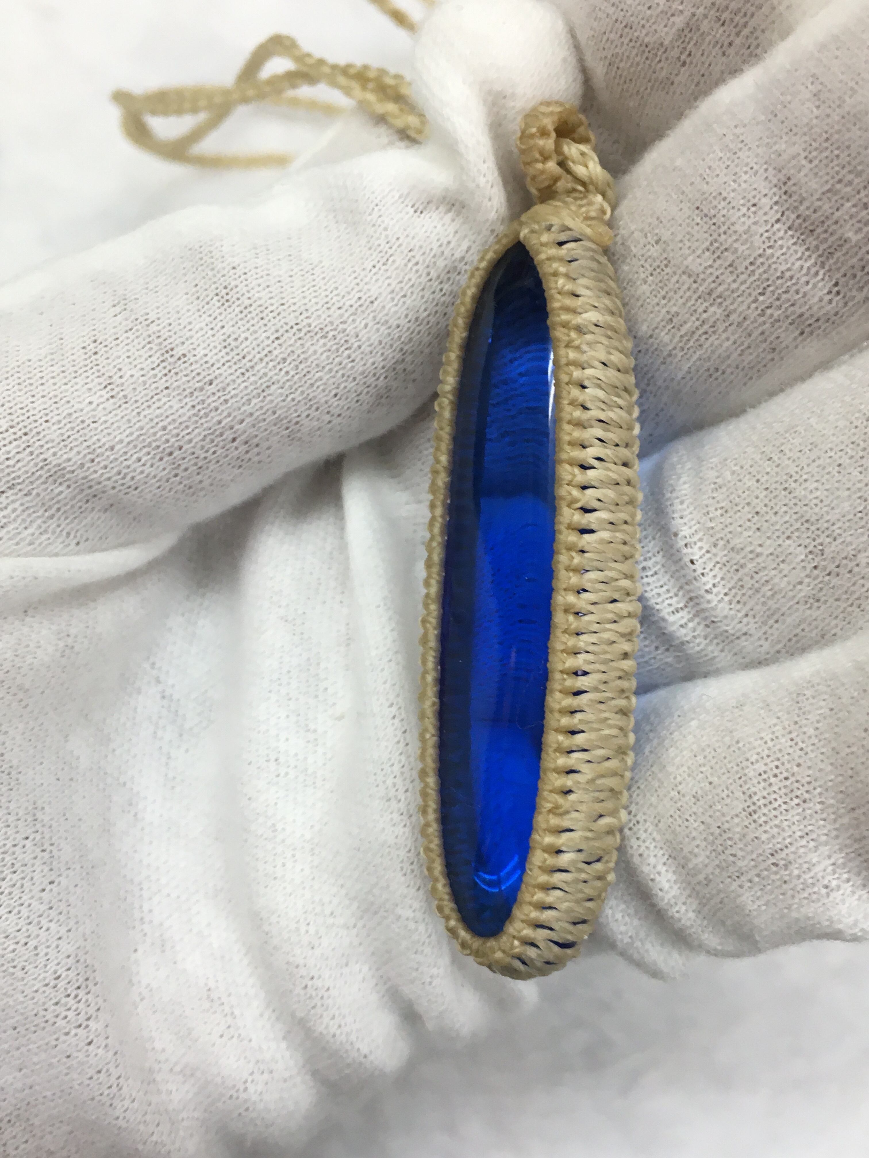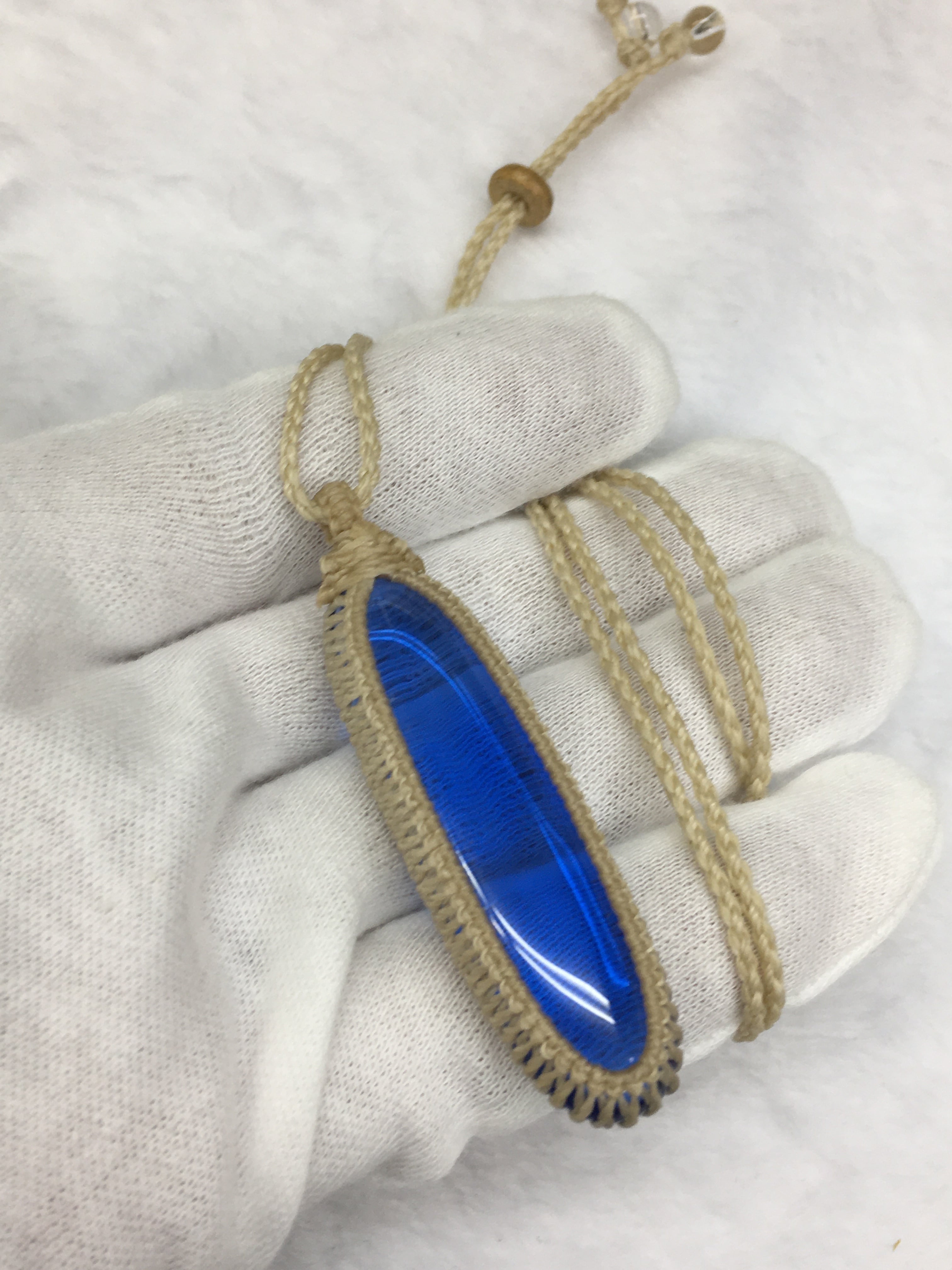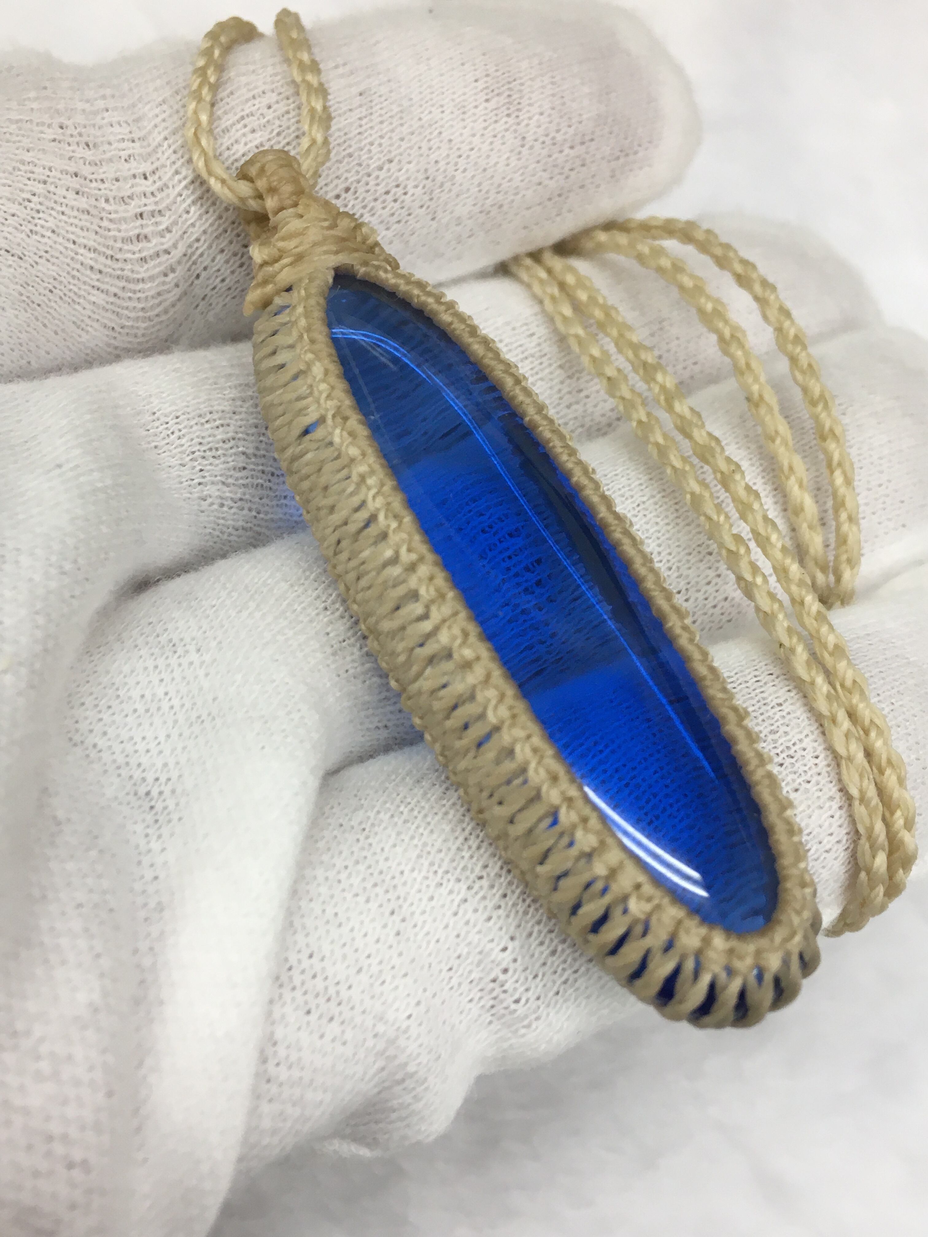 ルースを作り、マクラメ編みで紐付きペンダントにいたしました。