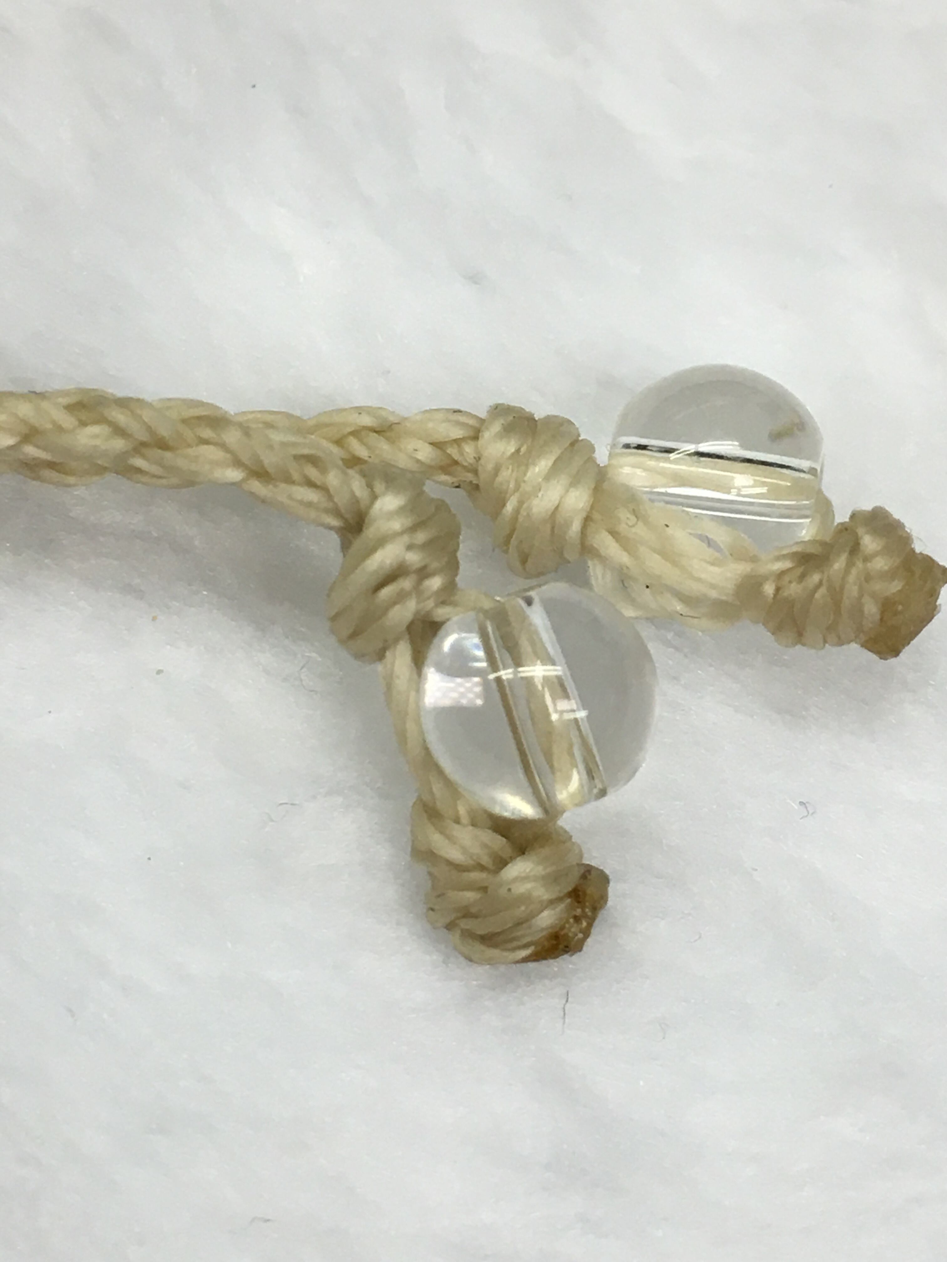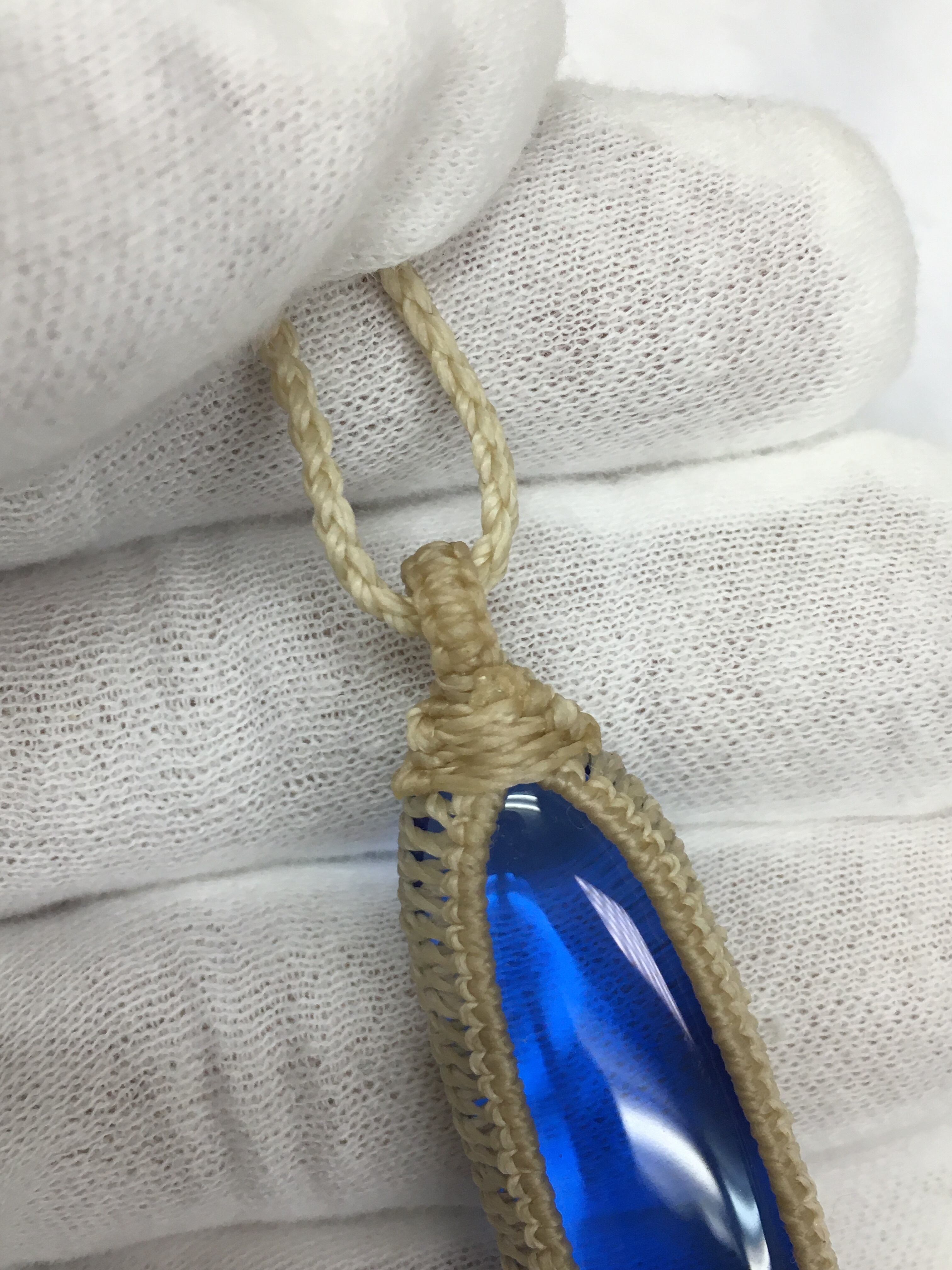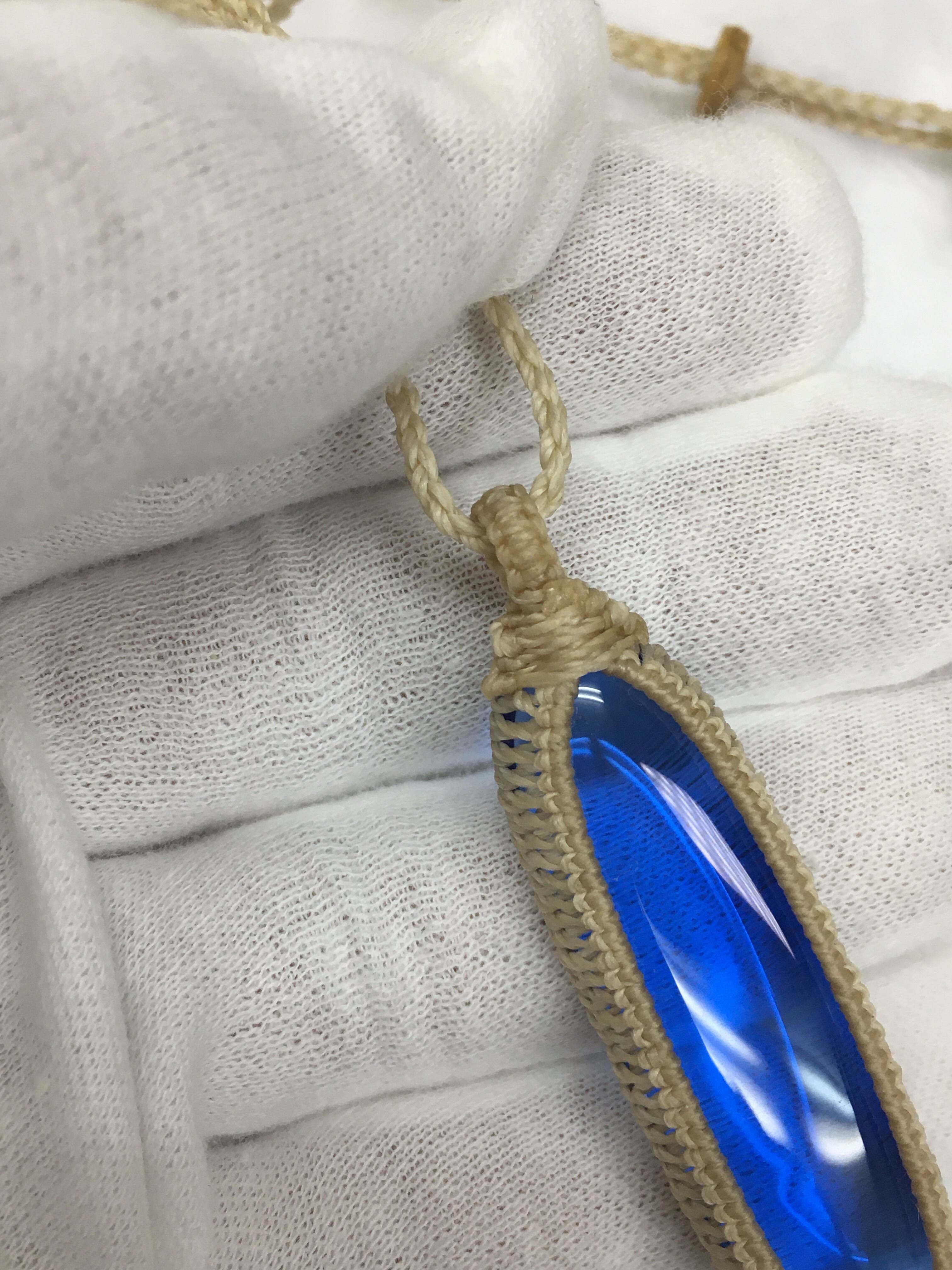 こちらのルースはケンズクリスタルが作成いたしました。マクラメ編みは別の方に依頼しました。