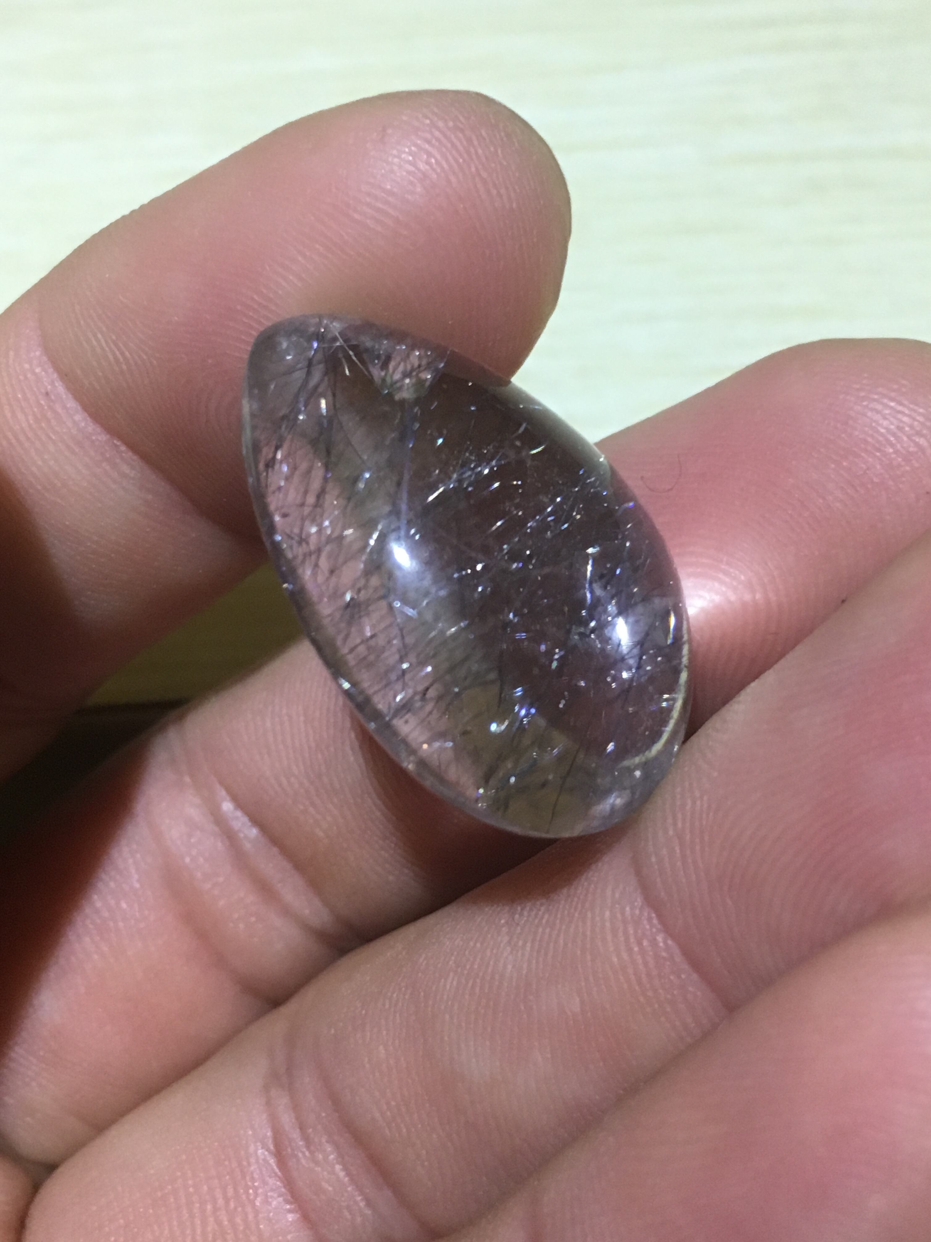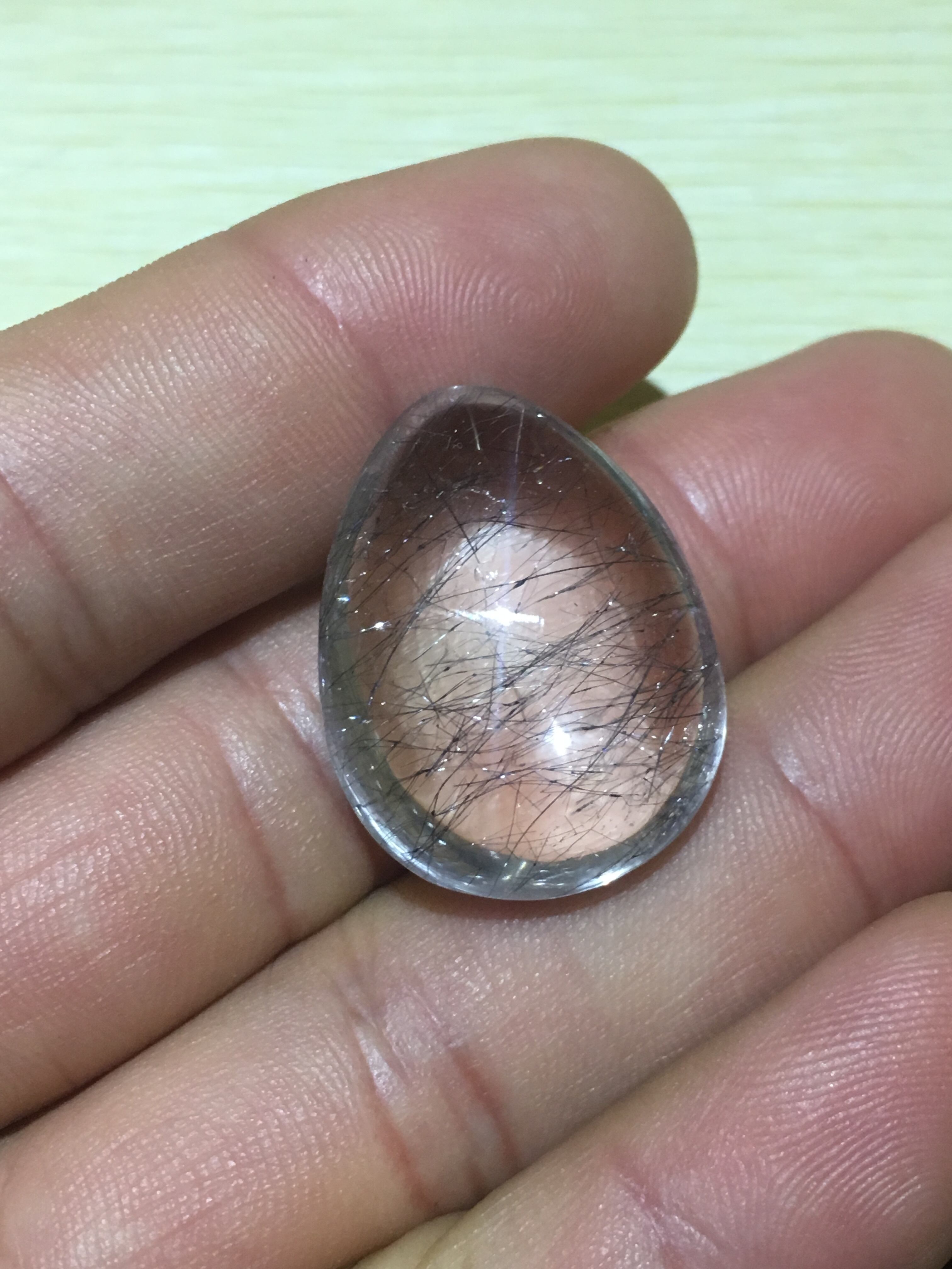トルマリンinクォーツとも、ブラックルチルとも、またプラチナルチルかとも異なり、強い光沢感を持った針が内包されています。