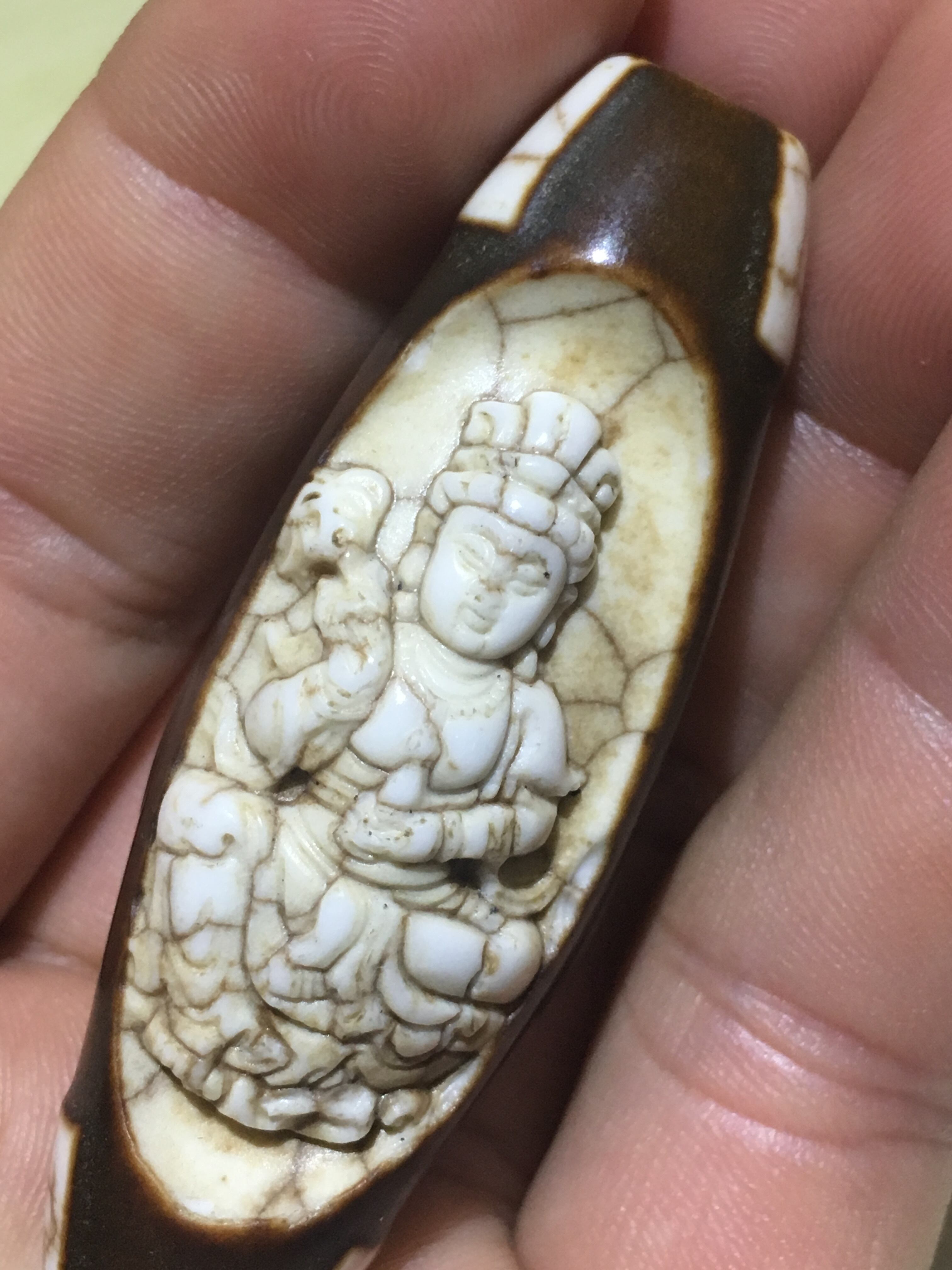 立体天珠 菩提樹 自在観音菩薩 彫刻