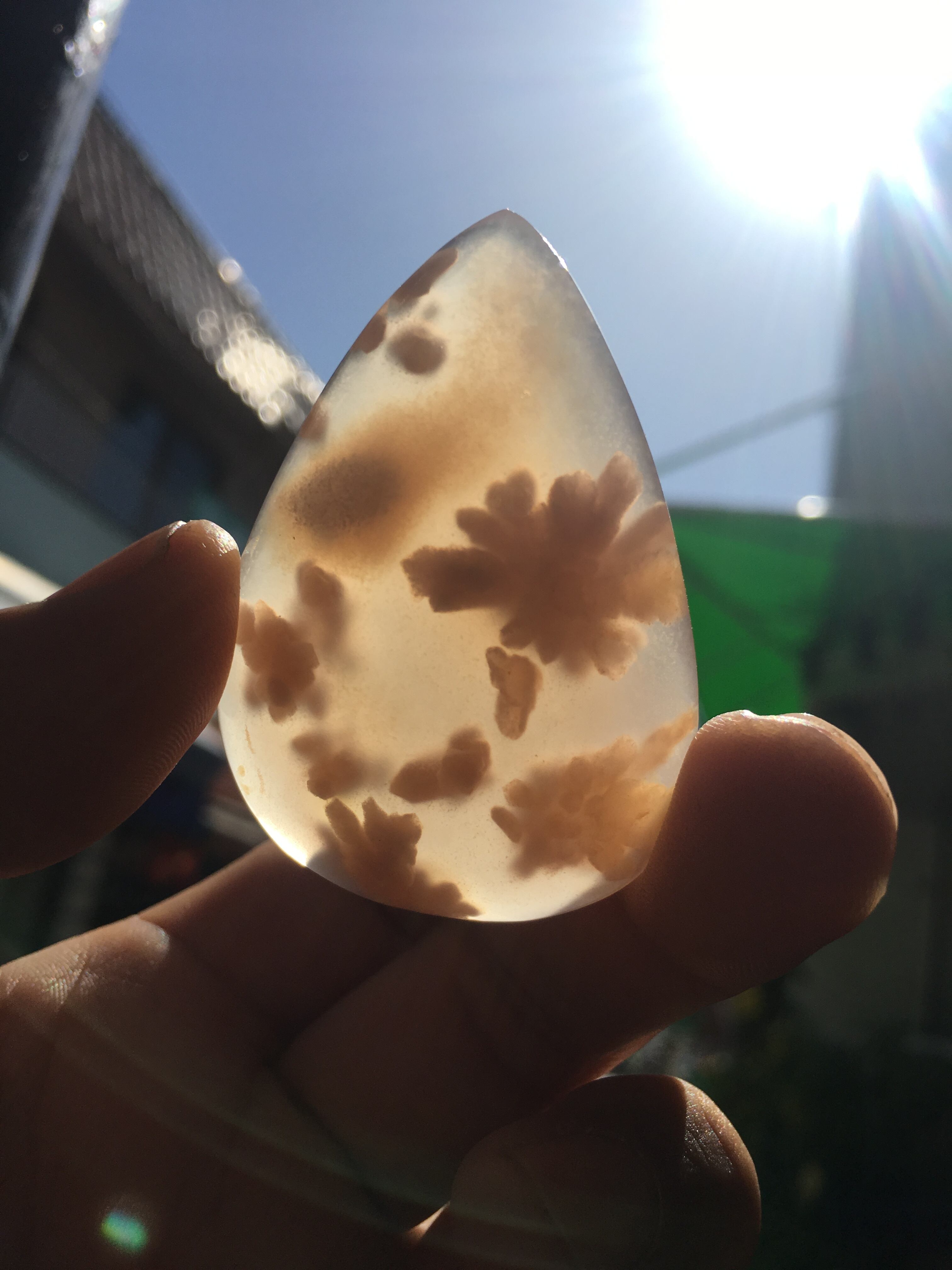 マダガスカル産の瑪瑙に、素敵な内包物が含まれています。現地では、“馬島の櫻石”(マトウノサクライシ)と呼ばれています。