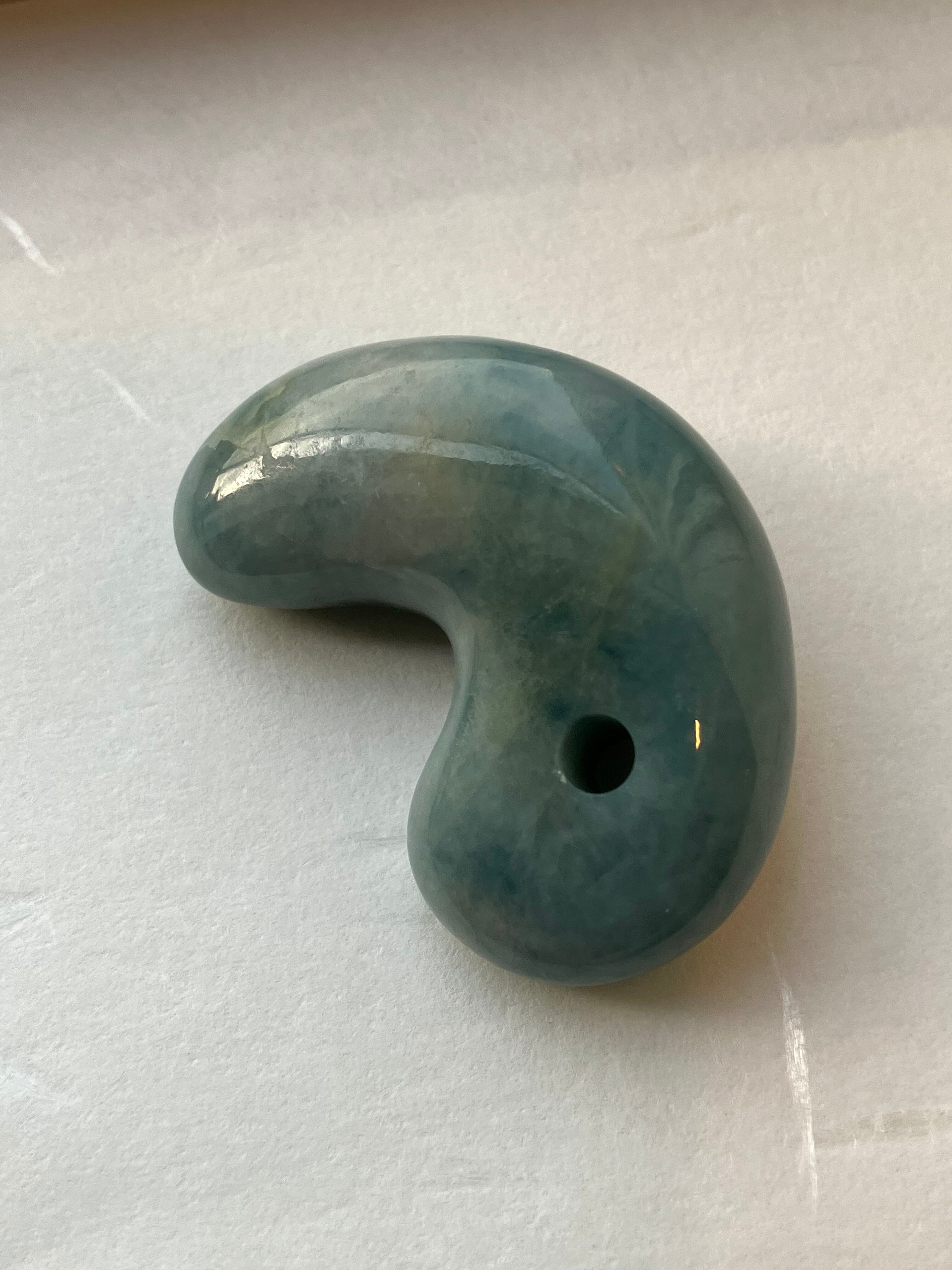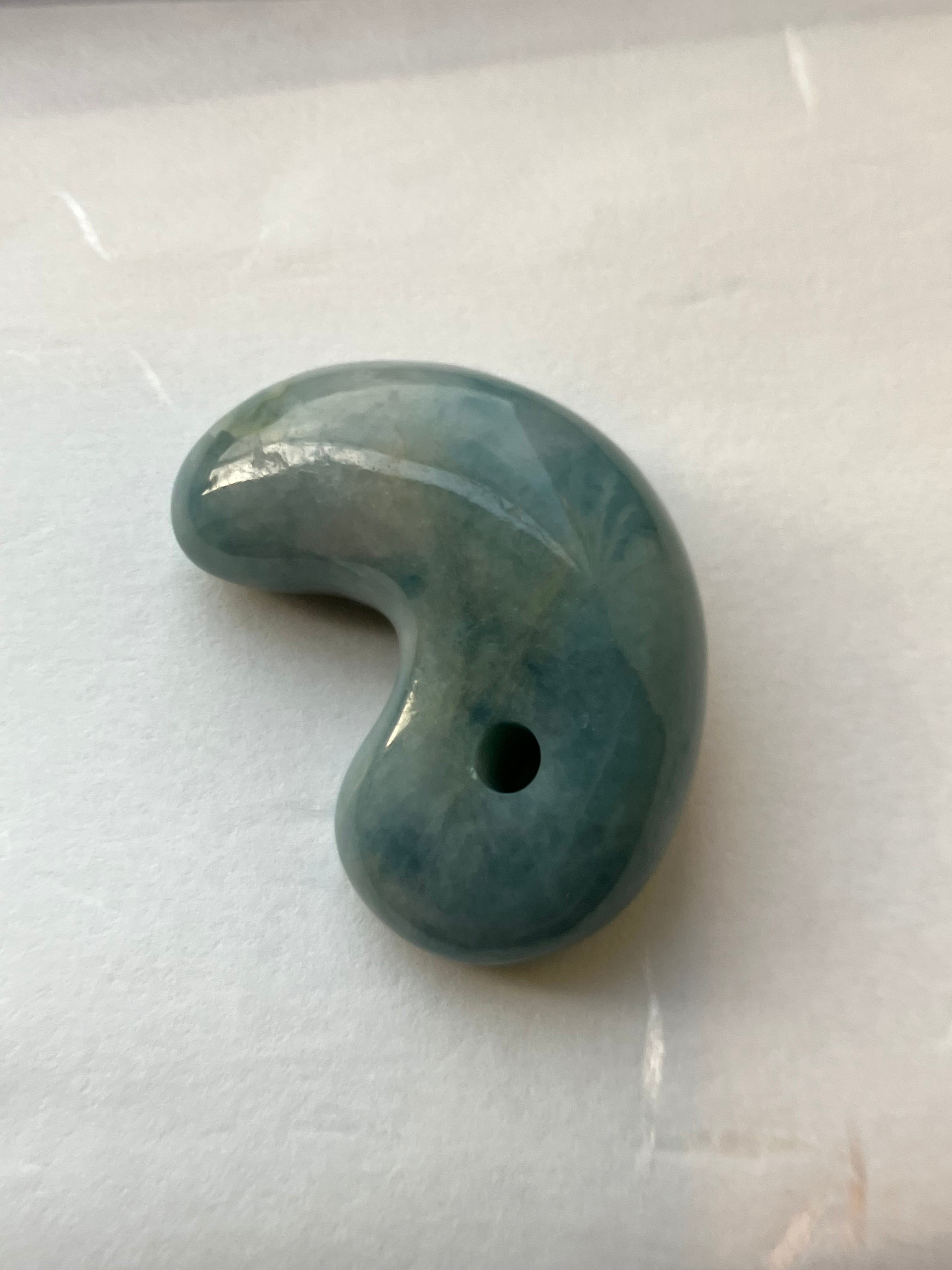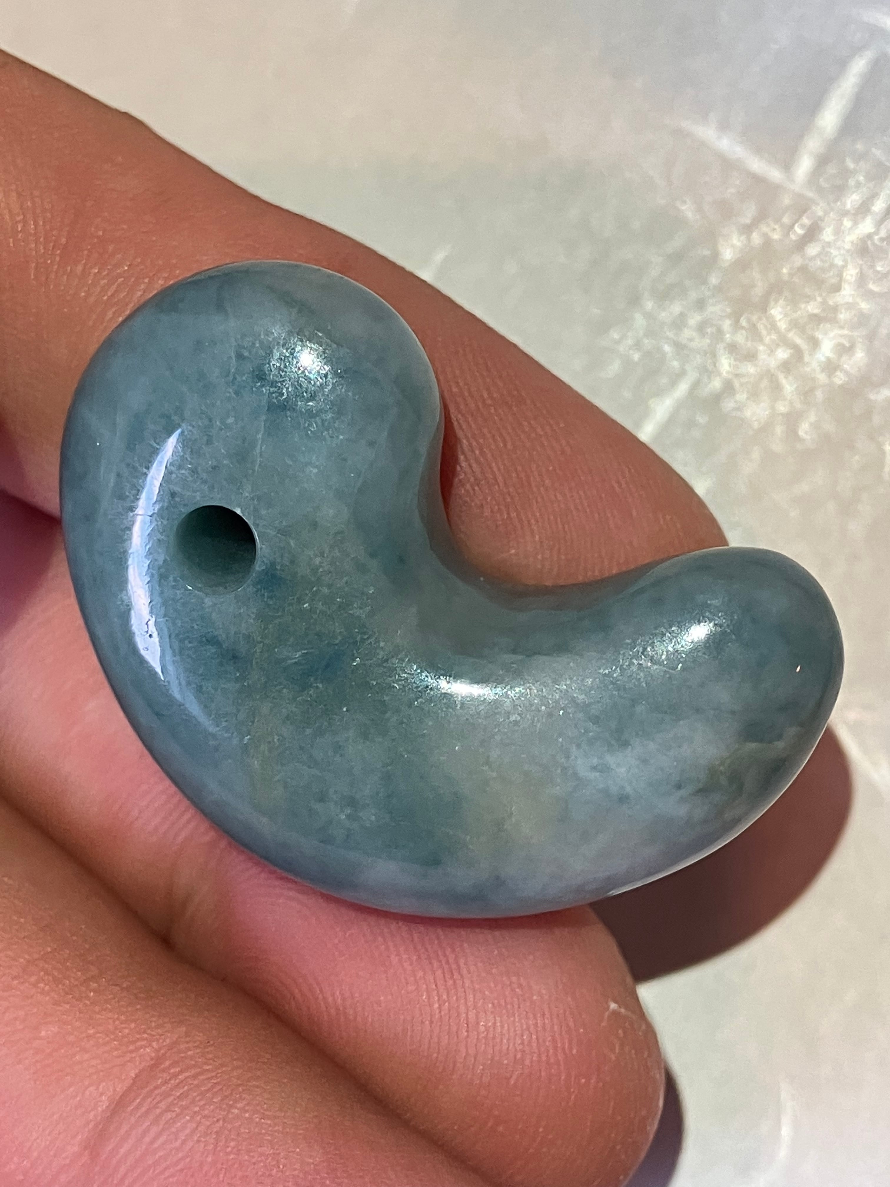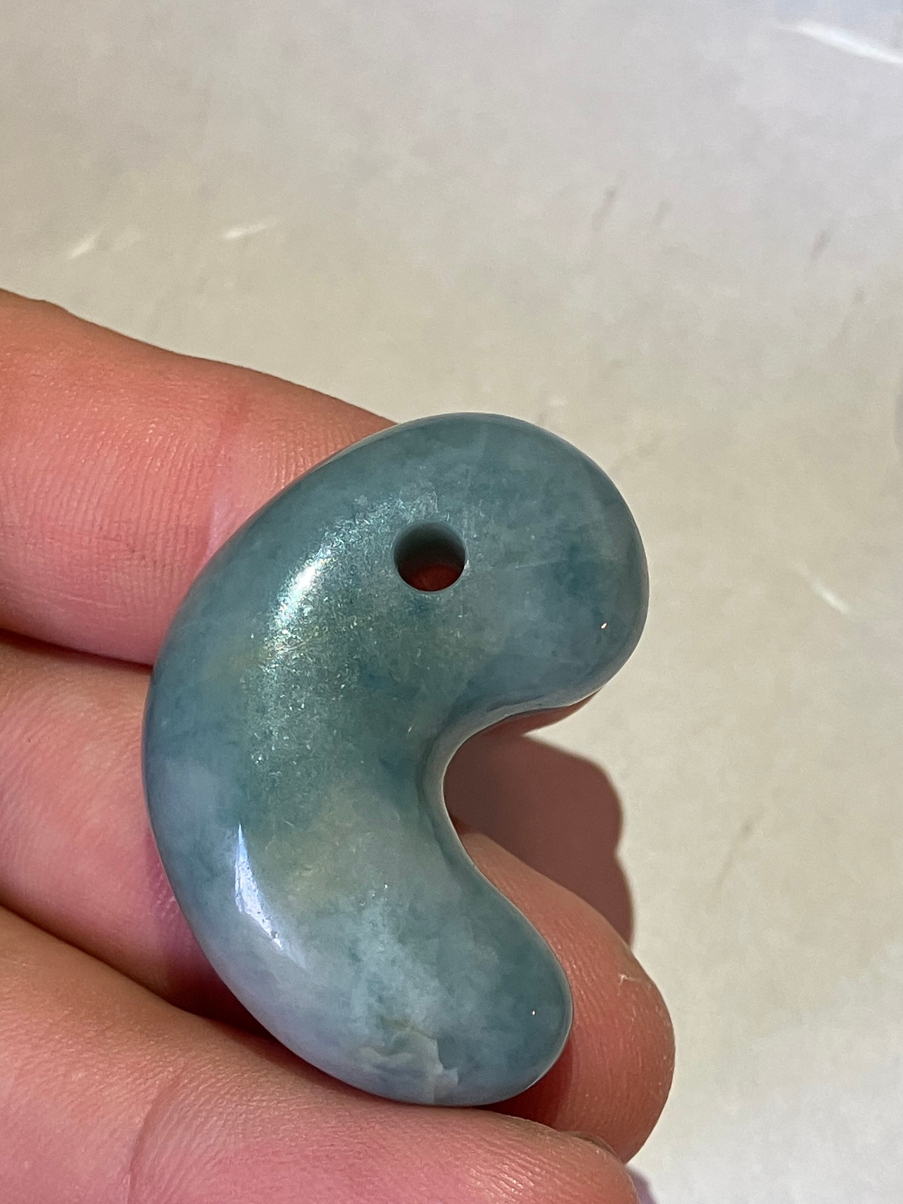 新潟県糸魚川市の入りコン沢産の青い翡翠で勾玉をつくりました。