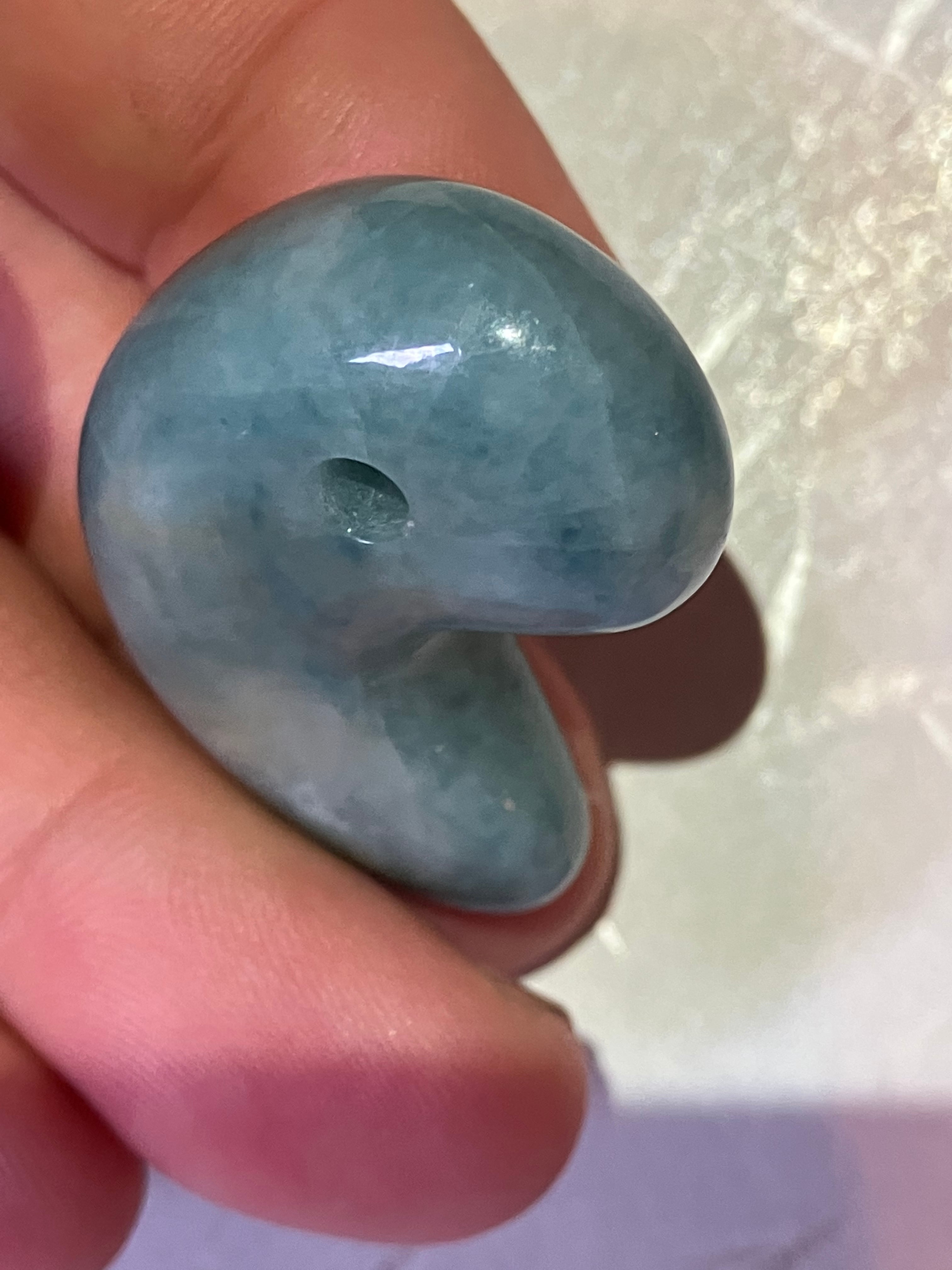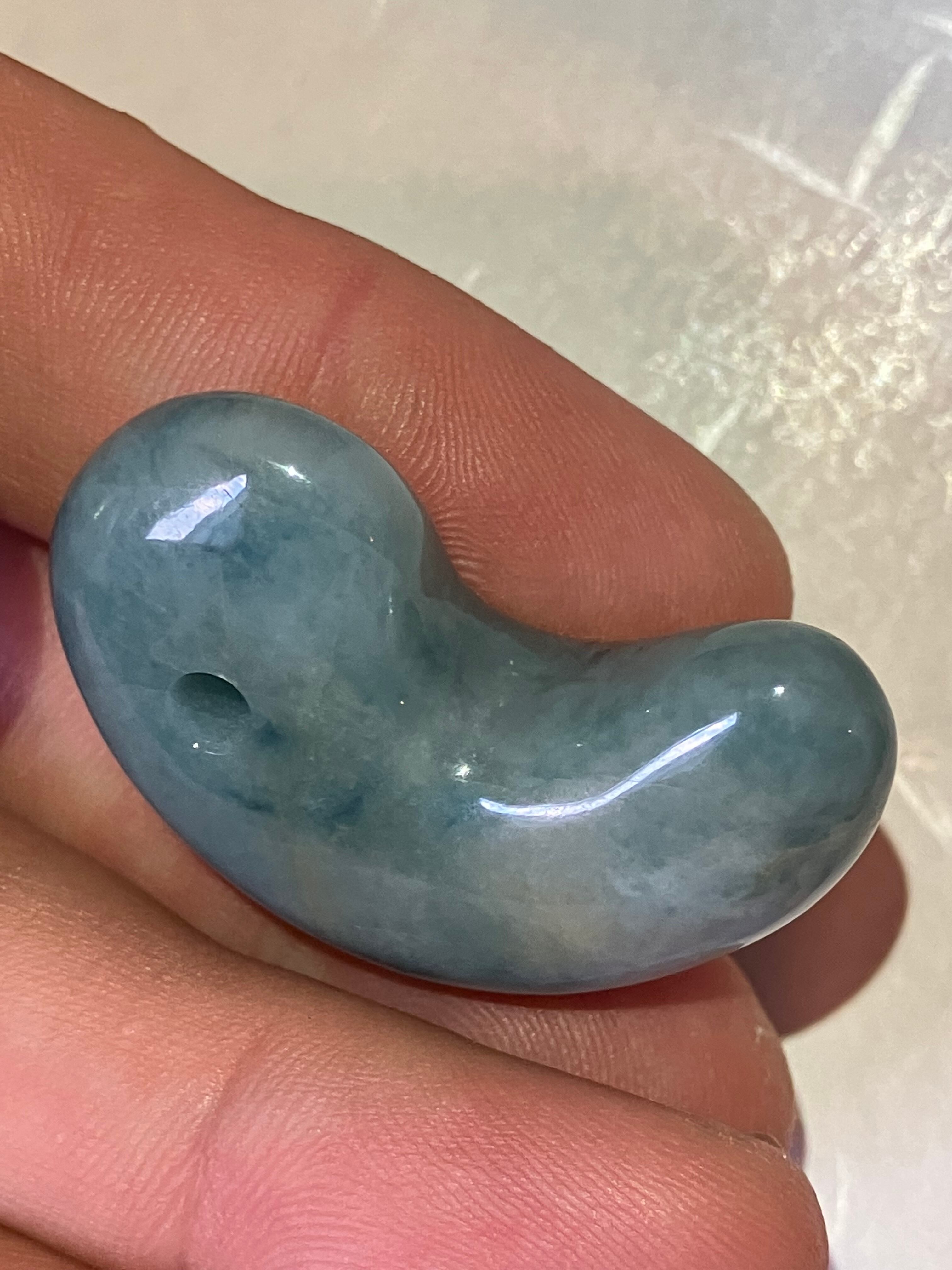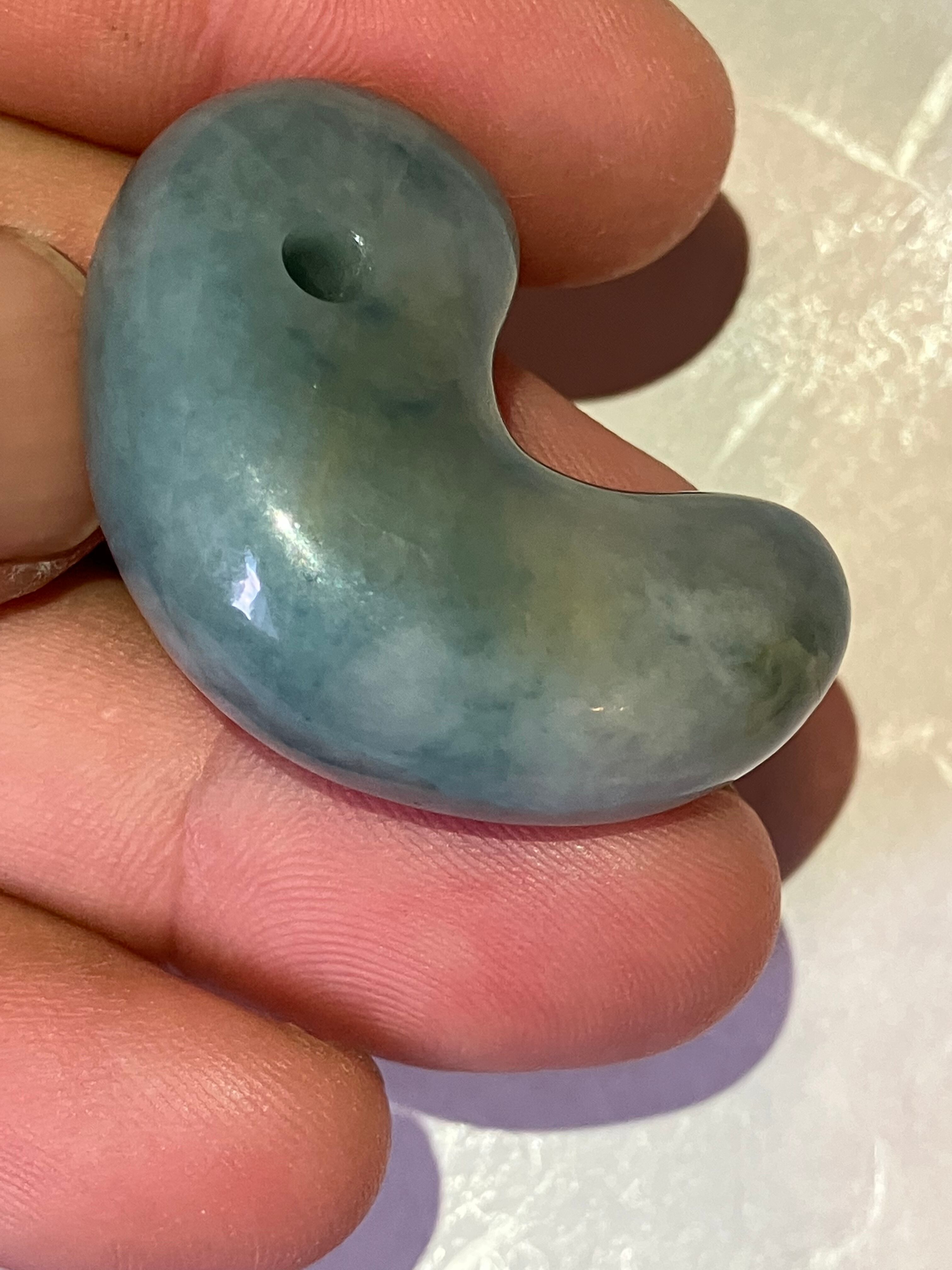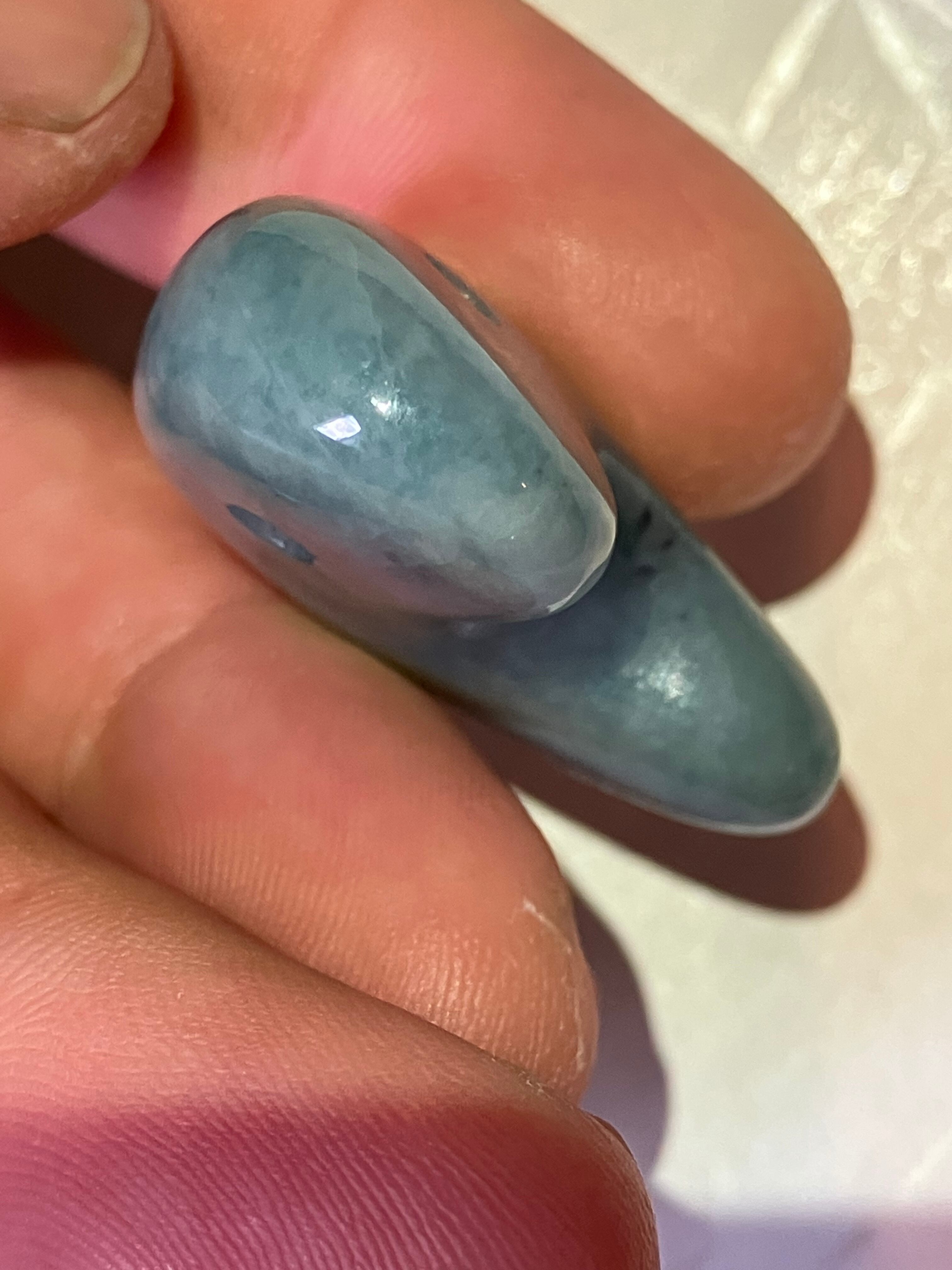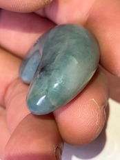 新潟県糸魚川市の入りコン沢産の青い翡翠で勾玉をつくりました。