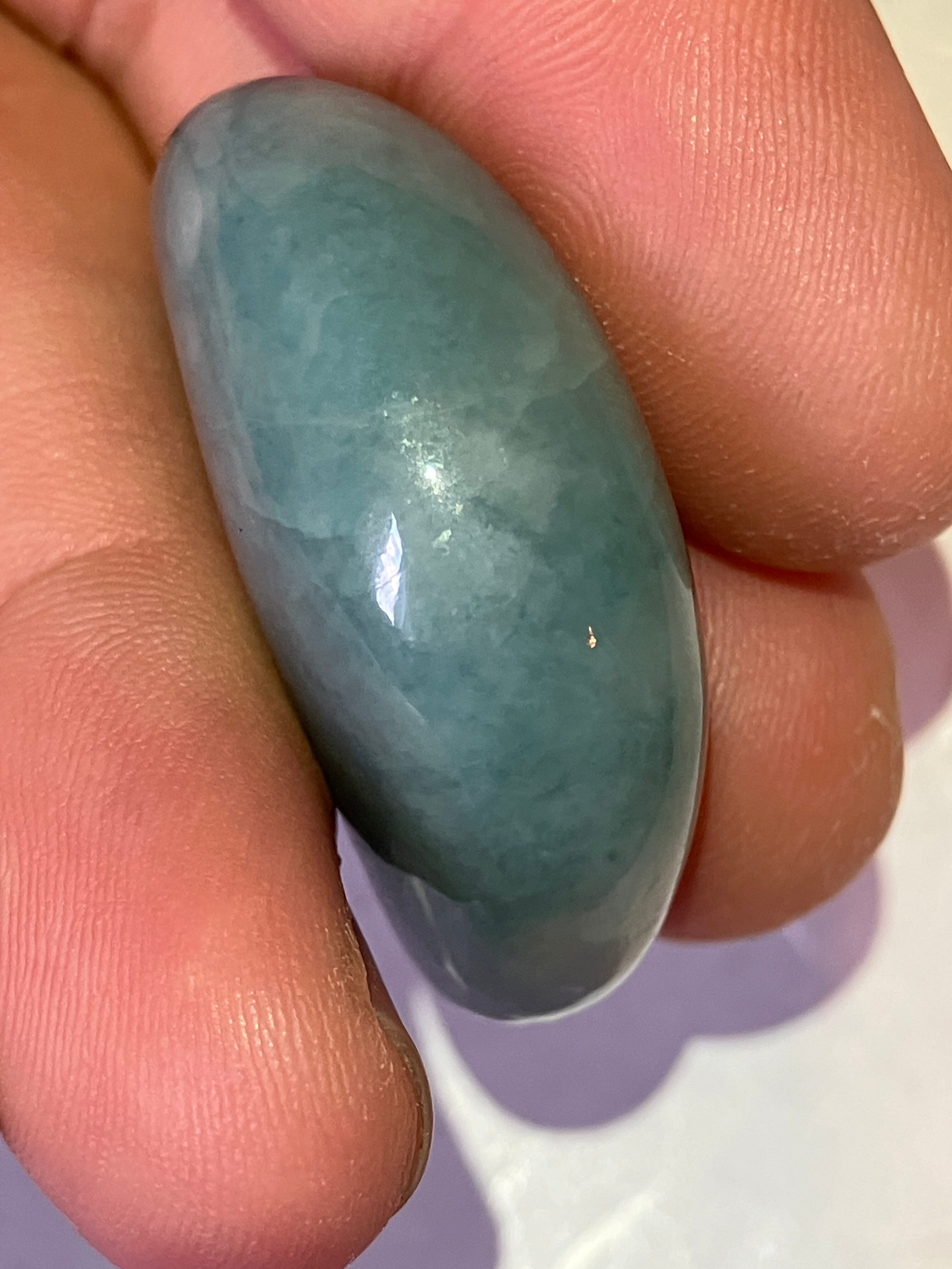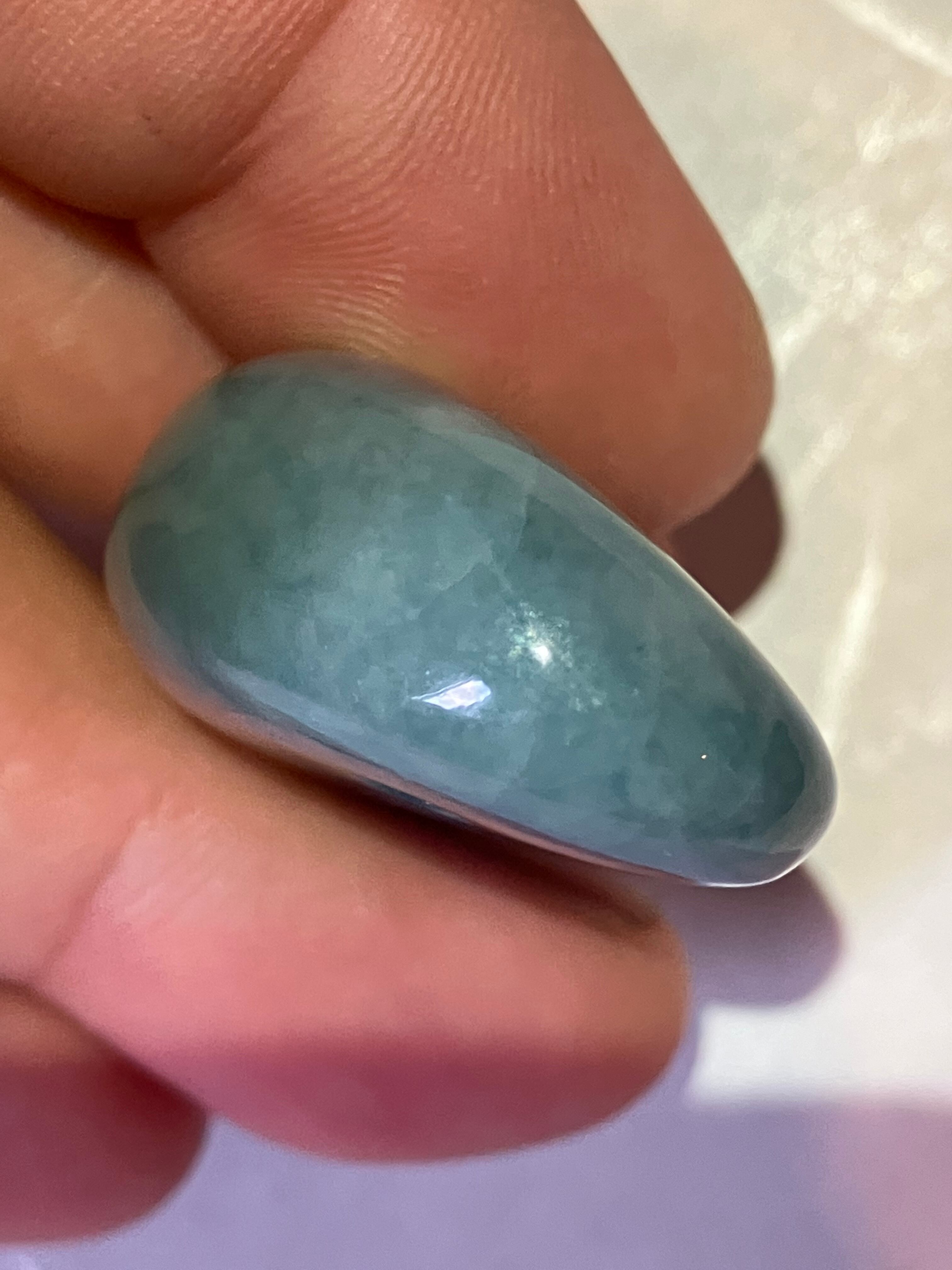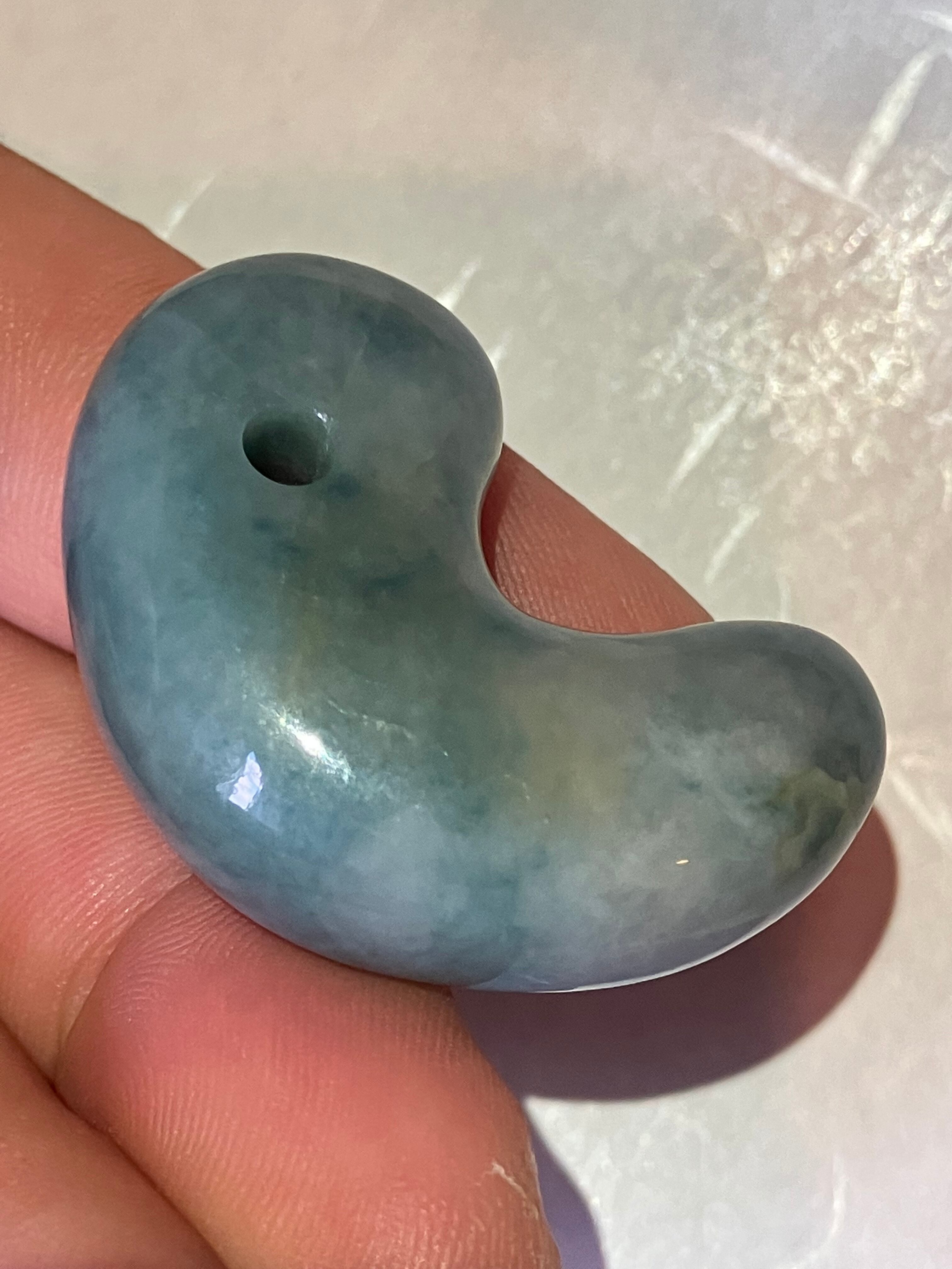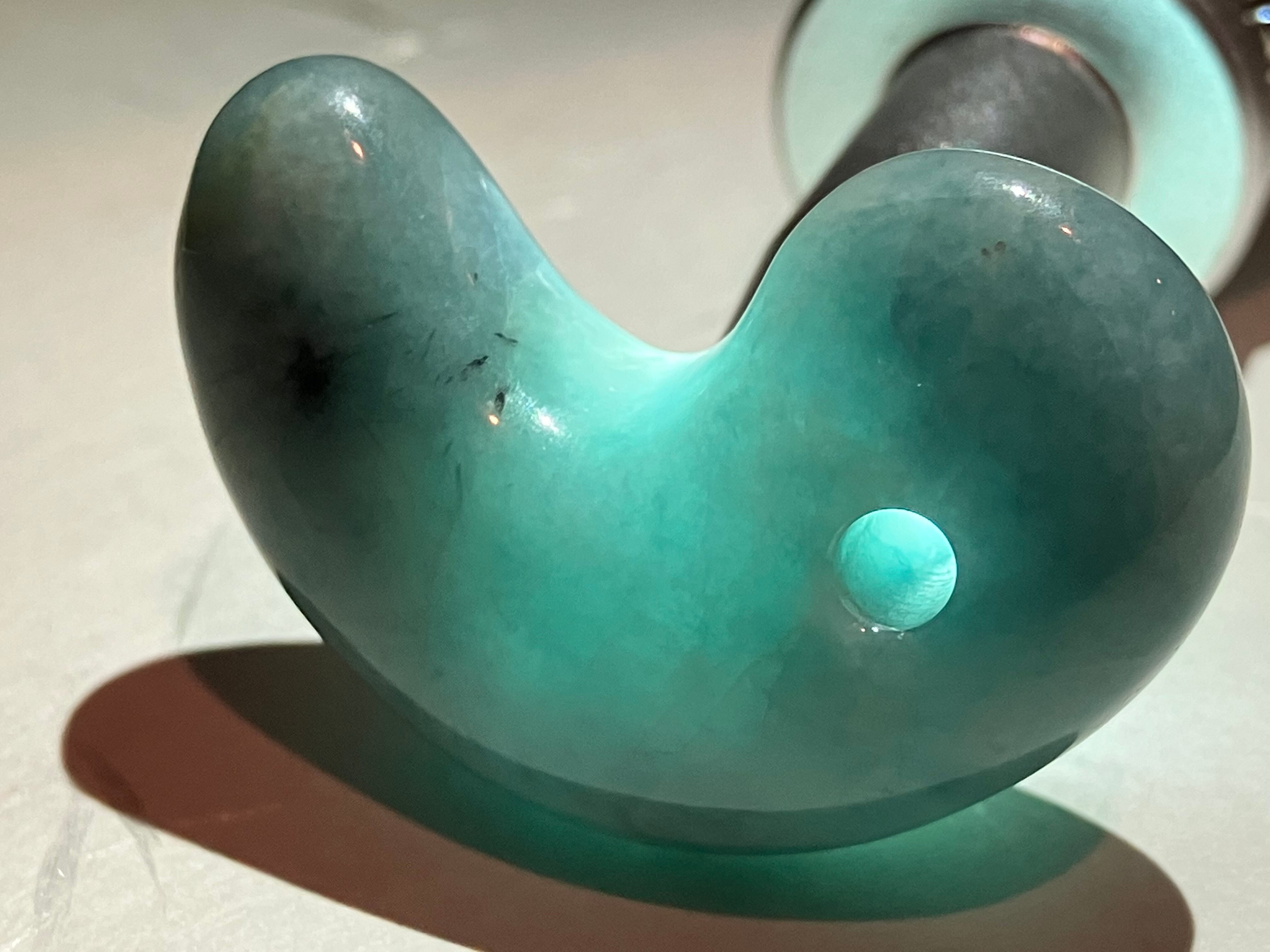 新潟県糸魚川市の入りコン沢産の青い翡翠で勾玉をつくりました。
