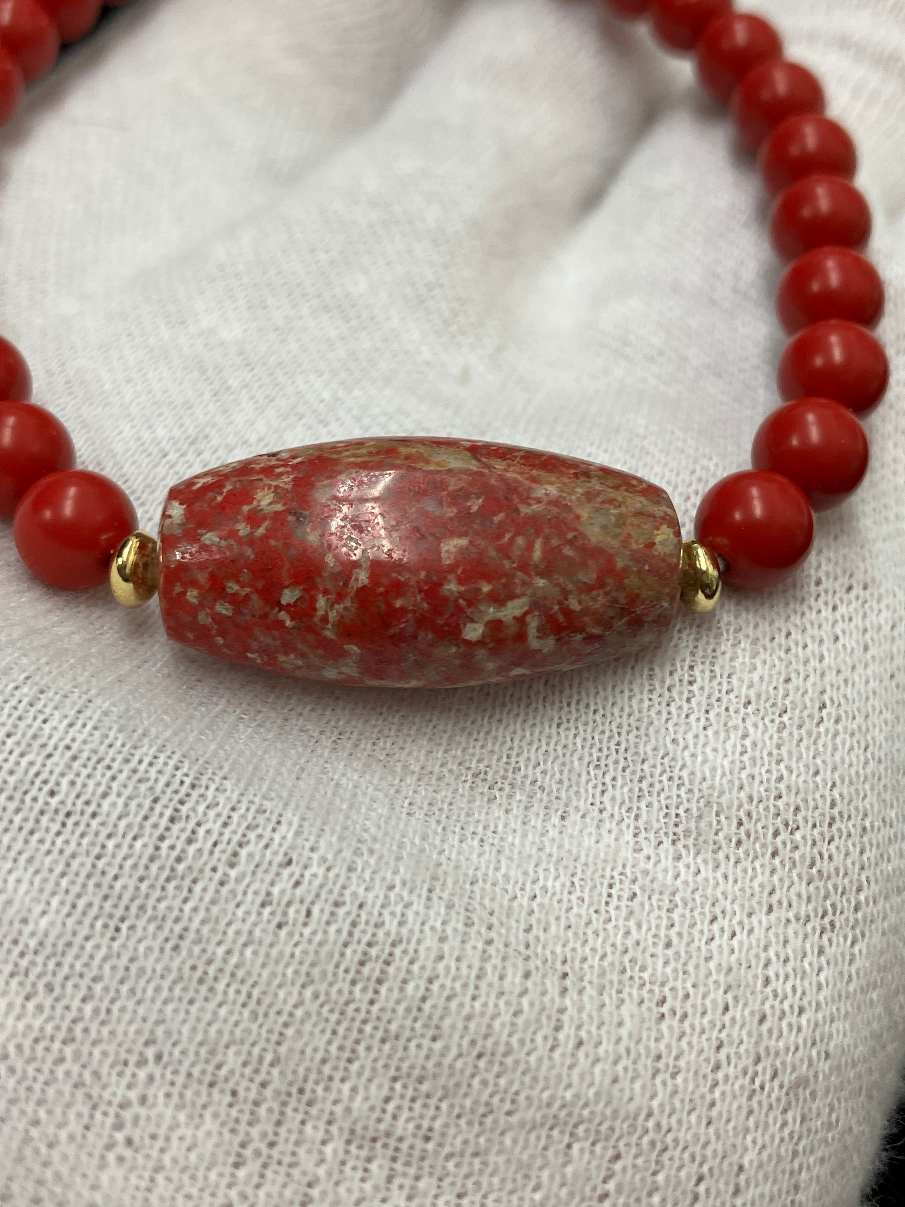 中国貴州省産の辰砂の練りビーズ6㍉玉を使ってブレスレットにしました。ブレスレットの内周は約17cmとなります。(調整可能)