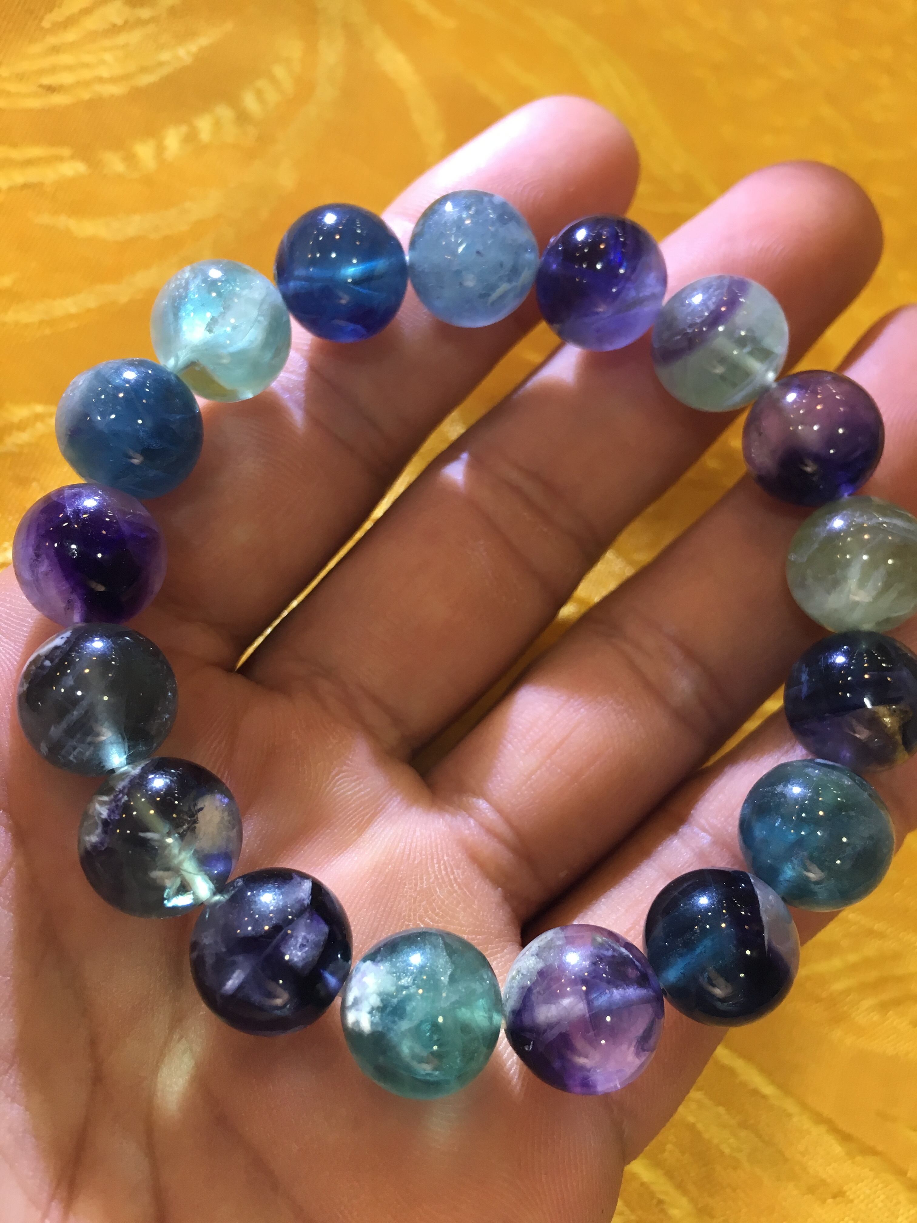石花と呼ばれる天使の羽根の様なインクルージョンを持つ、フローライトのブレスレットです。