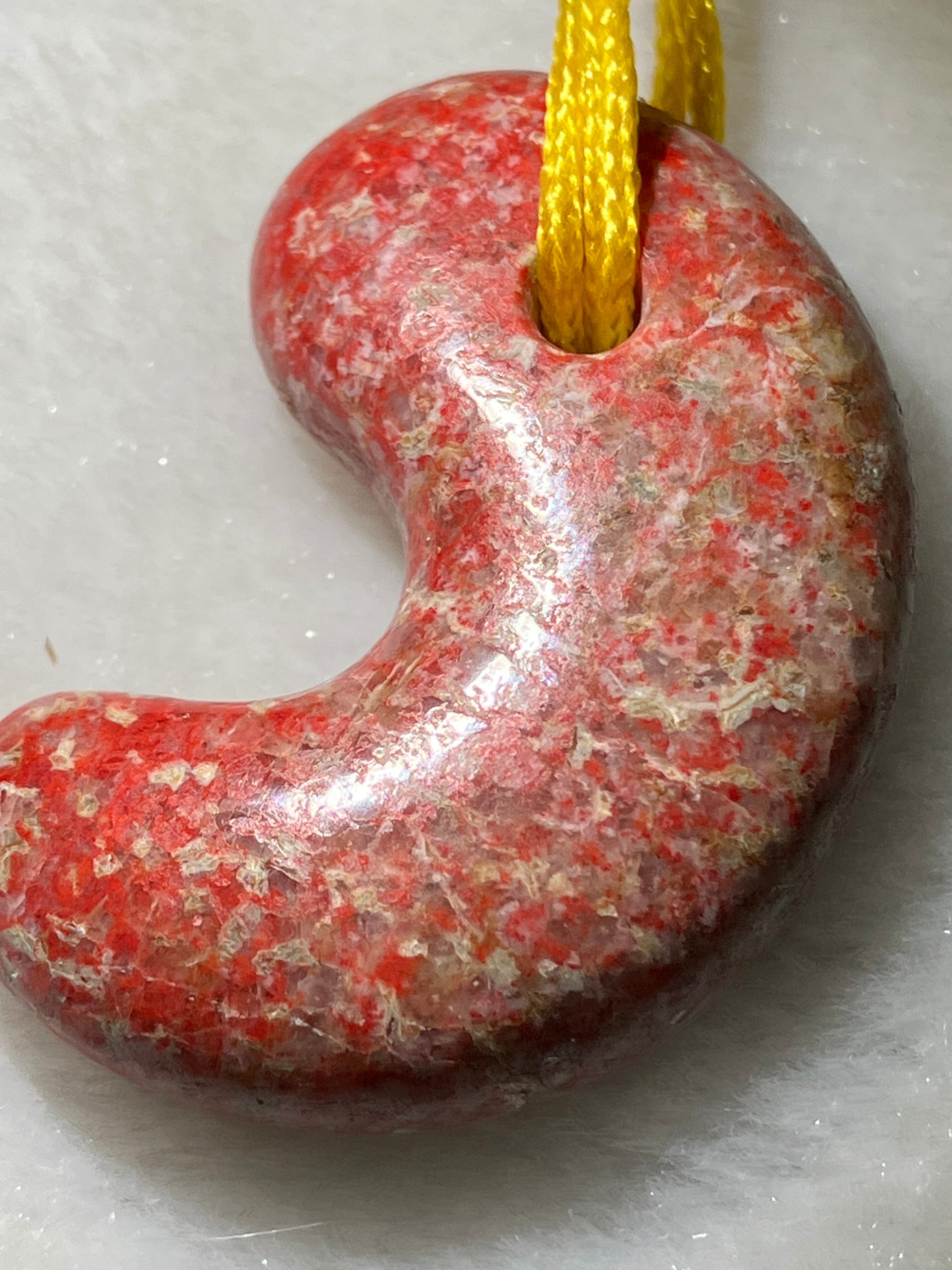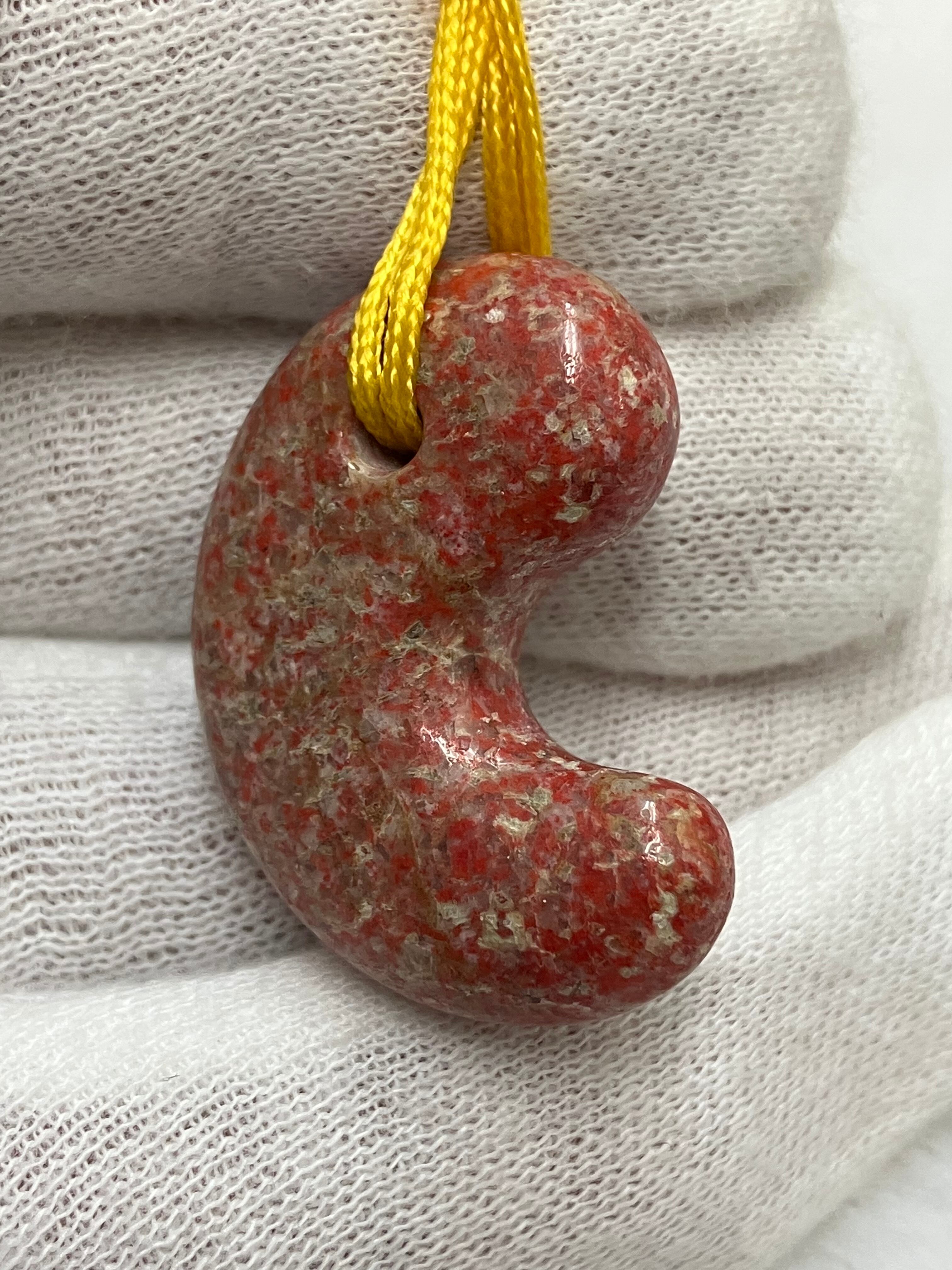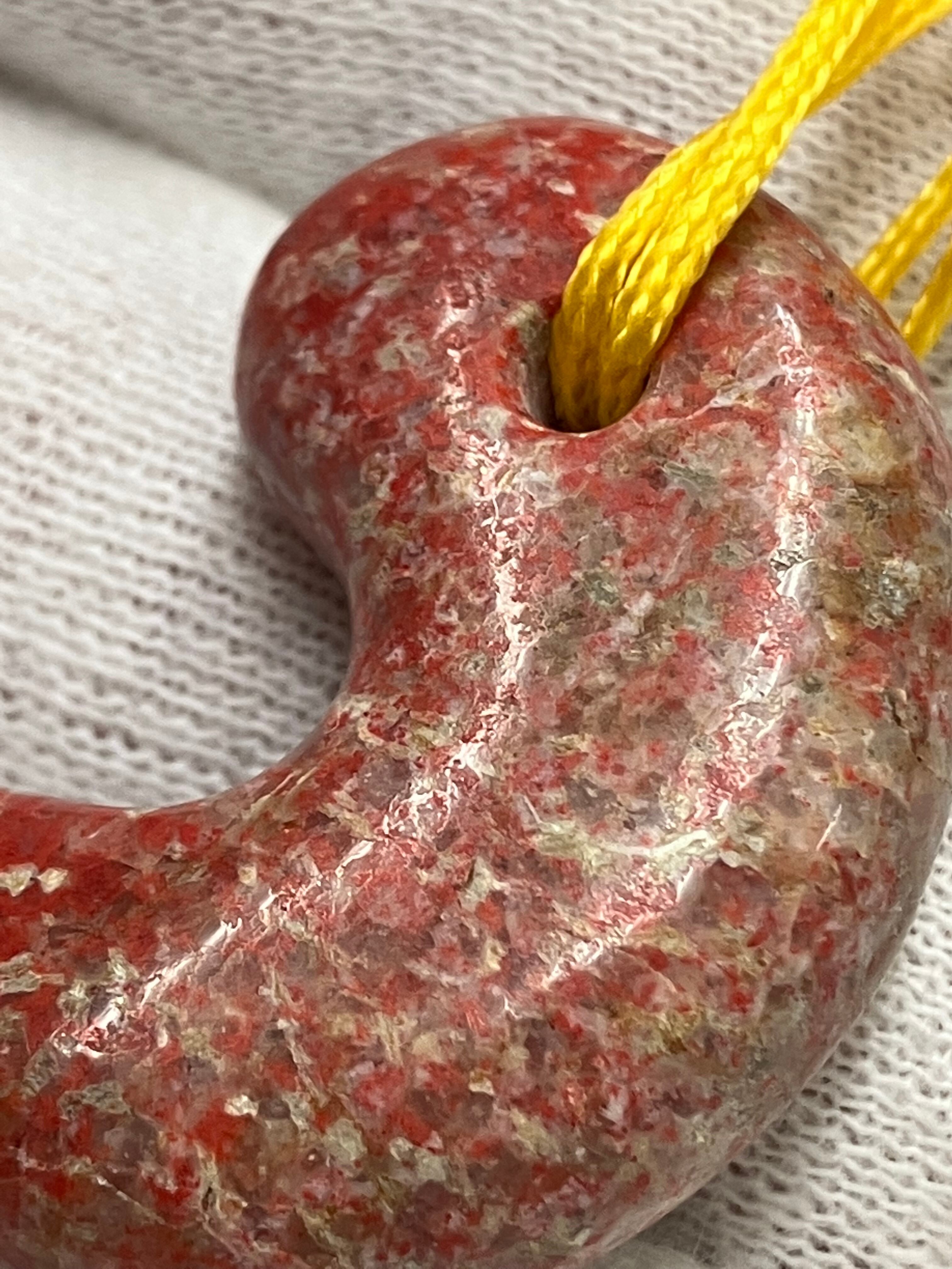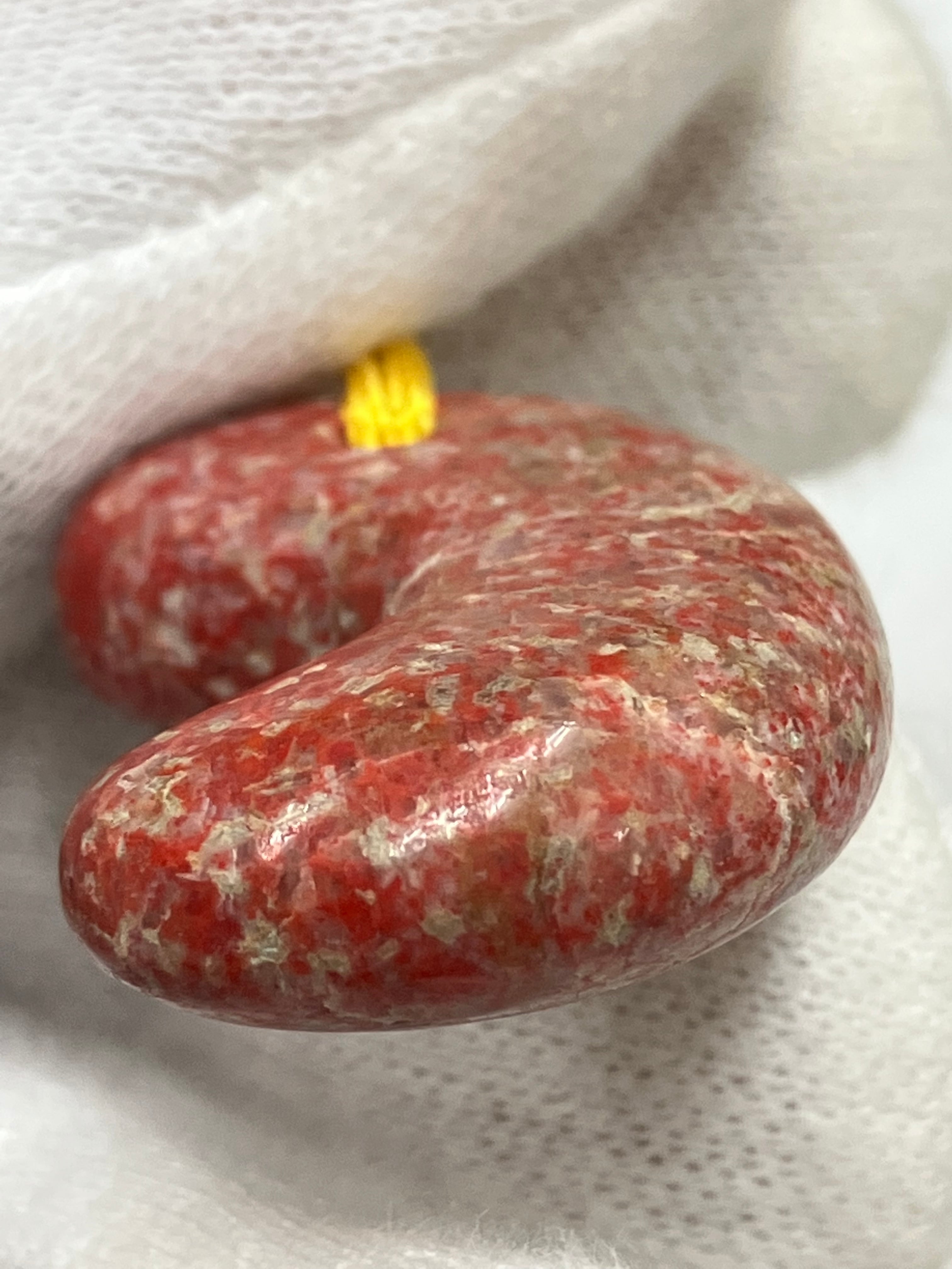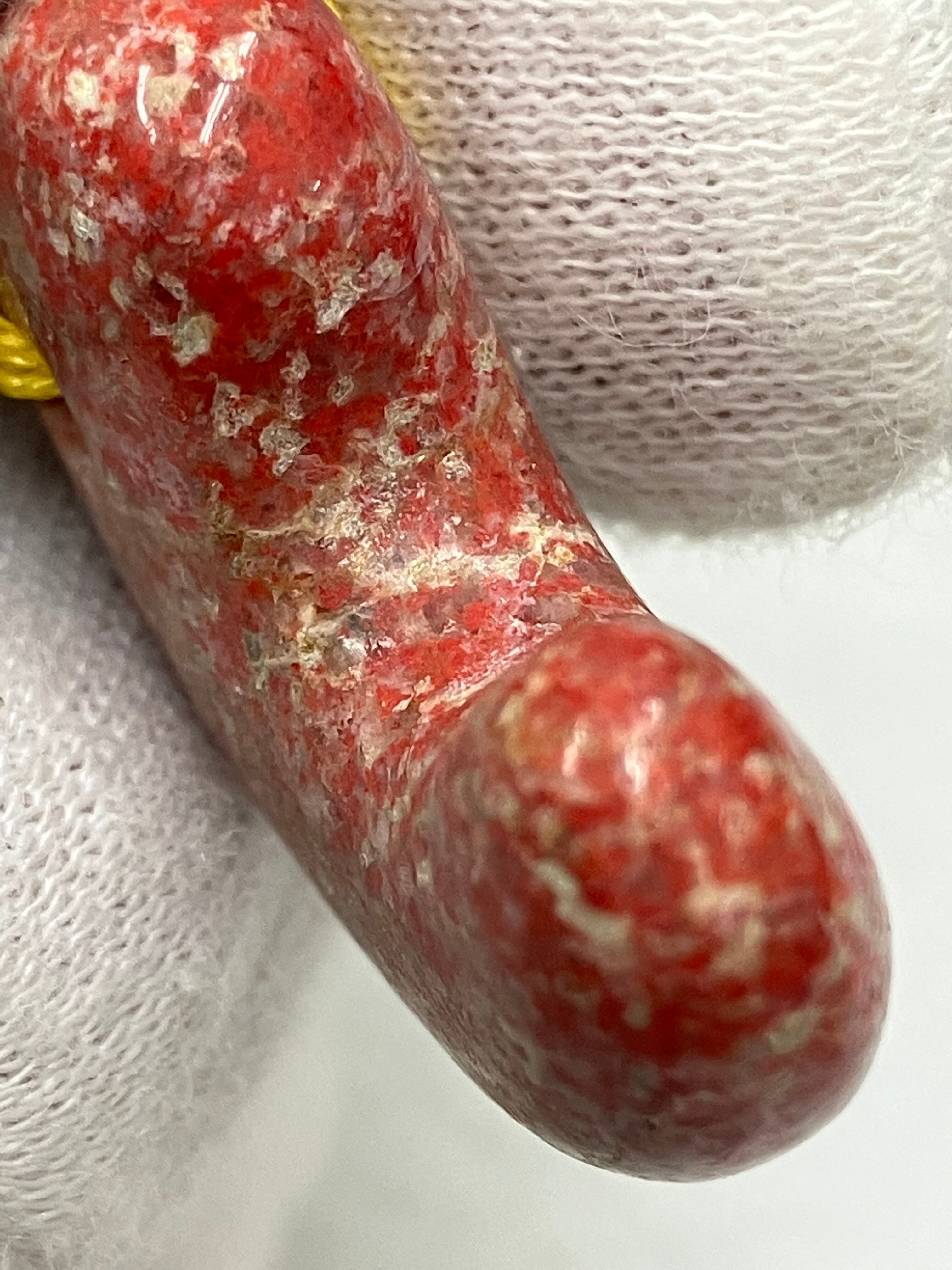 母岩に辰砂が含まれるマトリクスタイプですので、辰砂だけの勾玉より少し軽いです。