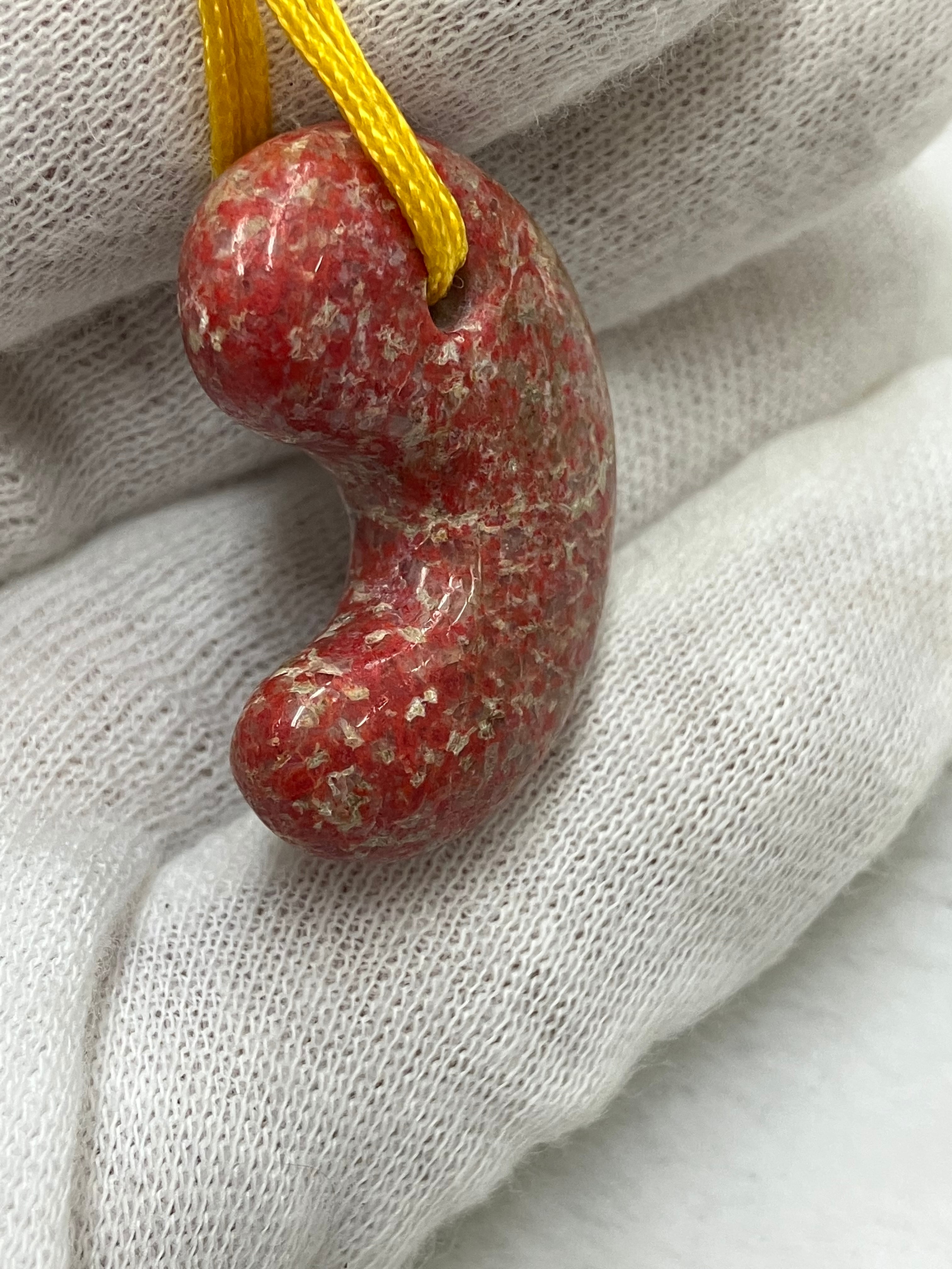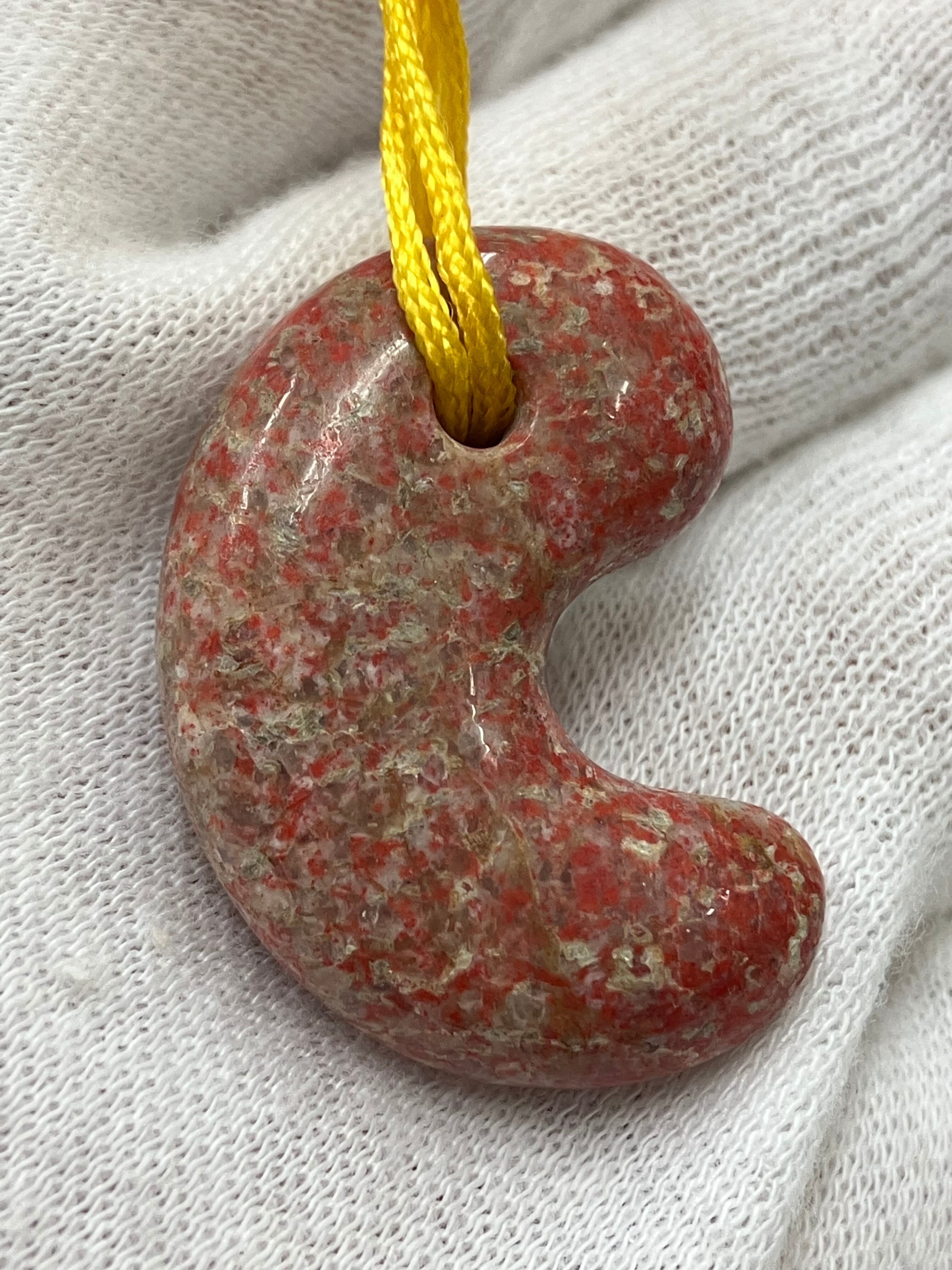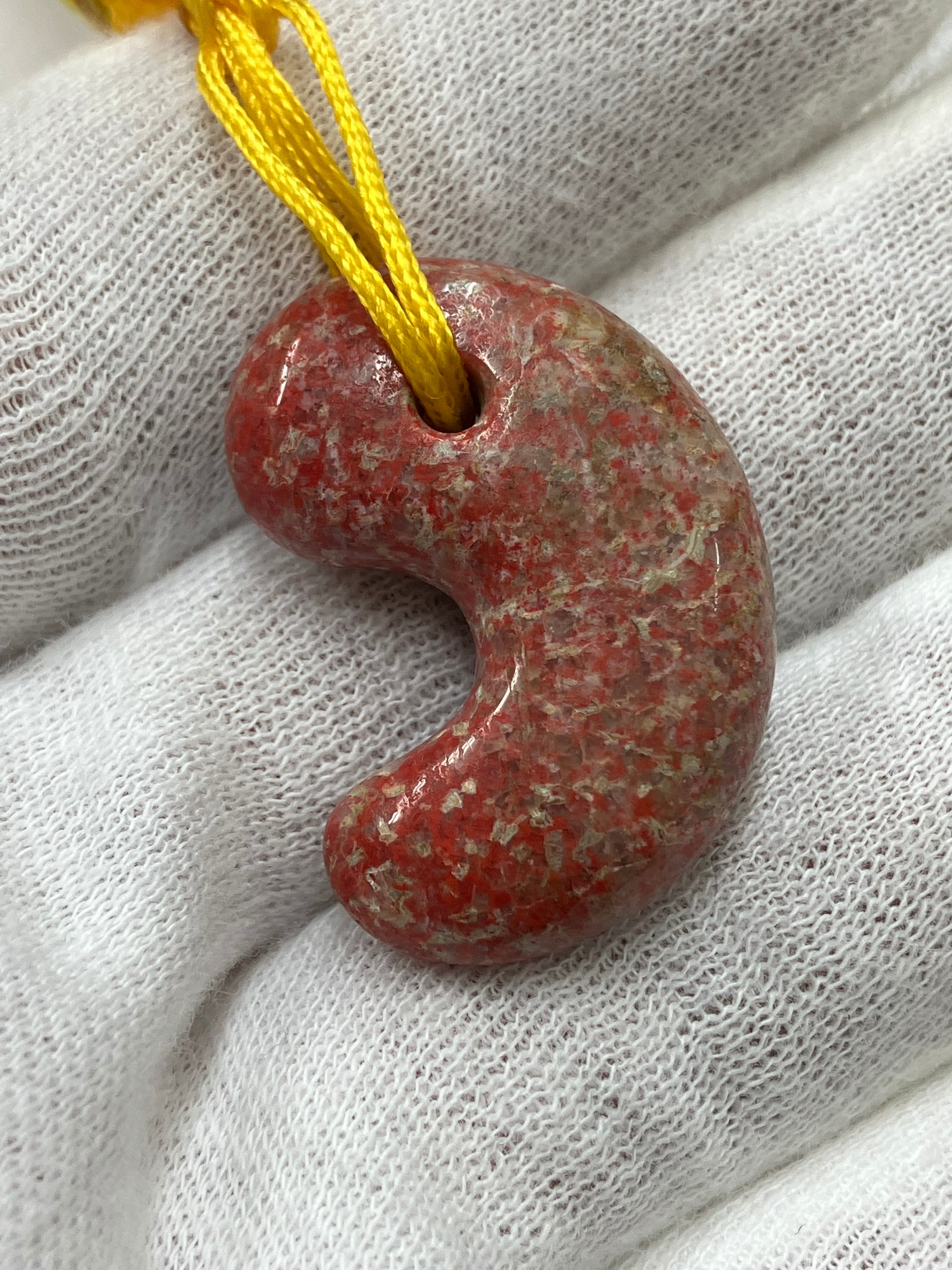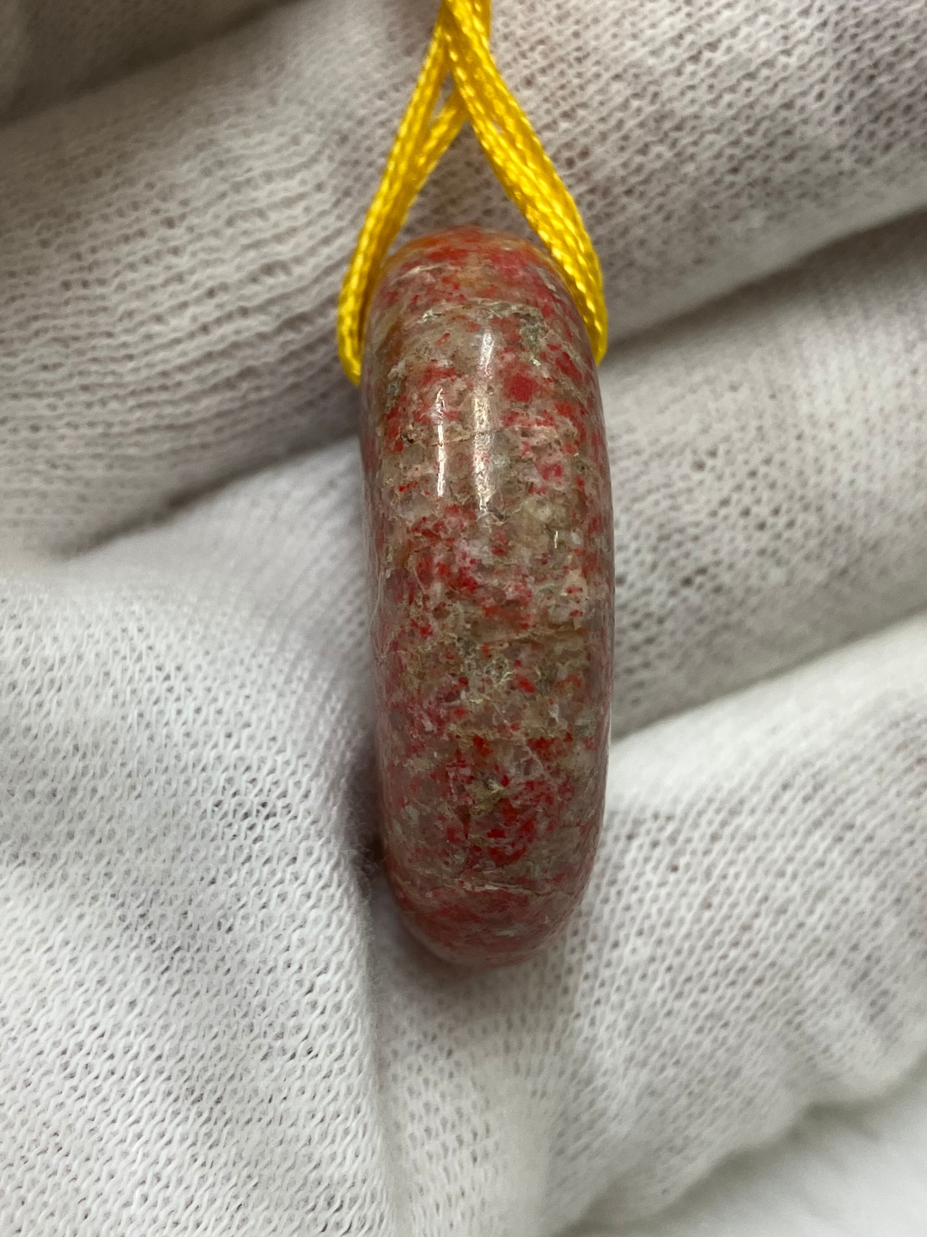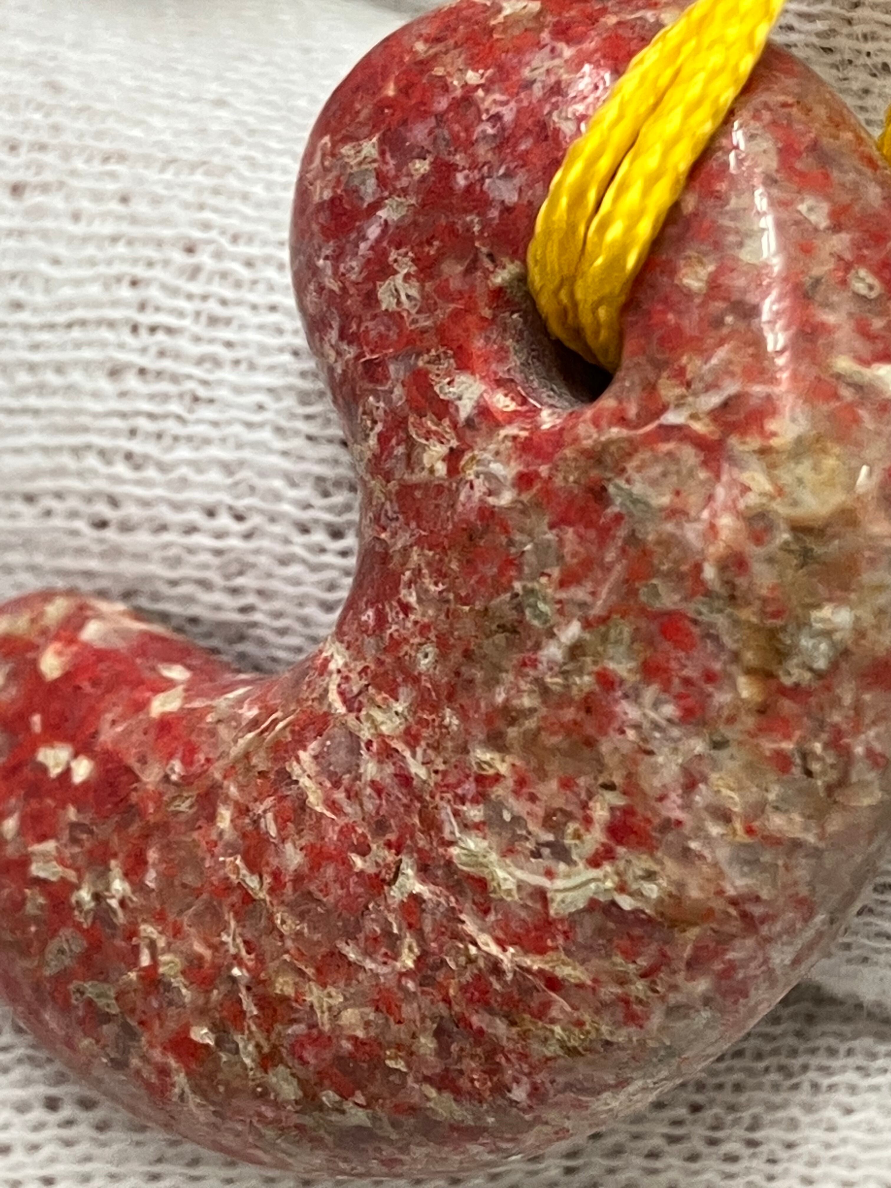 母岩に辰砂が含まれるマトリクスタイプですので、辰砂だけの勾玉より少し軽いです。