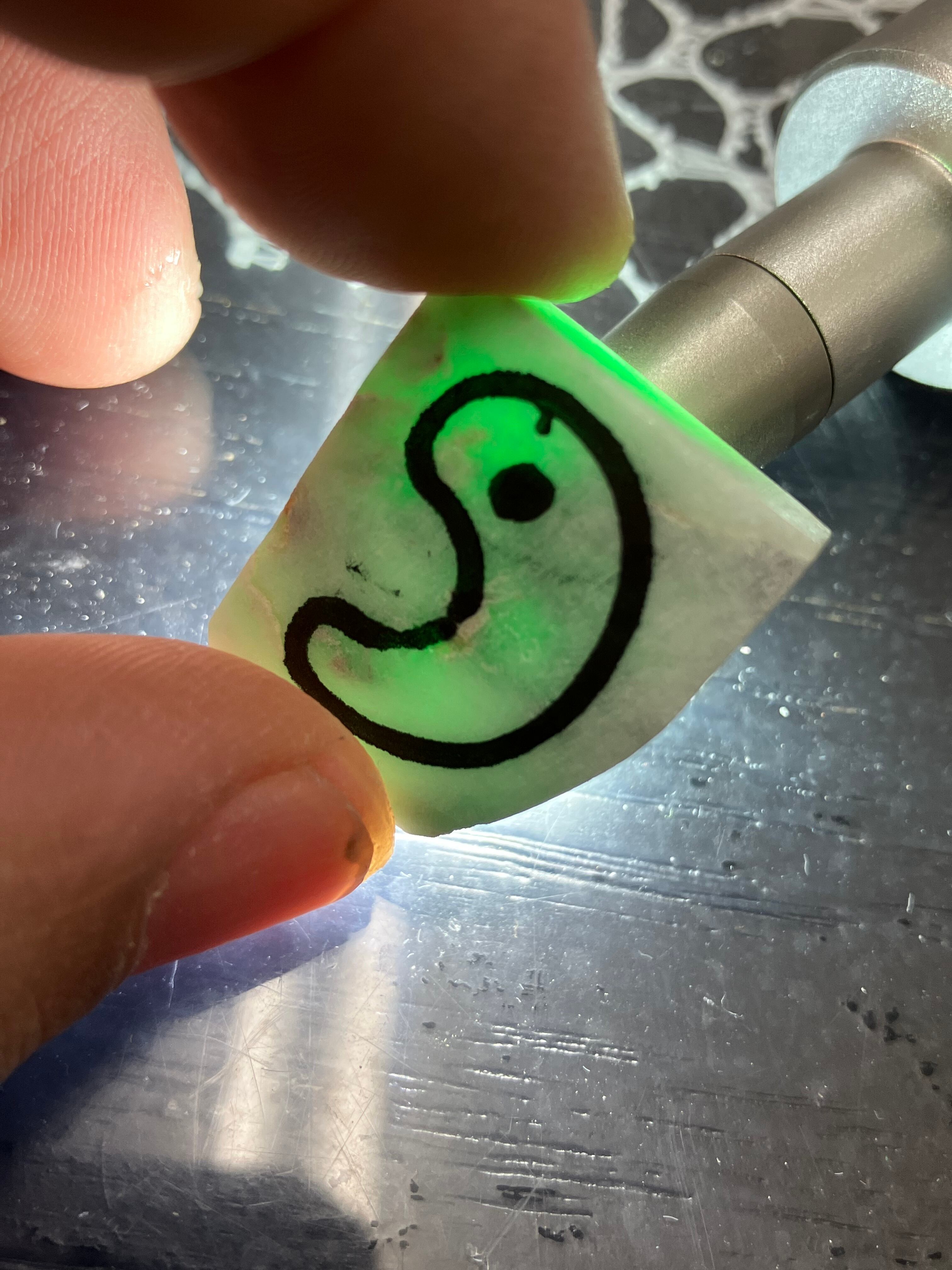 石目(クラック)を可能な限り取り除いて行きました結果、小さい勾玉になりました。