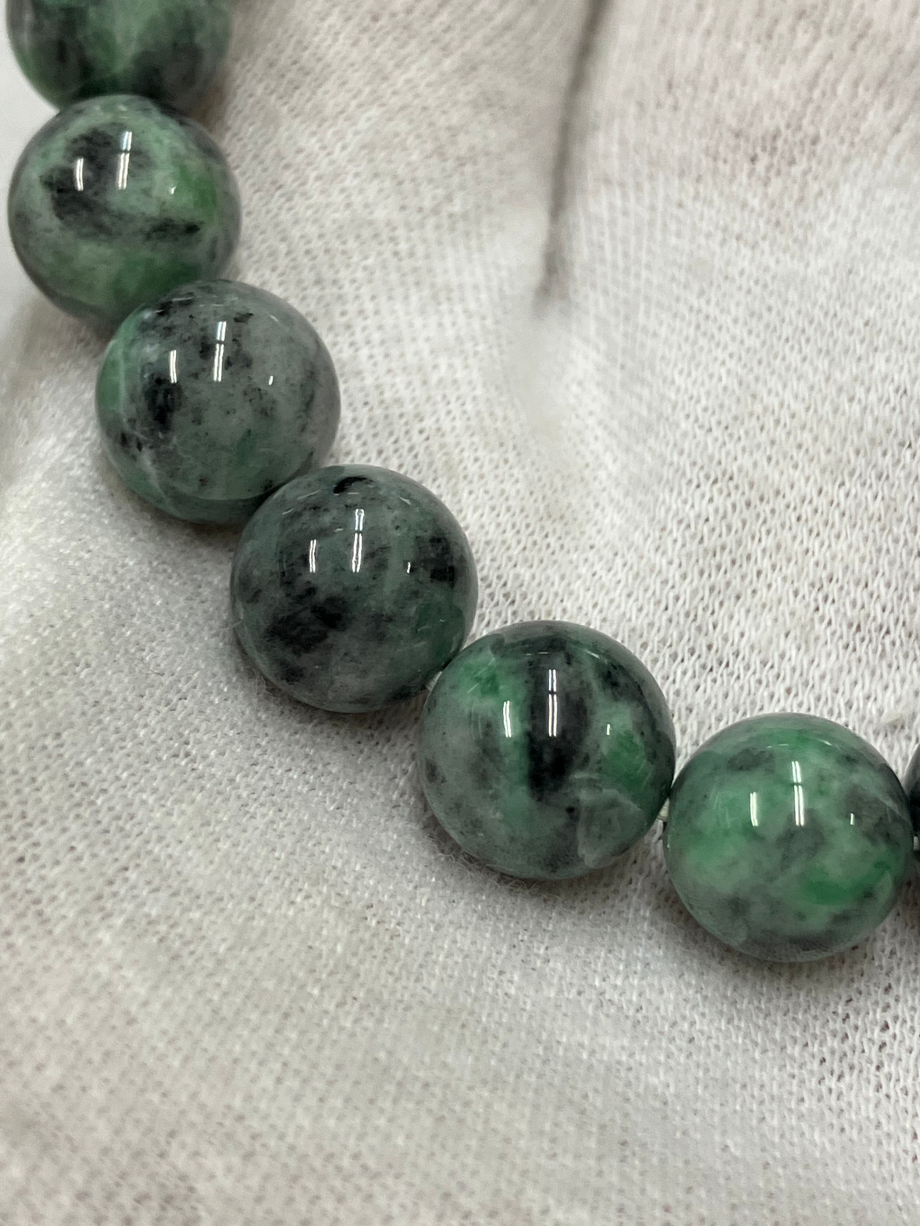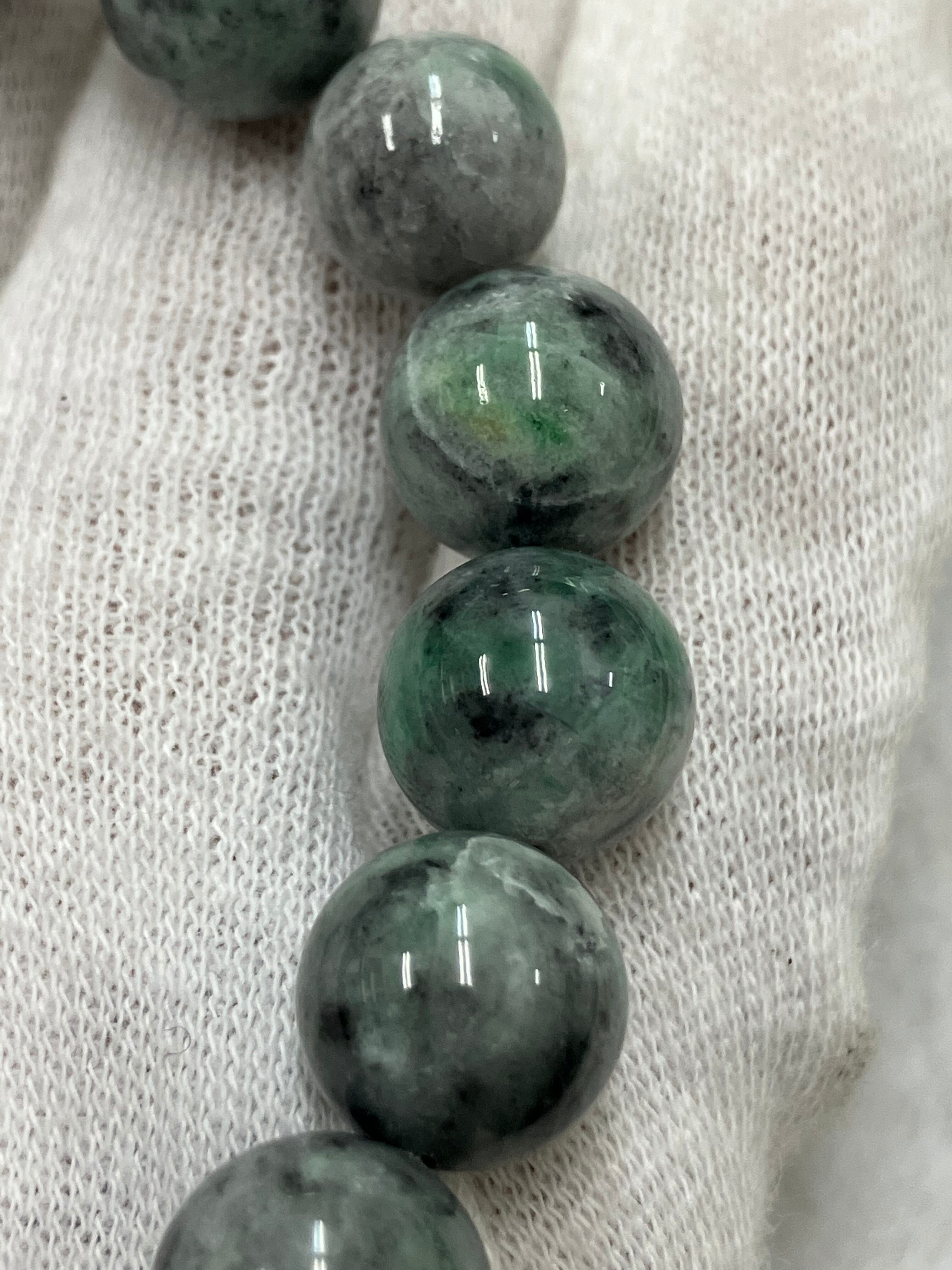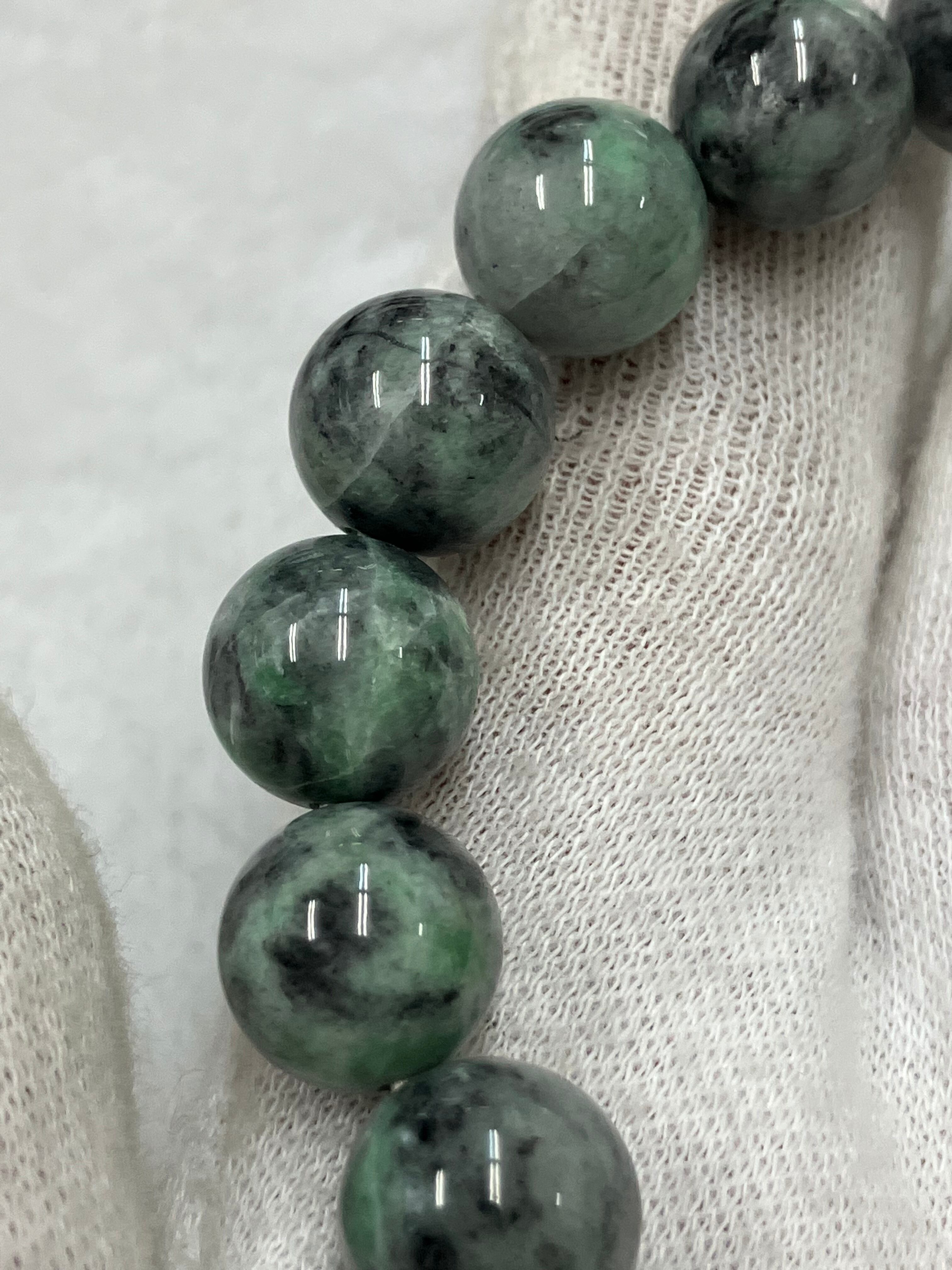 国産)糸魚川翡翠「黒緑」10㍉内周17.5㌢20玉