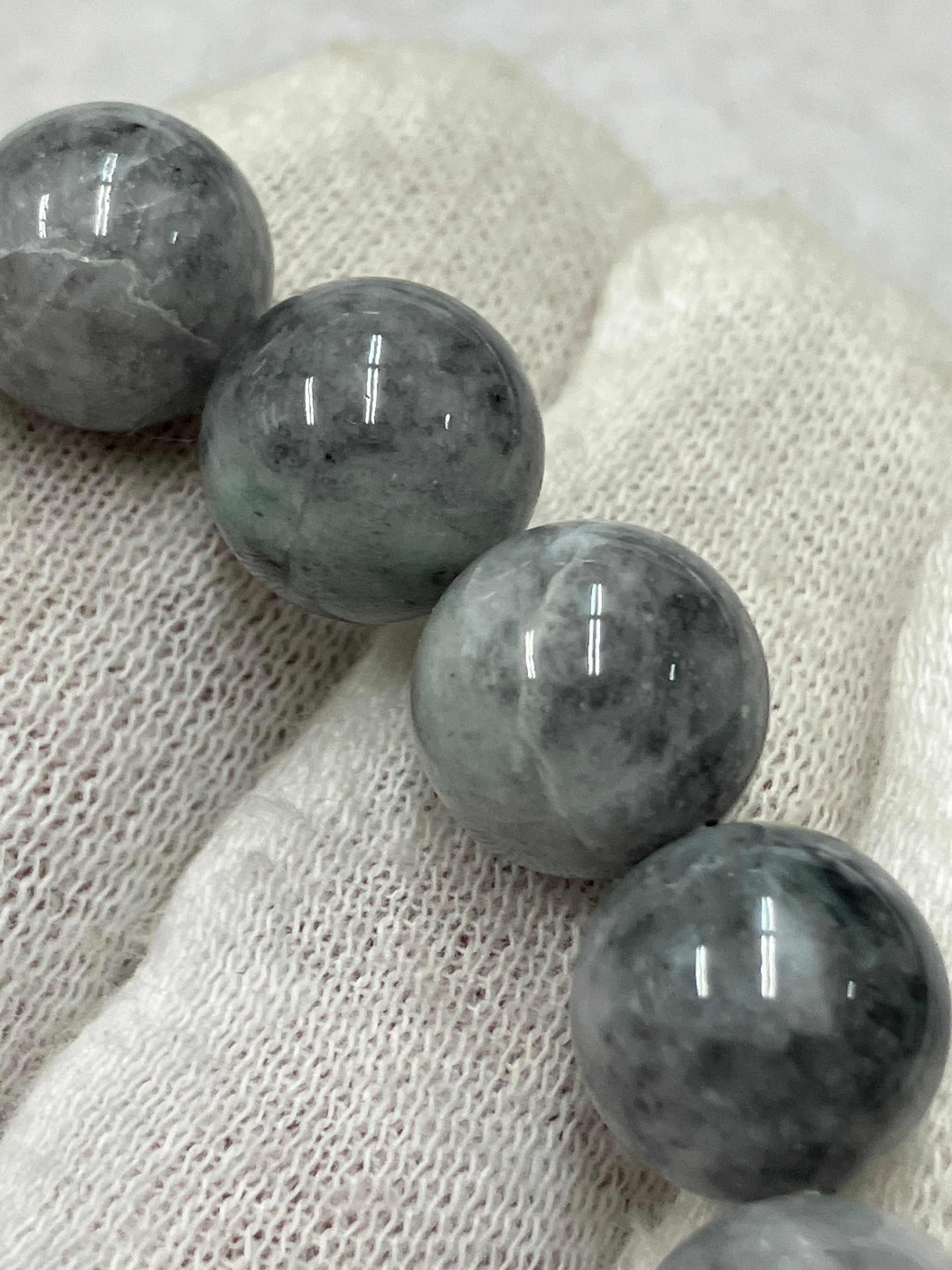 国産)糸魚川翡翠「白黒」10㍉内周17.5㌢20玉