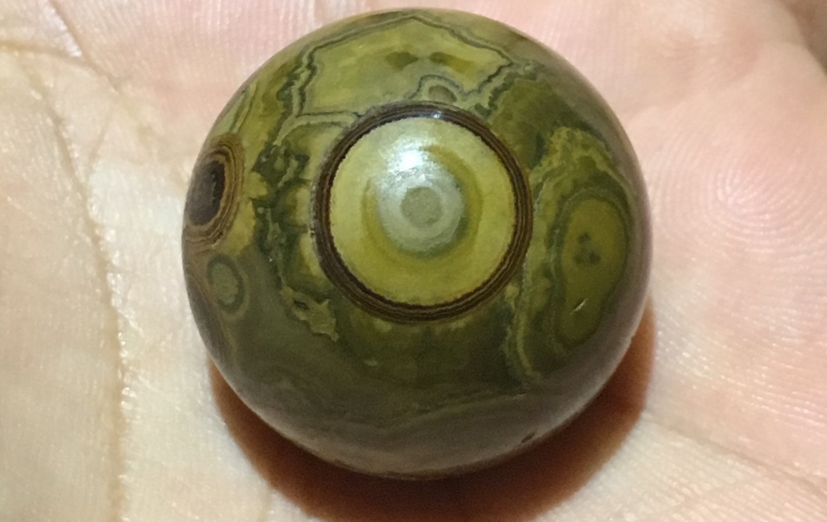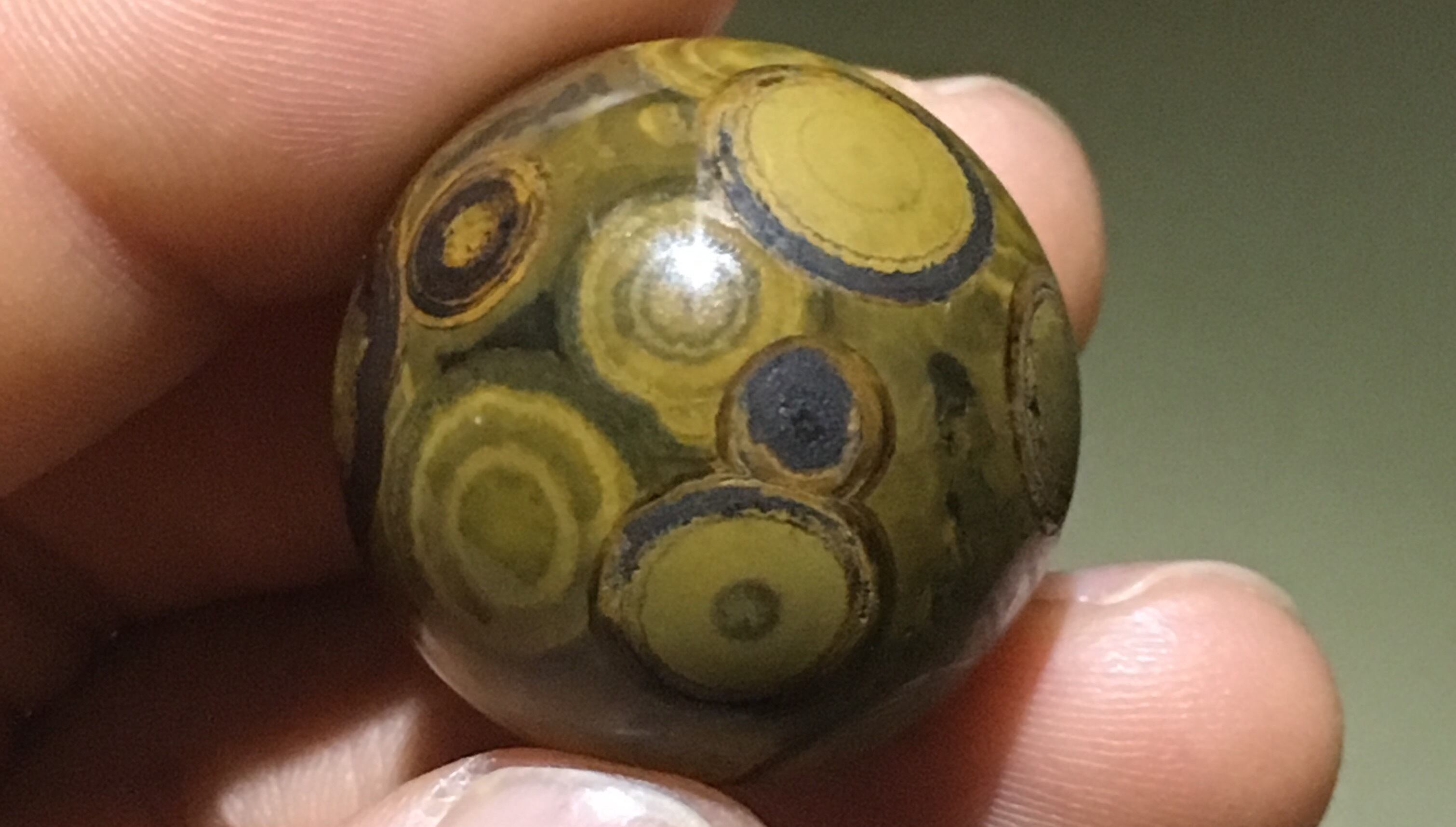 最も初期の天珠は巻貝(法螺貝)の化石から作られていたそうです。その後、瑪瑙や玉といった素材が好まれ、主に「天眼」と呼ばれる「避邪(ヒジャ)」の目の模様を好んで探していたそうです。