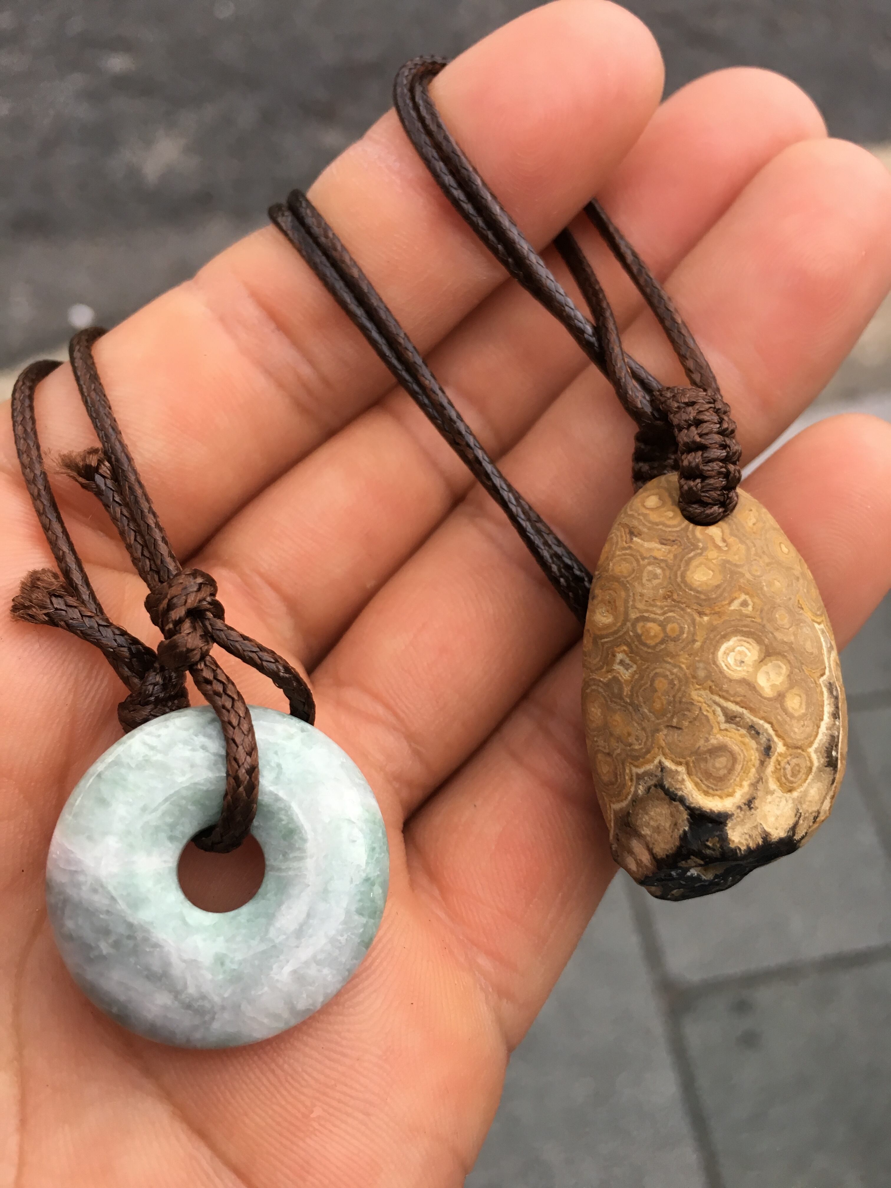 蒙天珠(モウテンジュ)と糸魚川翡翠Pディスクペンダント