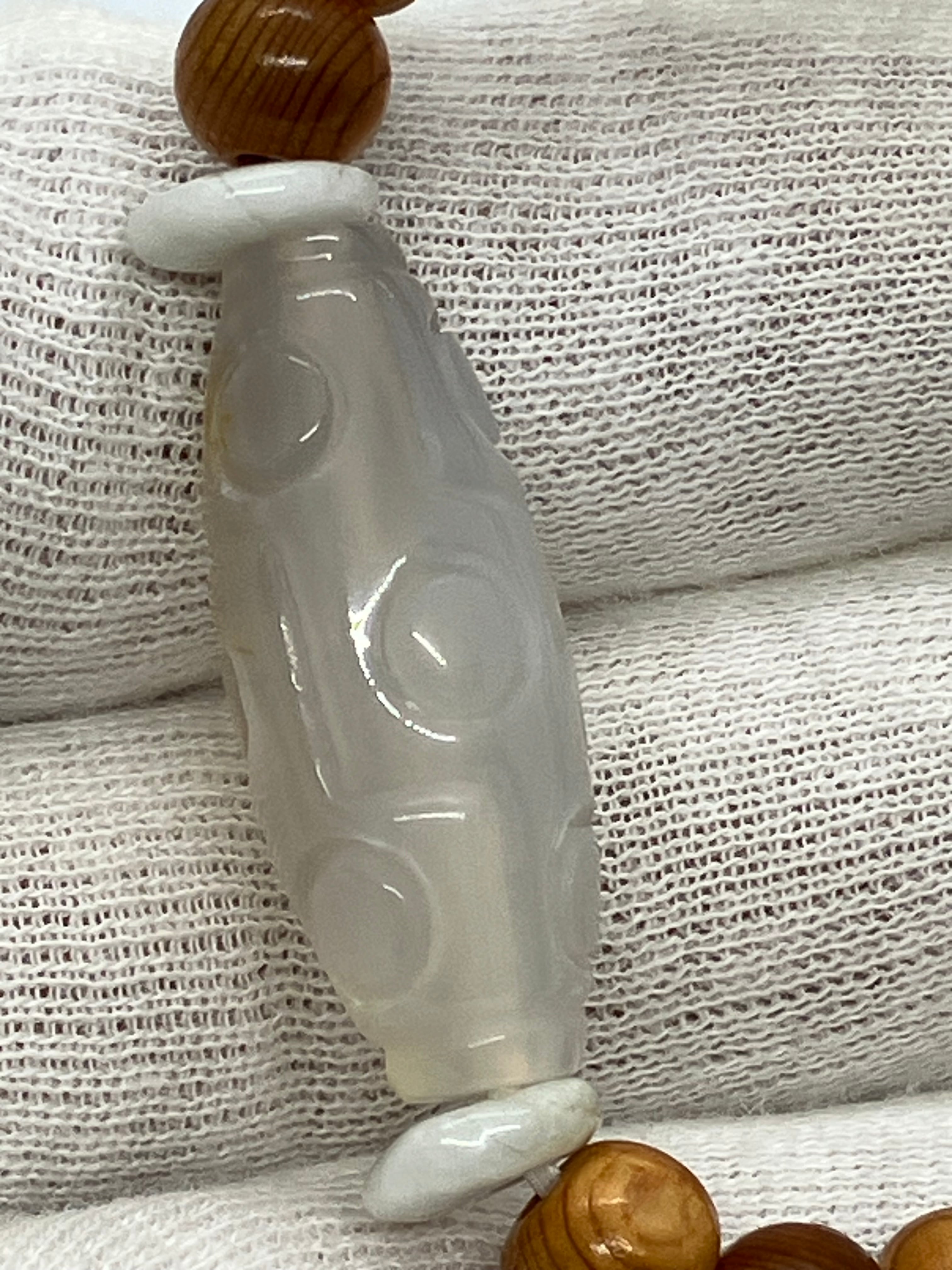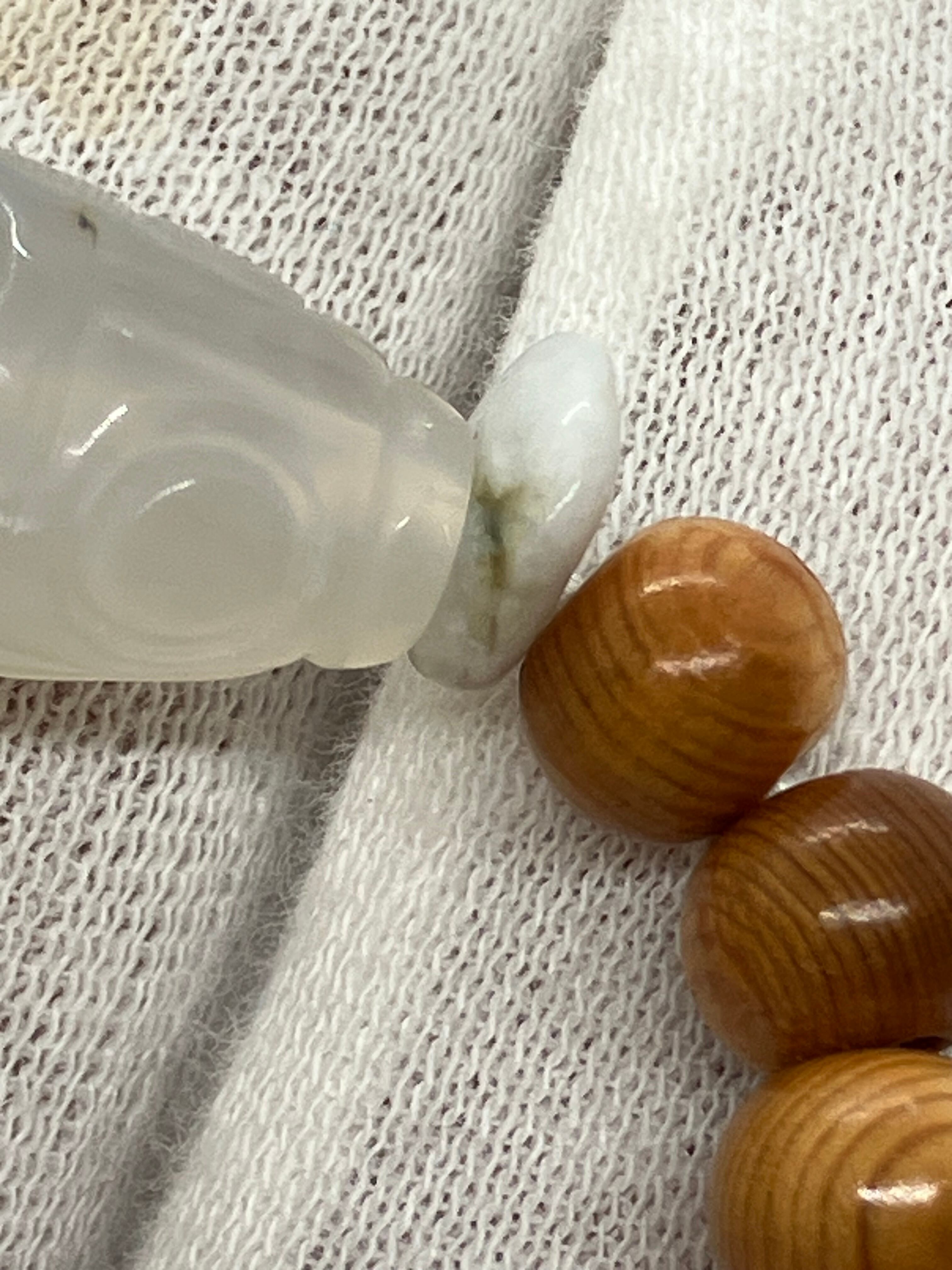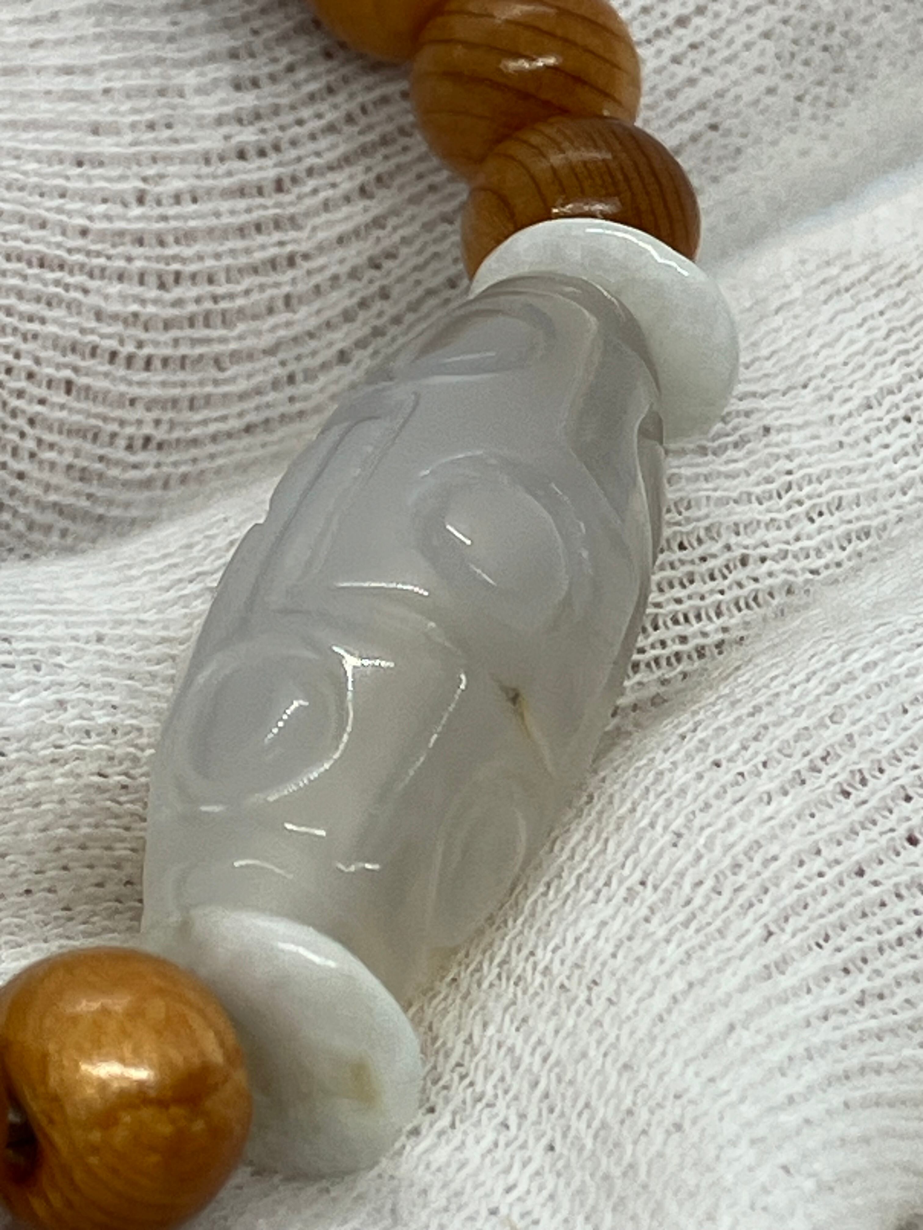 九眼天珠)佐渡市産瑪瑙カービング+国産ケヤキ+糸魚川翡翠 約16.5㌢ 28×111㍉