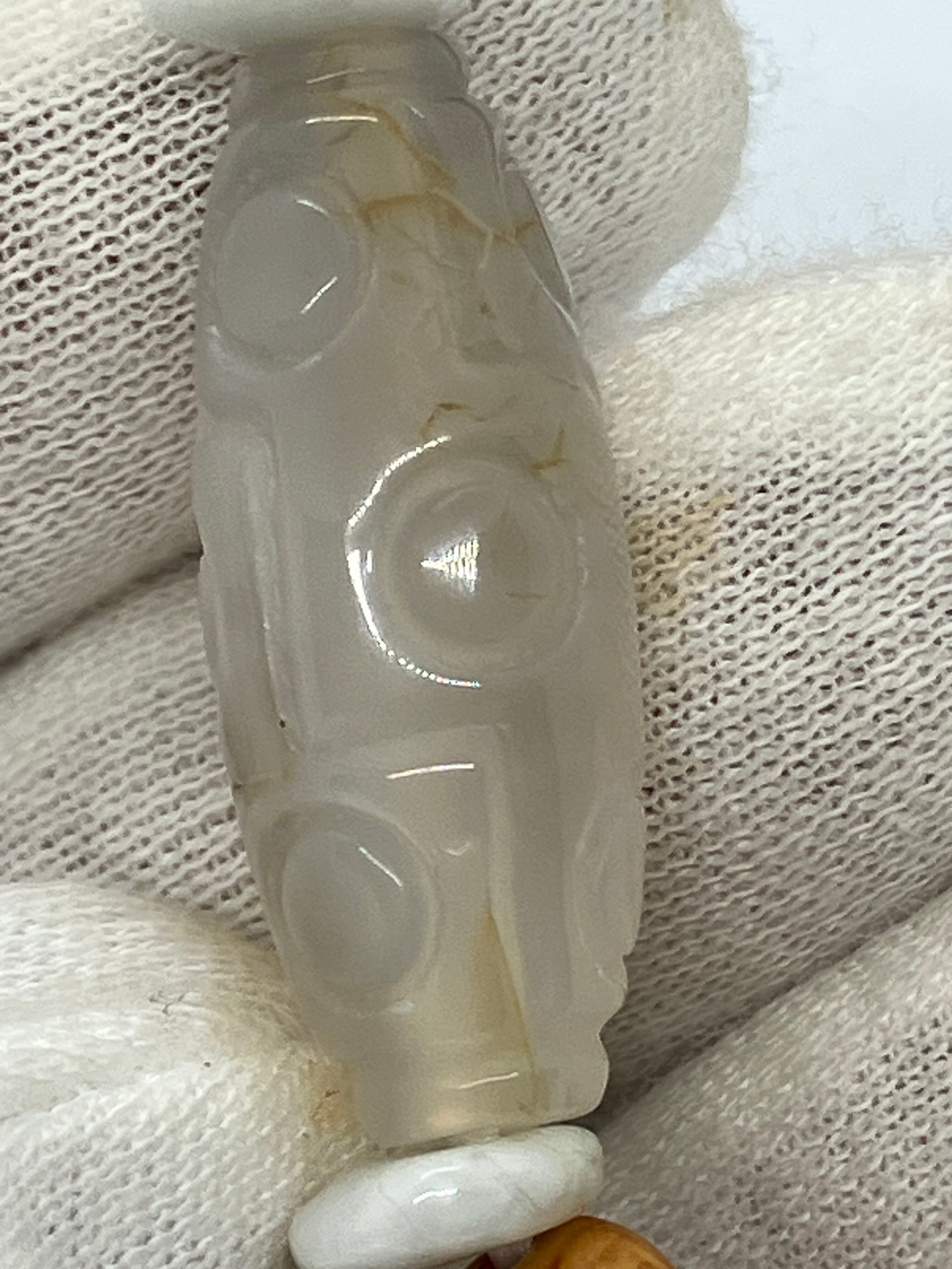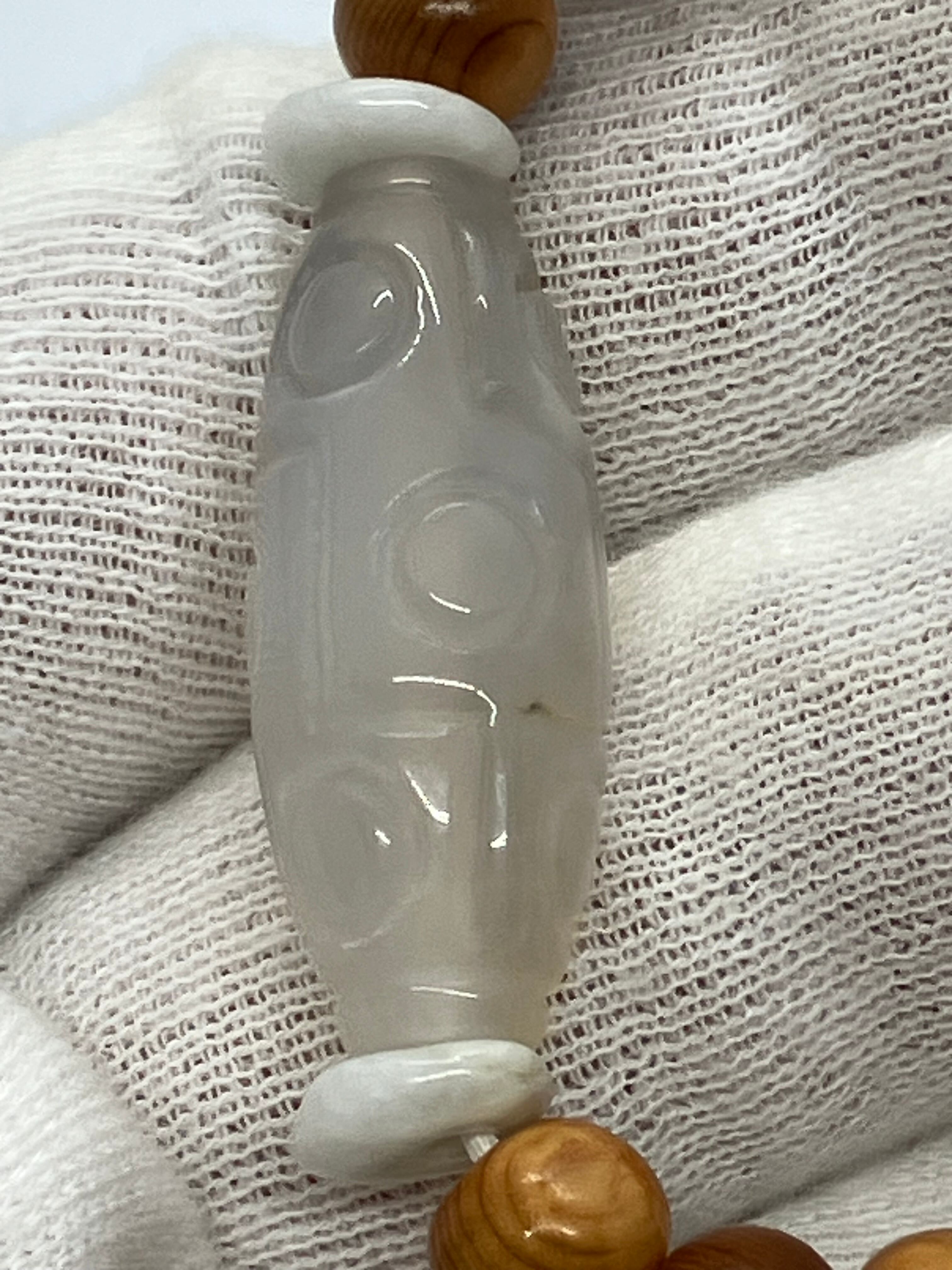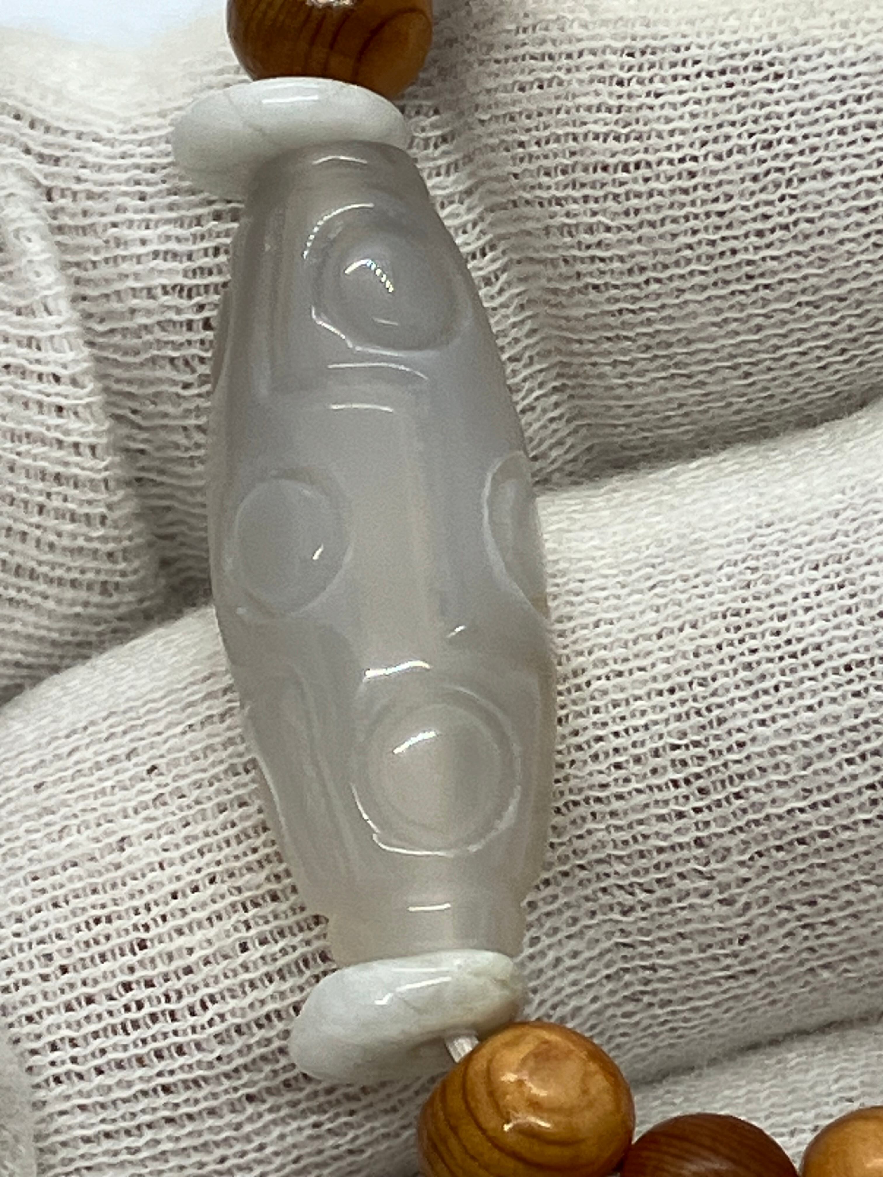 九眼天珠)佐渡市産瑪瑙カービング+国産ケヤキ+糸魚川翡翠 約16.5㌢ 28×111㍉