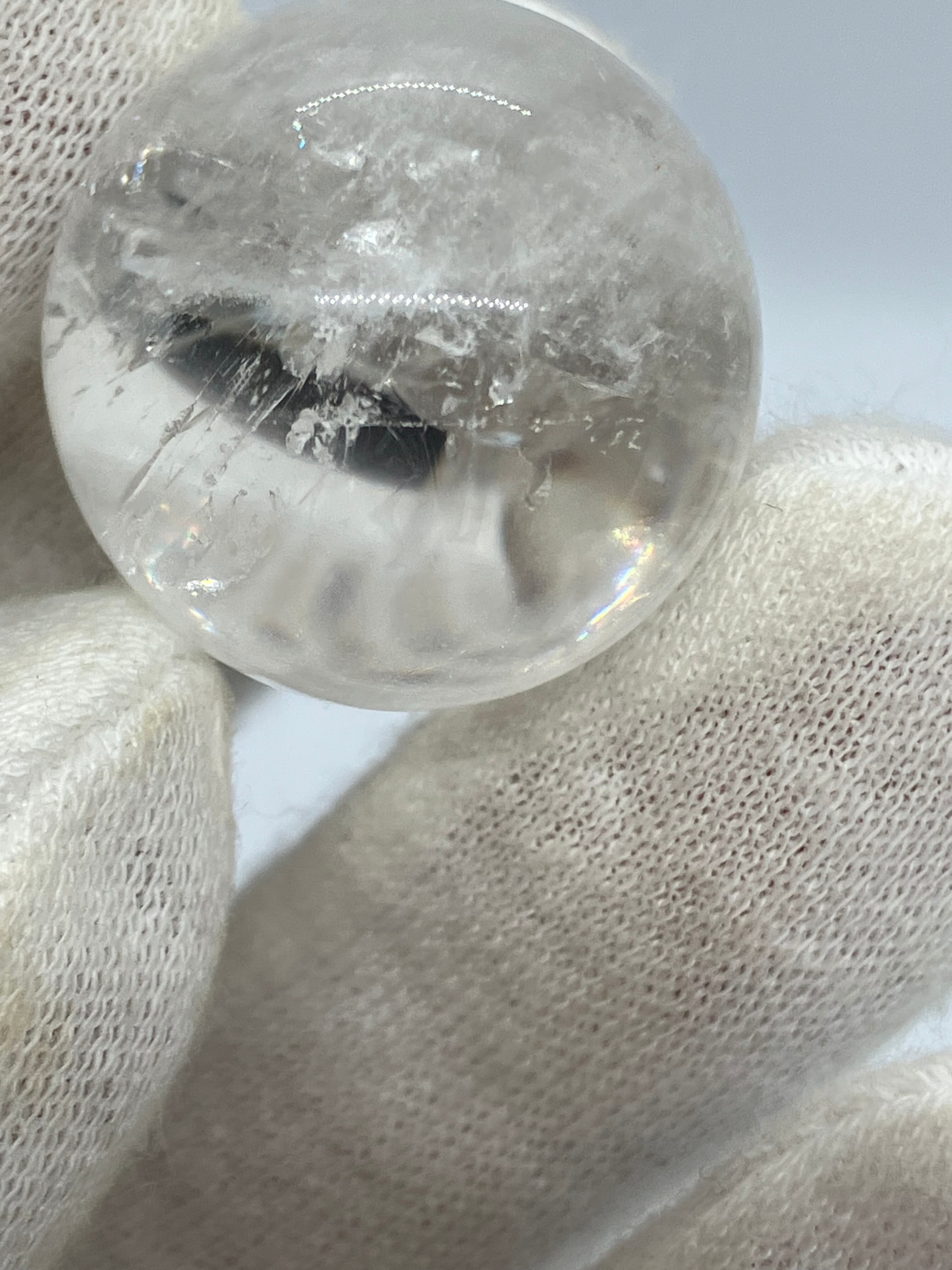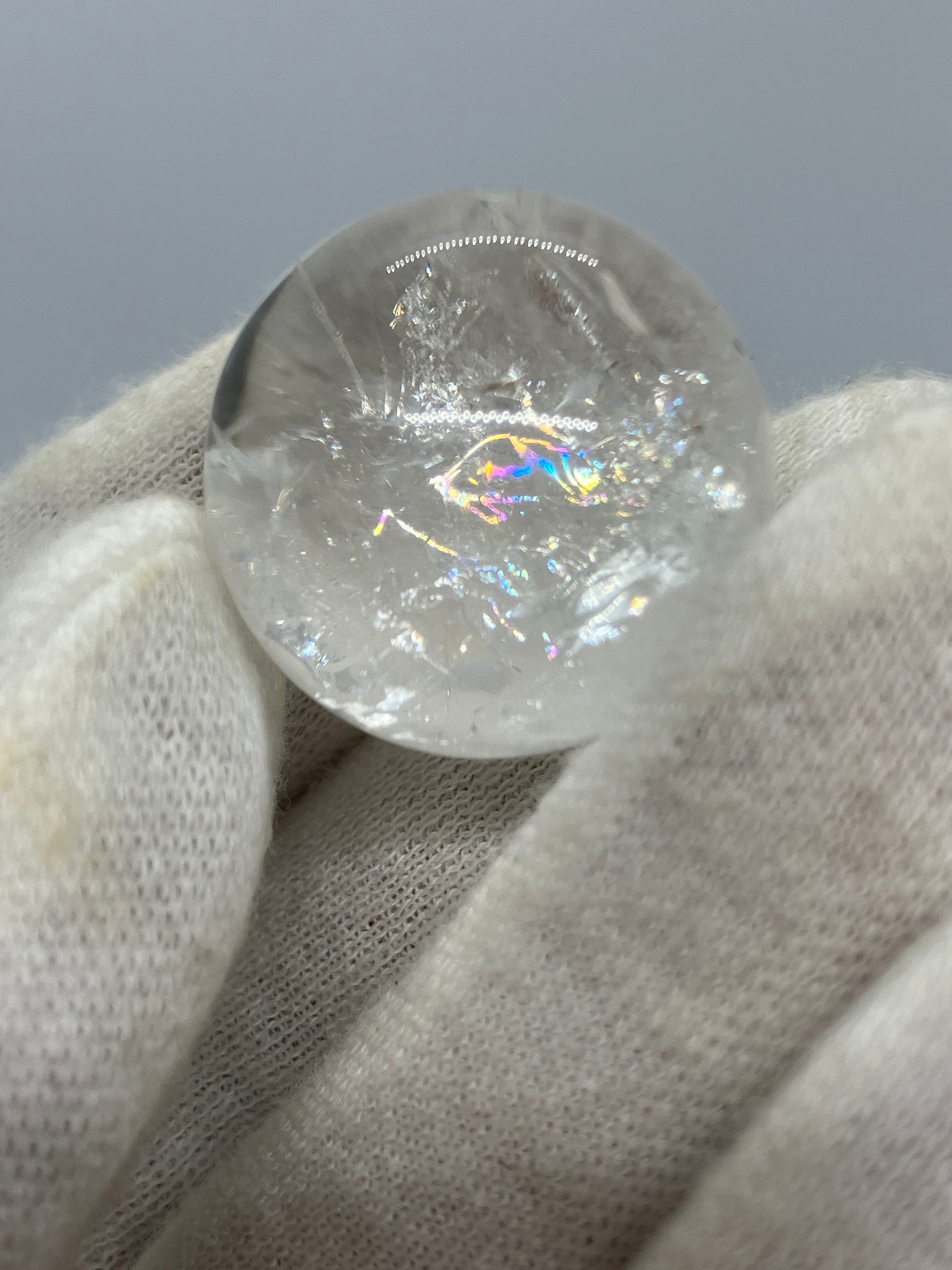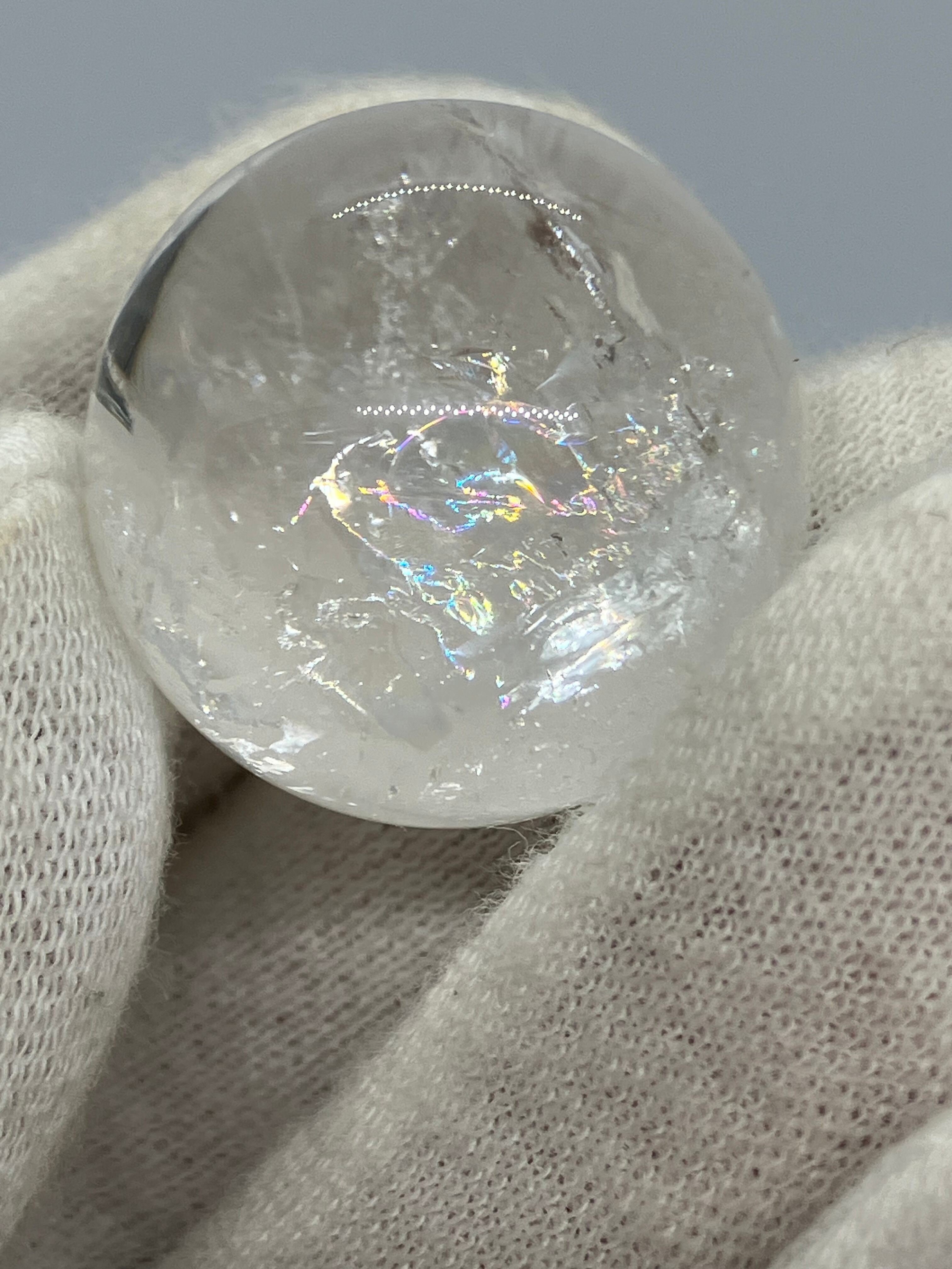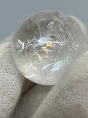 山梨県乙女鉱山産の希少な乙女水晶を使って丸玉を、作成しました。この水晶の中心には美しい虹が見られます。