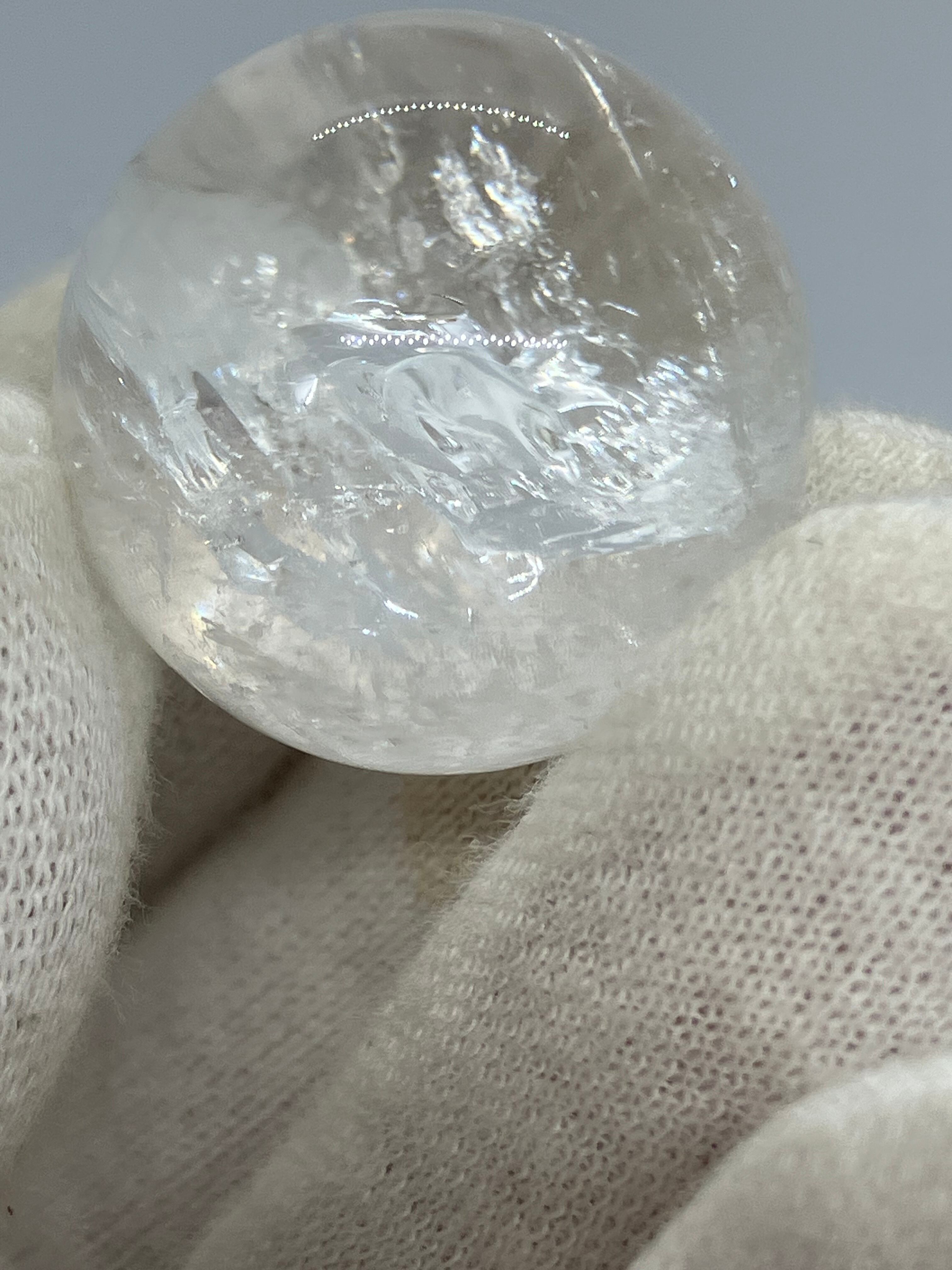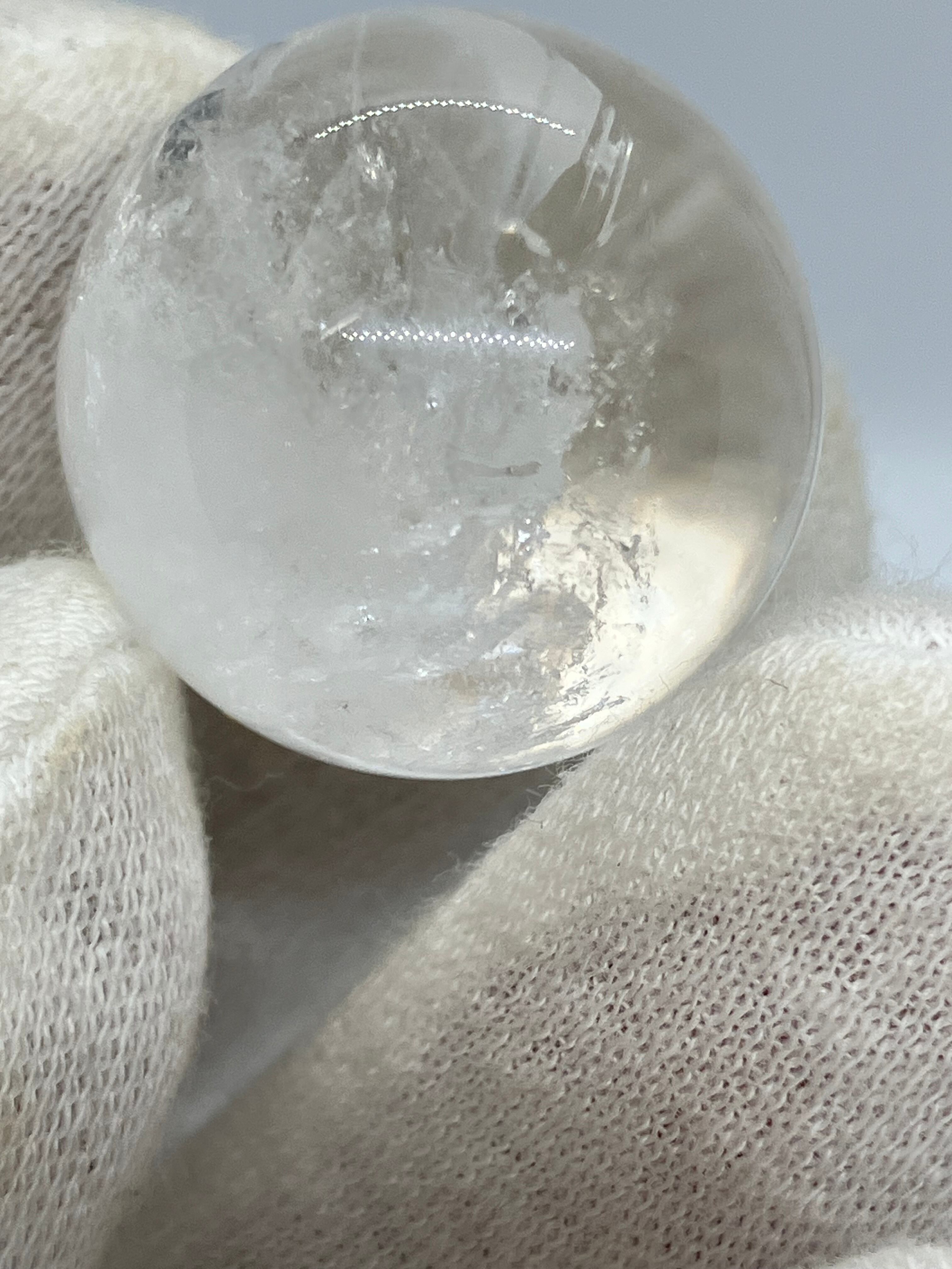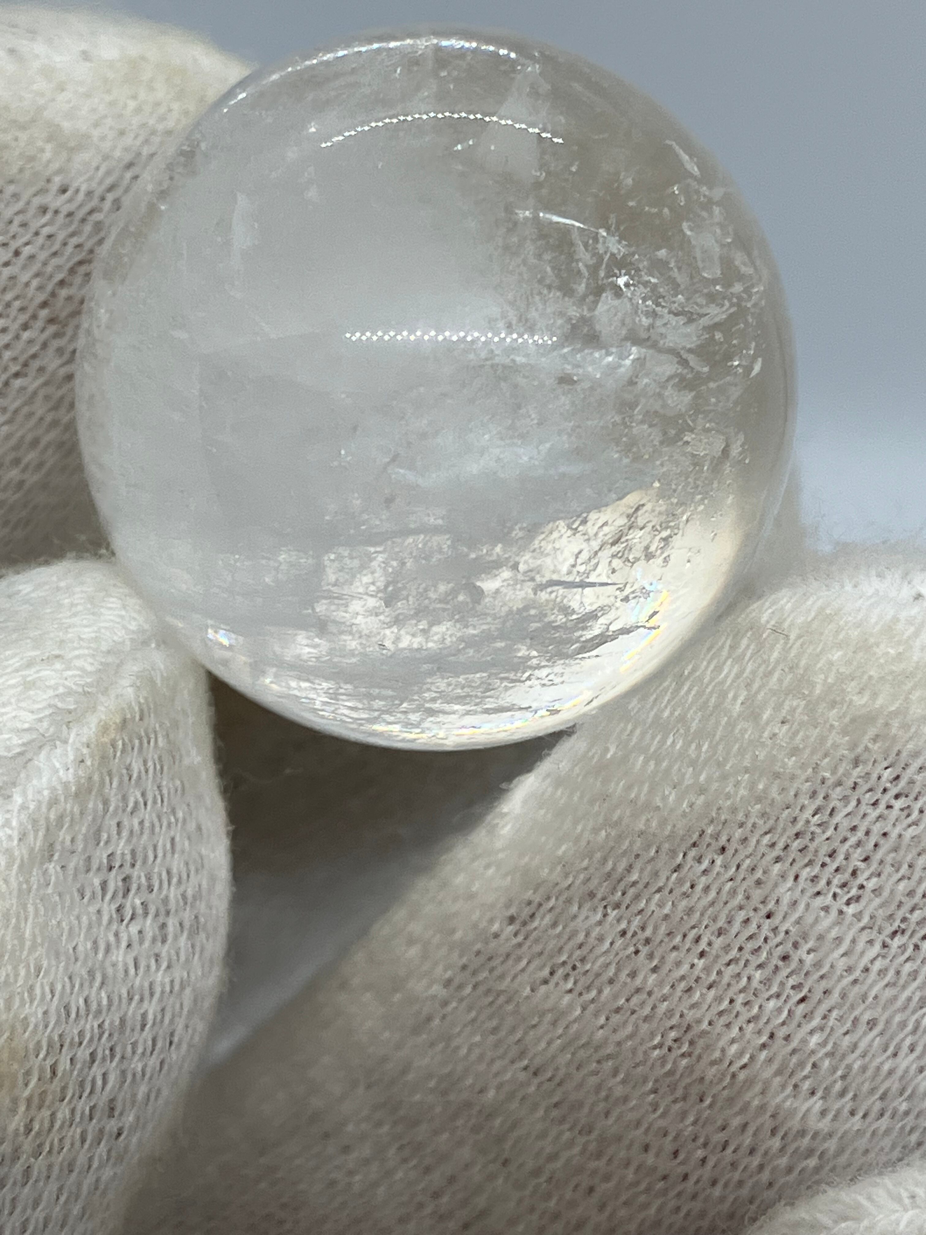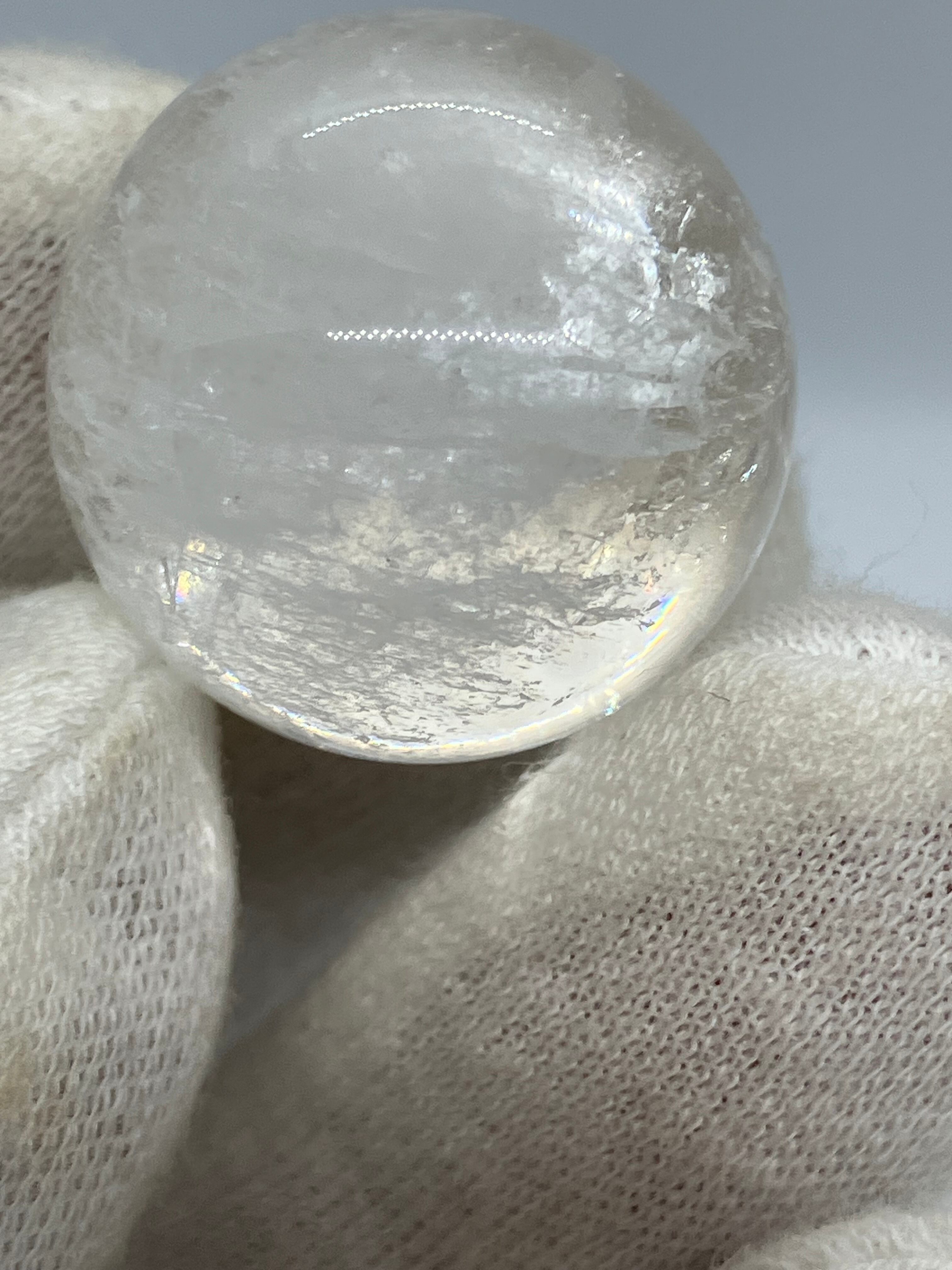 山梨県乙女鉱山産の希少な乙女水晶を使って丸玉を、作成しました。この水晶の中心には美しい虹が見られます。