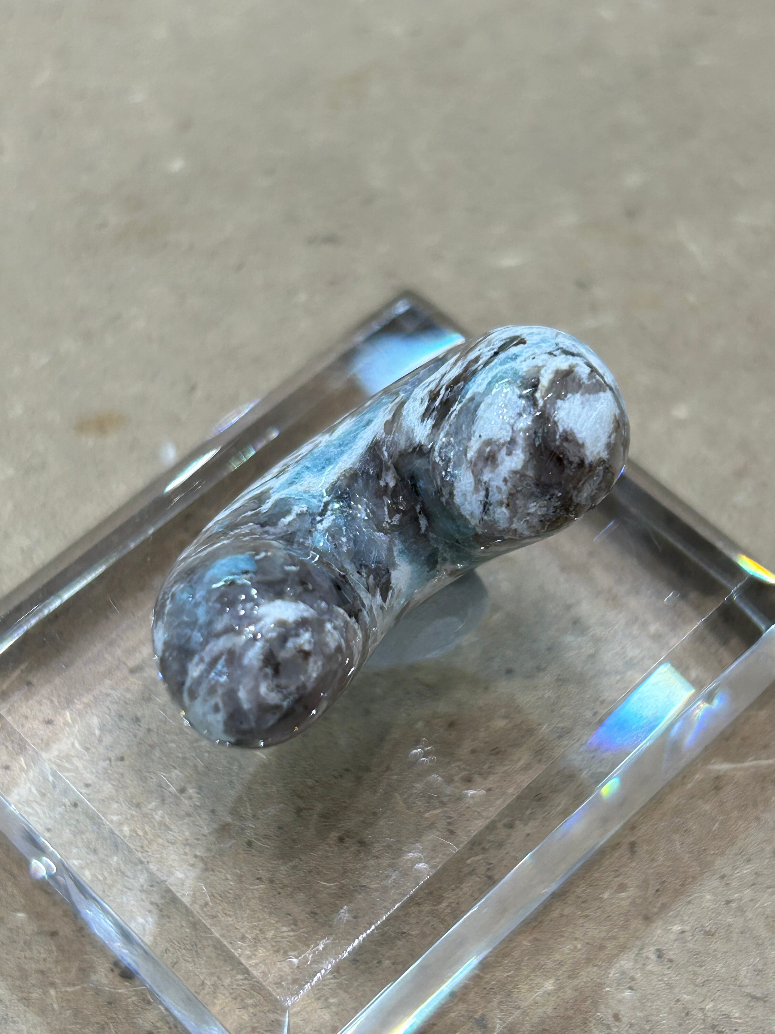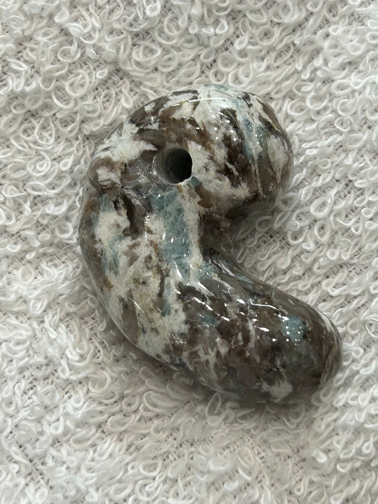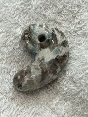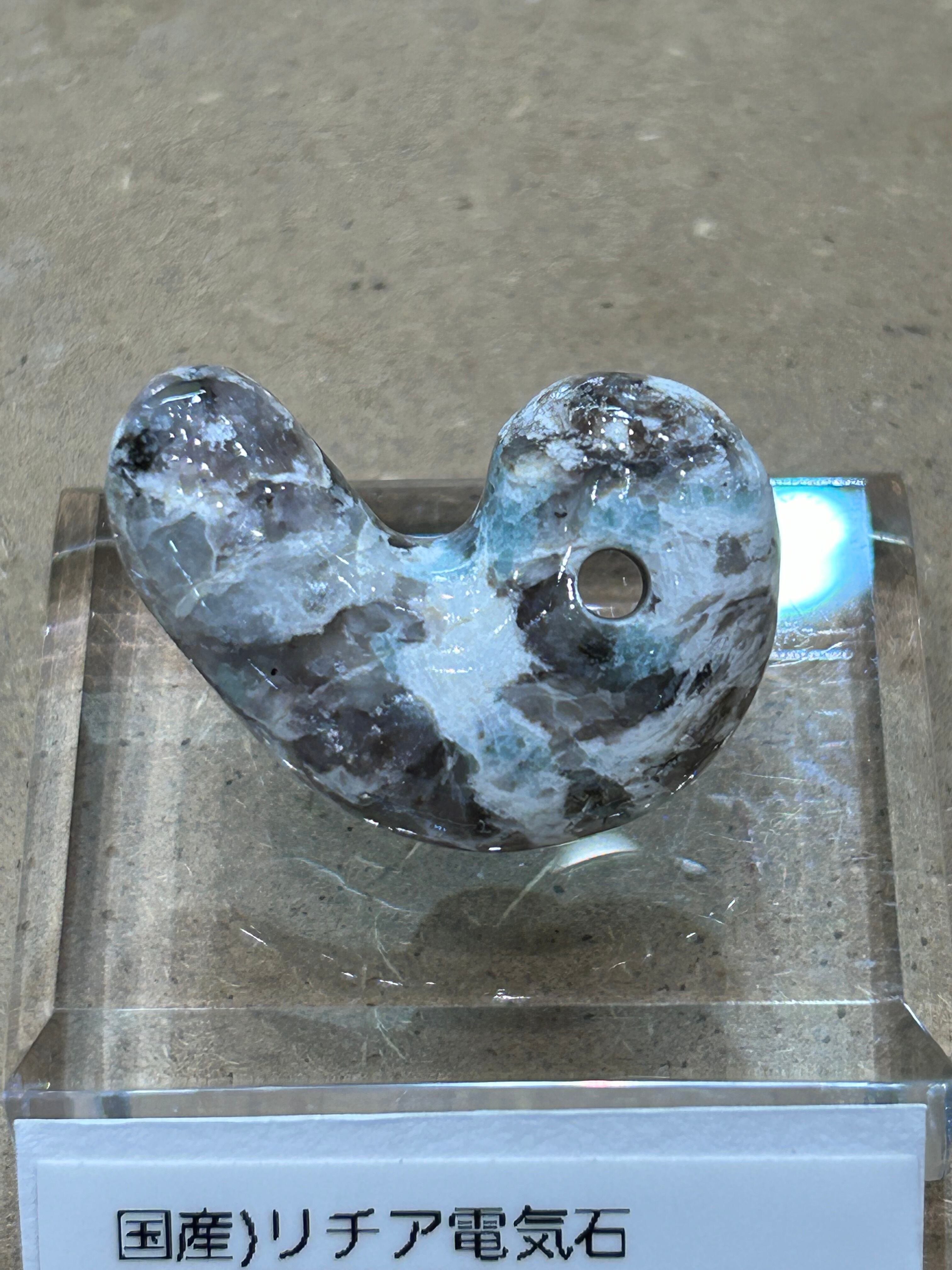茨城県里美村 妙見山で30年以上前に採集されたリチア電気石(長石、石英、雲母等を含む)から勾玉を作成しました。