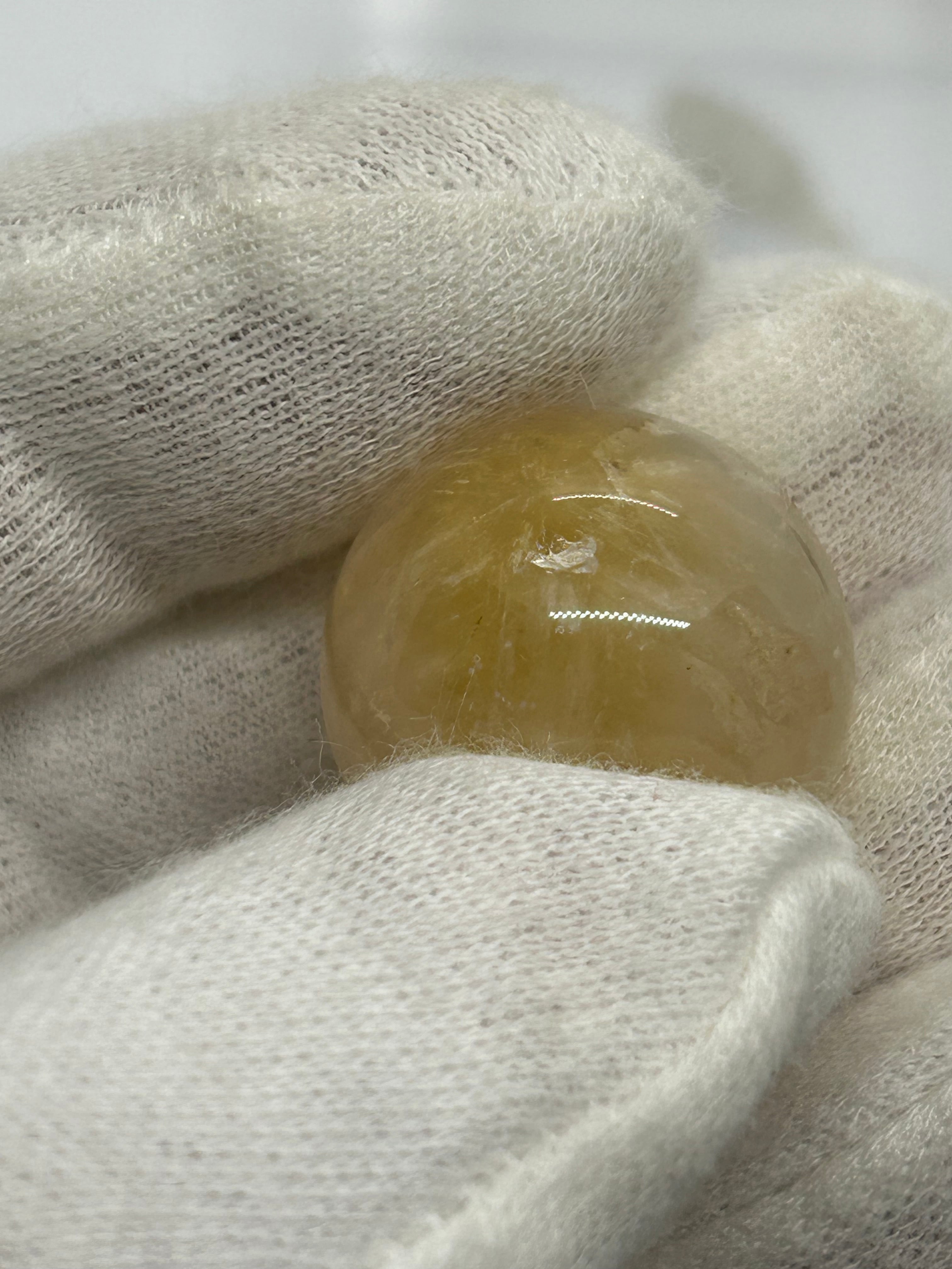 丸玉の幅は21㍉ありますが、この水晶玉は沢山の凹みやクラックがあります。本来はこの水晶の凹みやクラックはきっちり削って18㍉ぐらいの丸玉にするべきですが、トラピッチェ模様が、これ以上削ると見えにくくなってしまうと考えてあえて、この状態にしています。もし、凹みや傷が無い状態で綺麗なトラピッチェ模様が出ていれば、値段をもっと高くしていると思います。(今回はお値段を抑えました)