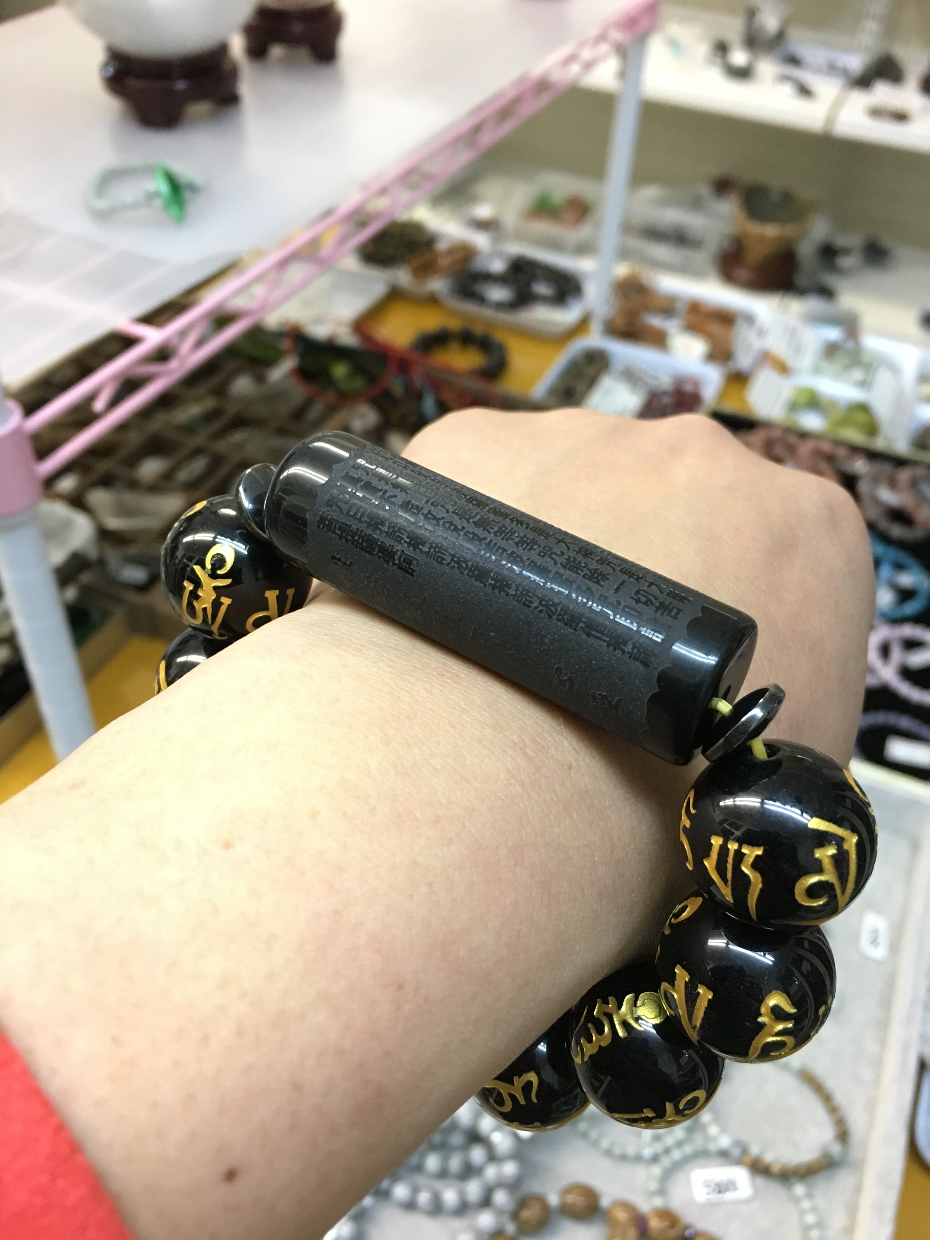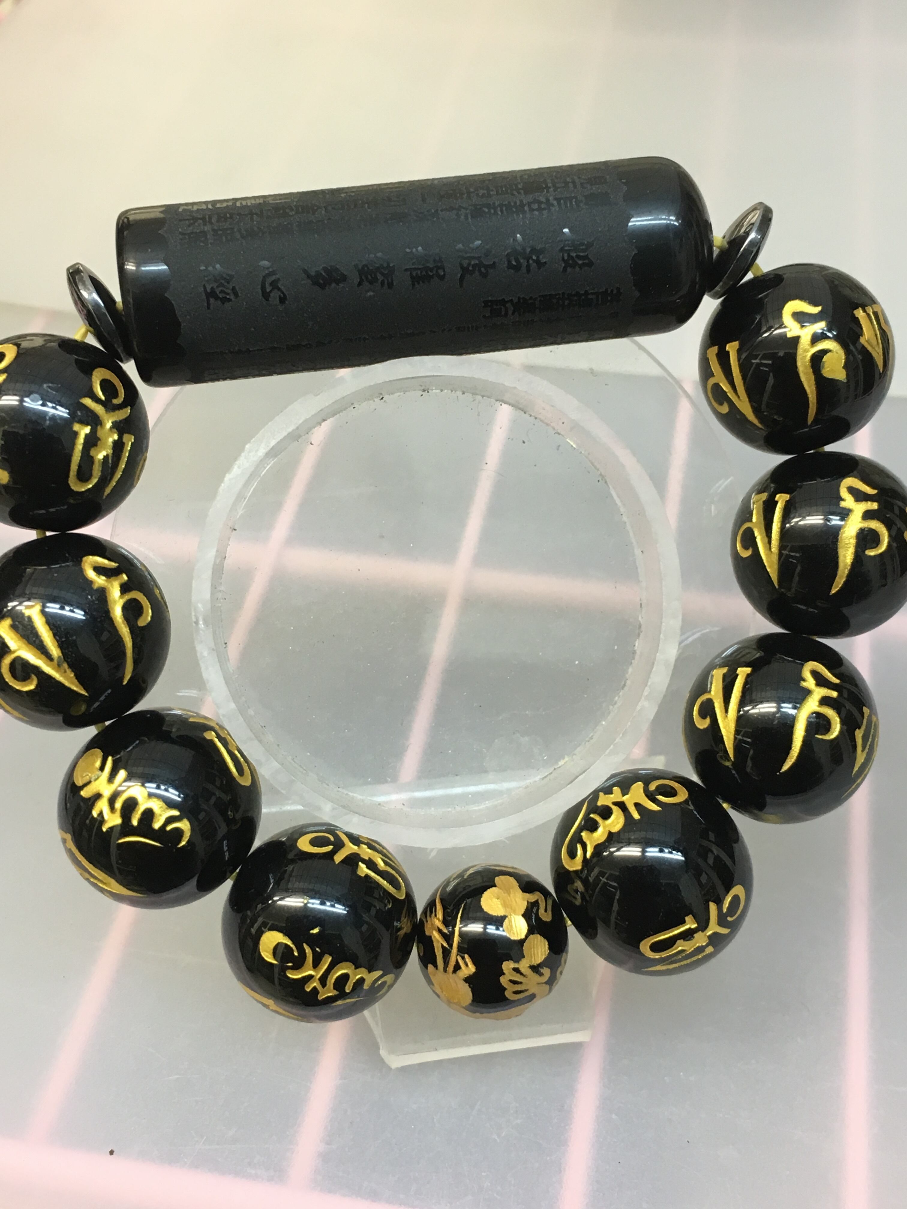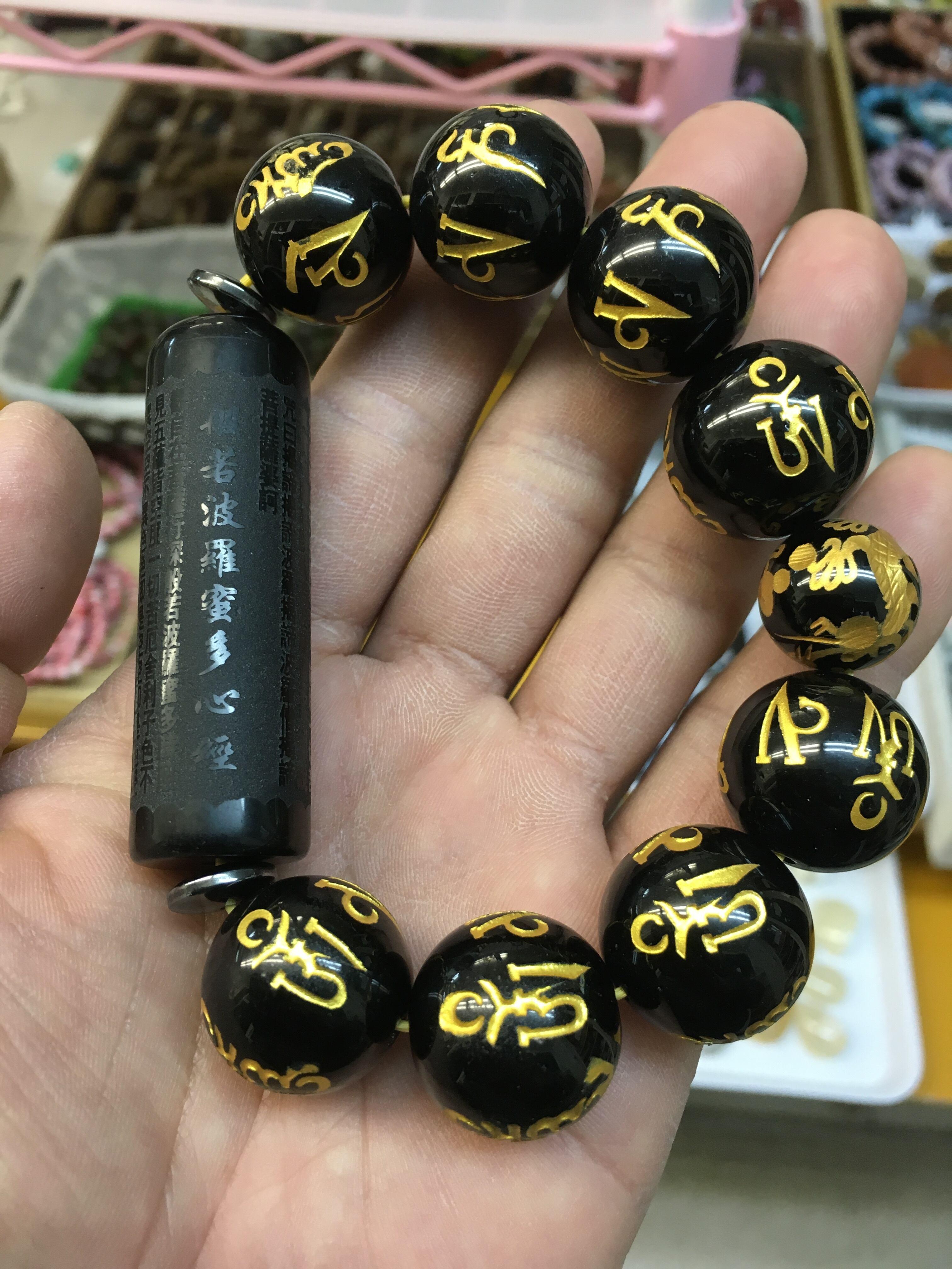 般若心経 天珠型 ブレスレット(オブシディアン)