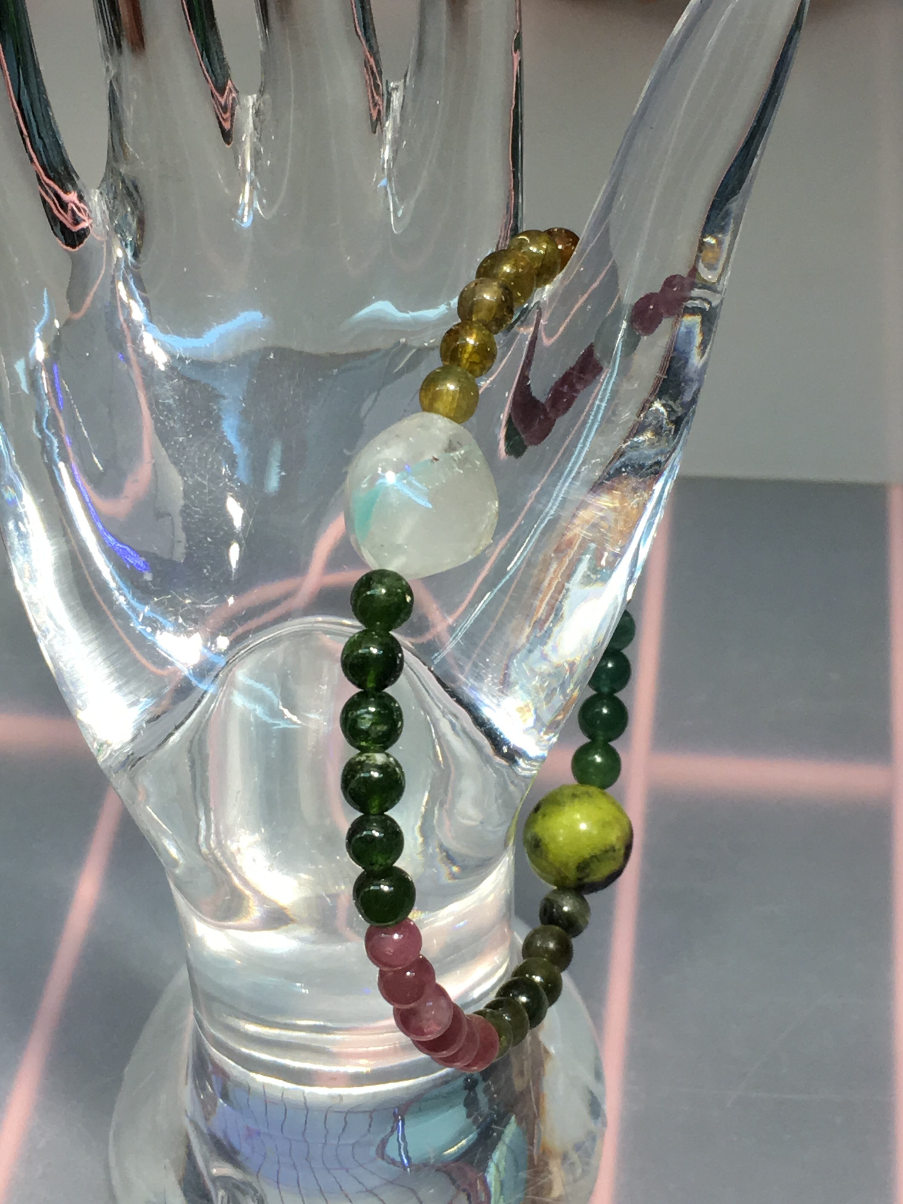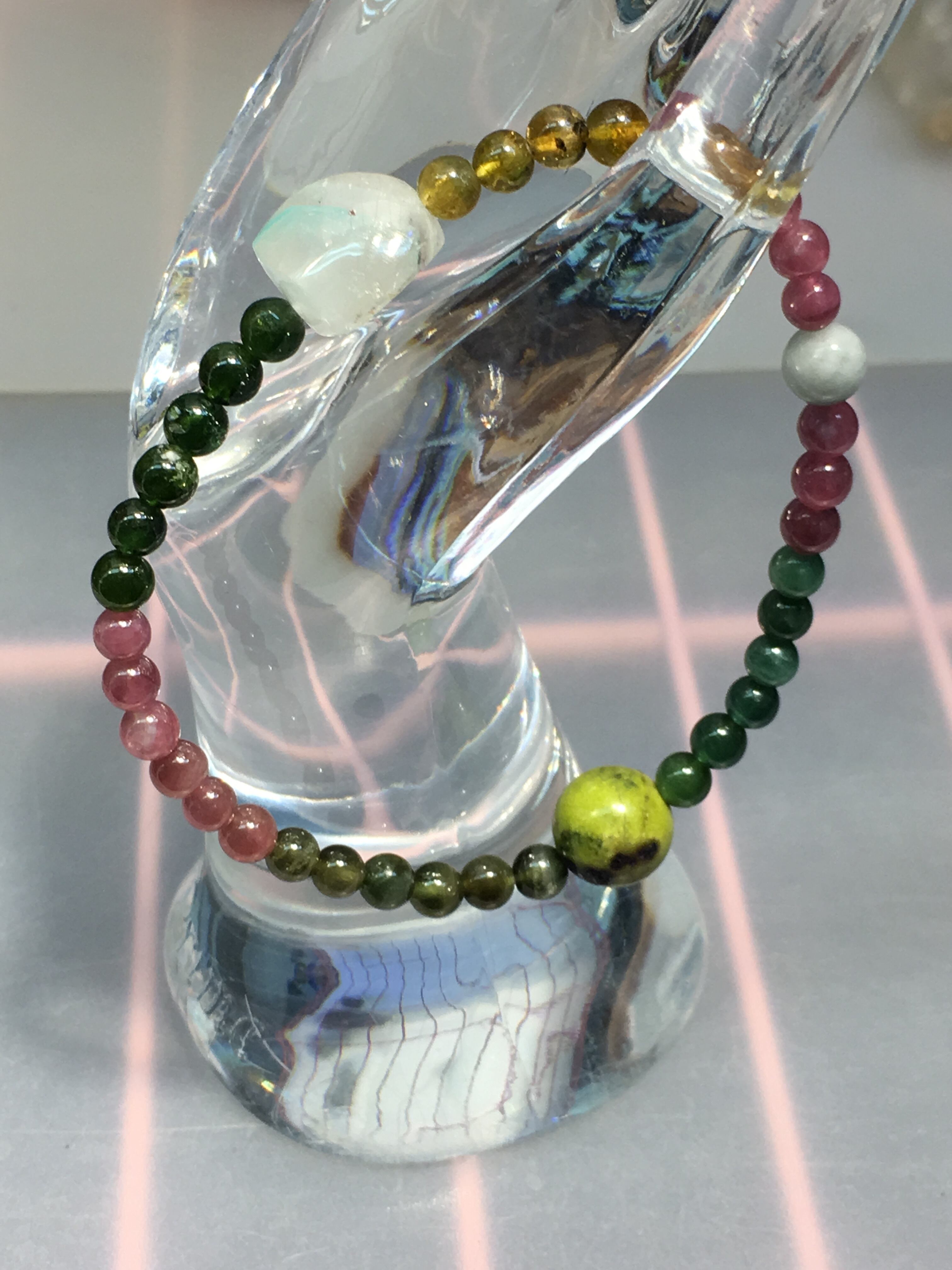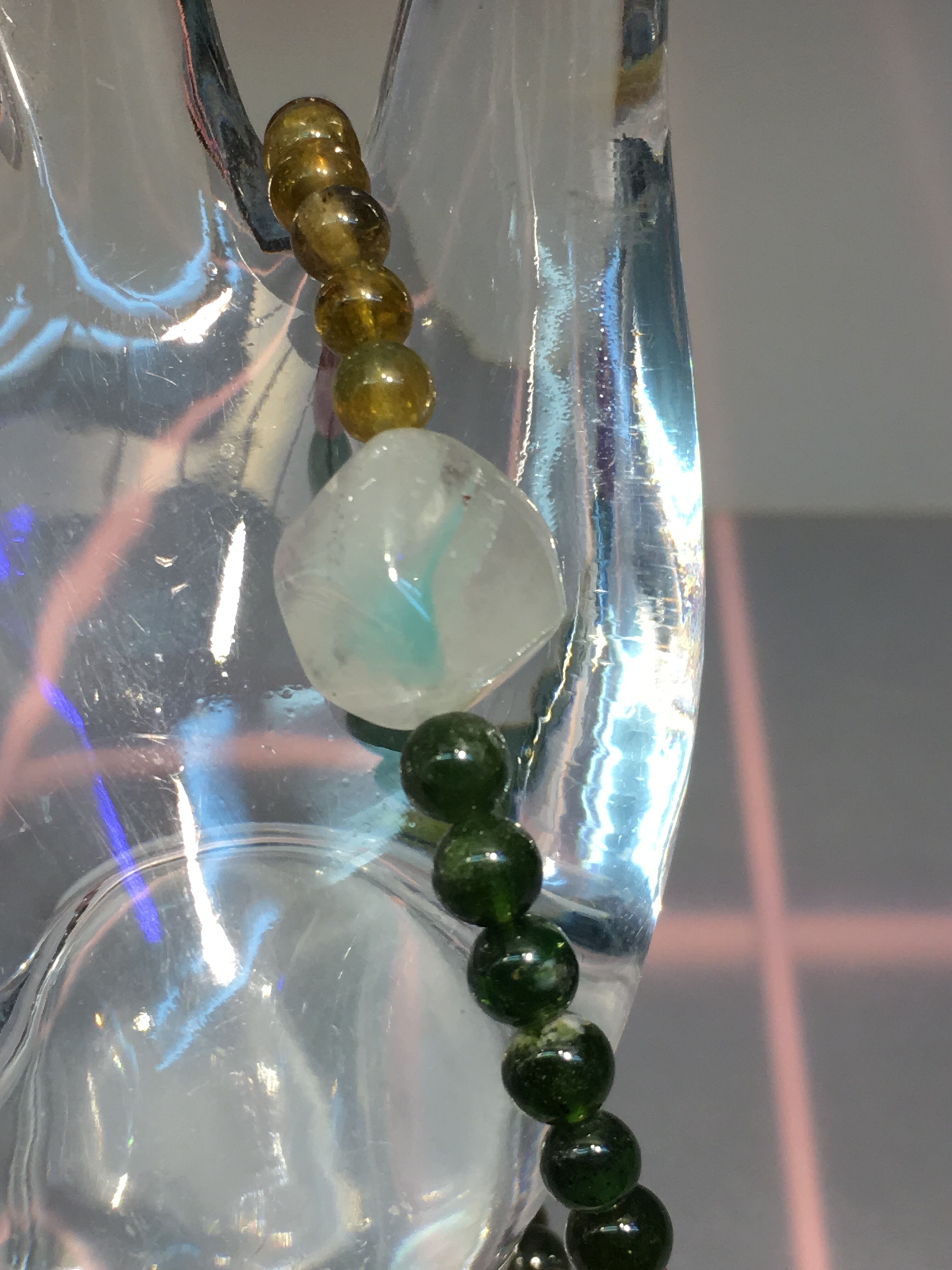 このブレスレットをしてみると、胸のチャクラにどんどんエネルギーが入ってくる感じがあります。とめどないエネルギーがハートを癒してくれる、そんな感じのブレスレットになります。
