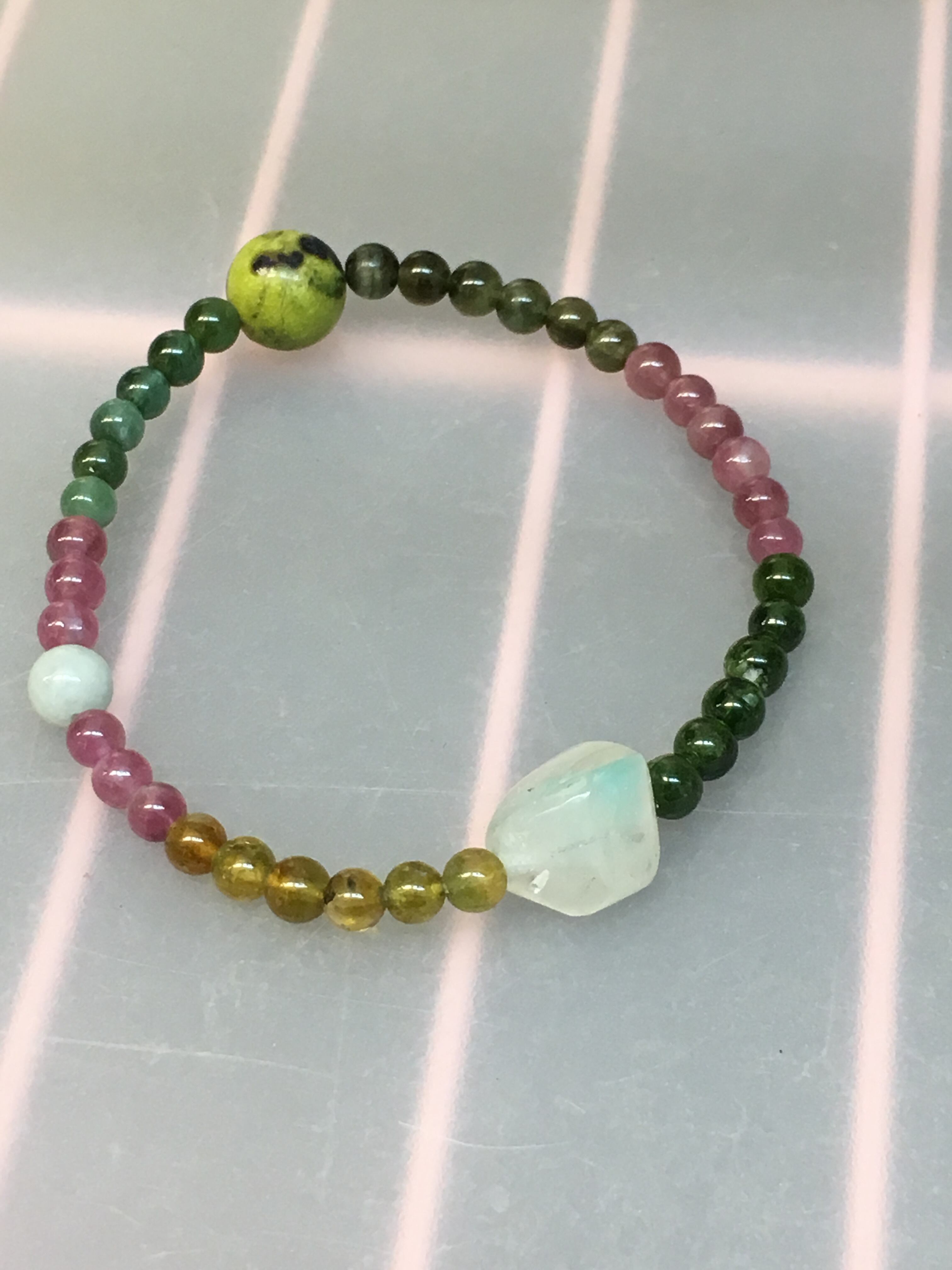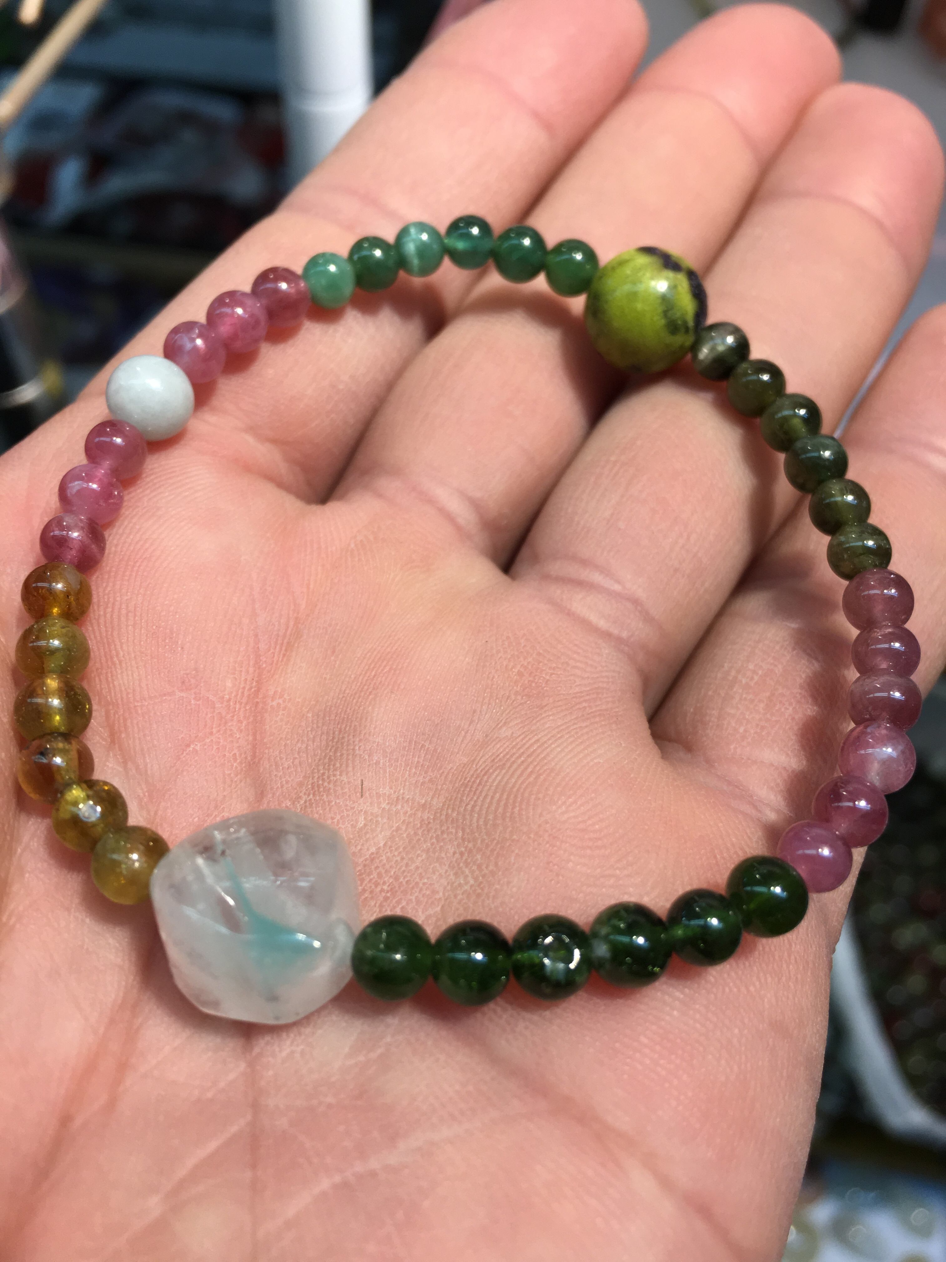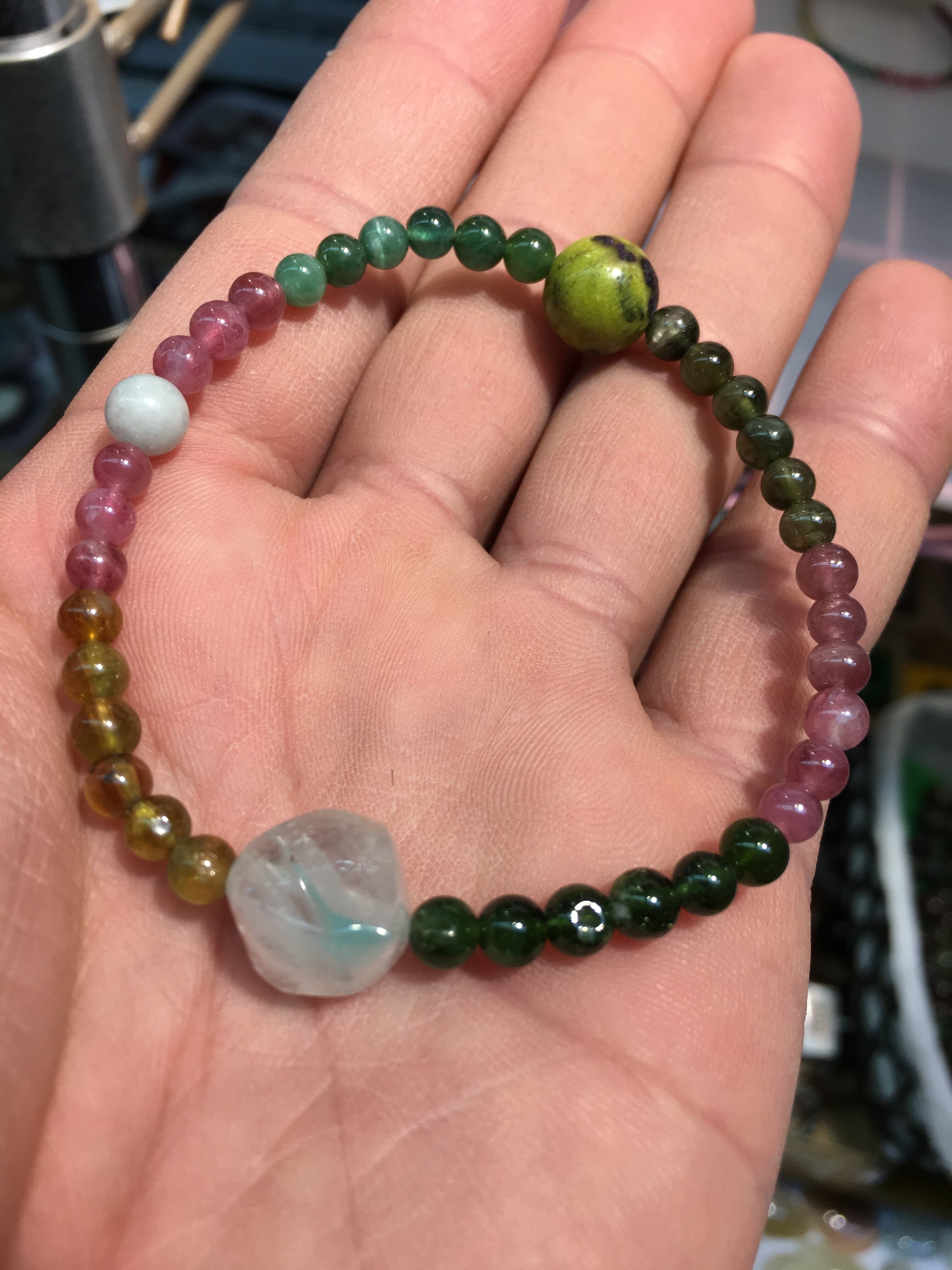 このブレスレットをしてみると、胸のチャクラにどんどんエネルギーが入ってくる感じがあります。とめどないエネルギーがハートを癒してくれる、そんな感じのブレスレットになります。