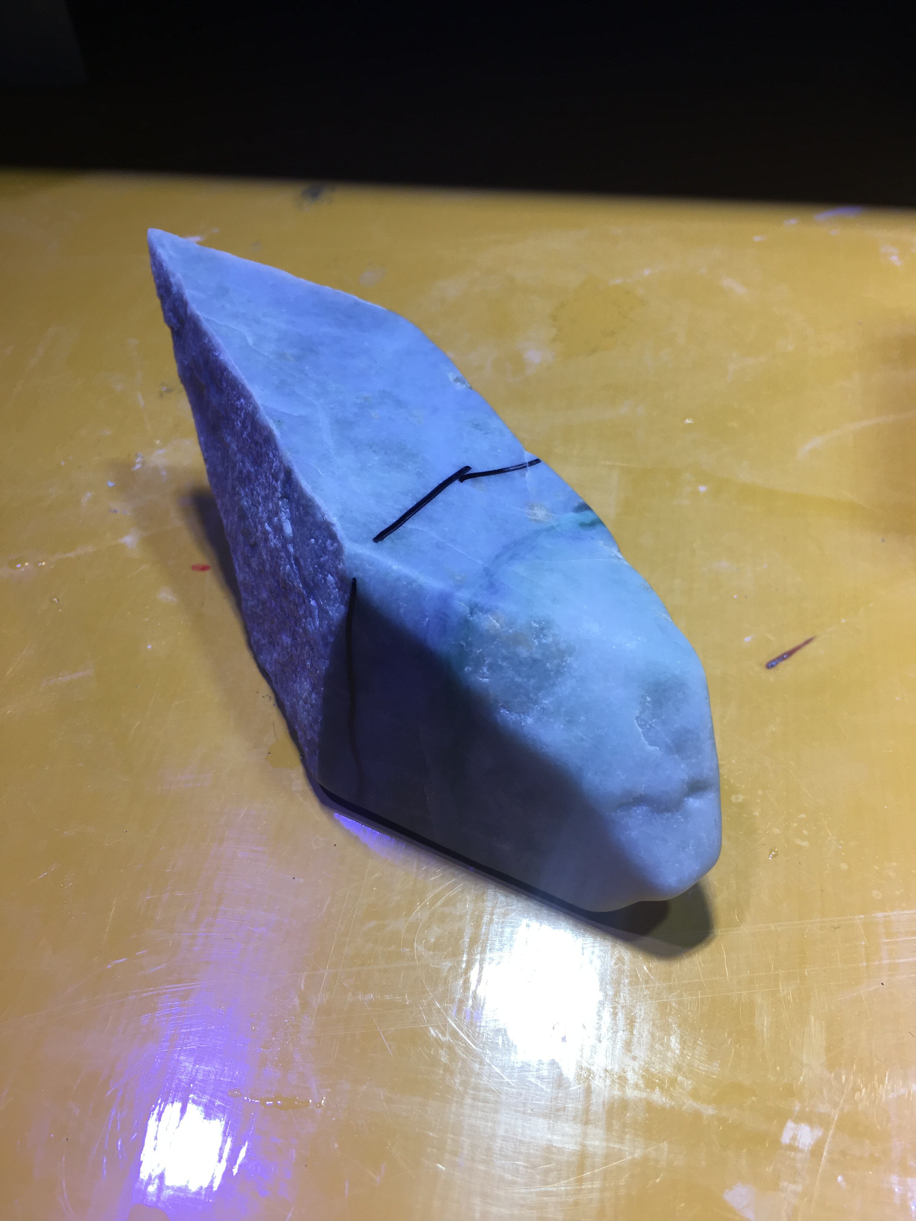 ブルーグリーンの上質の糸魚川翡翠の原石から