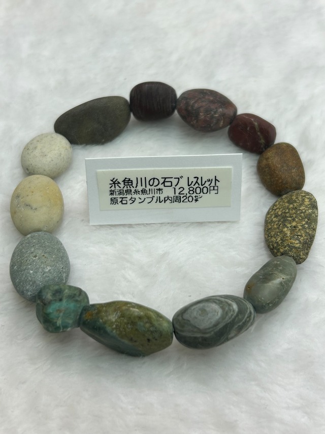 糸魚川の石)原石タンブルブレスレット 内周20㌢ 彩りブレスレット